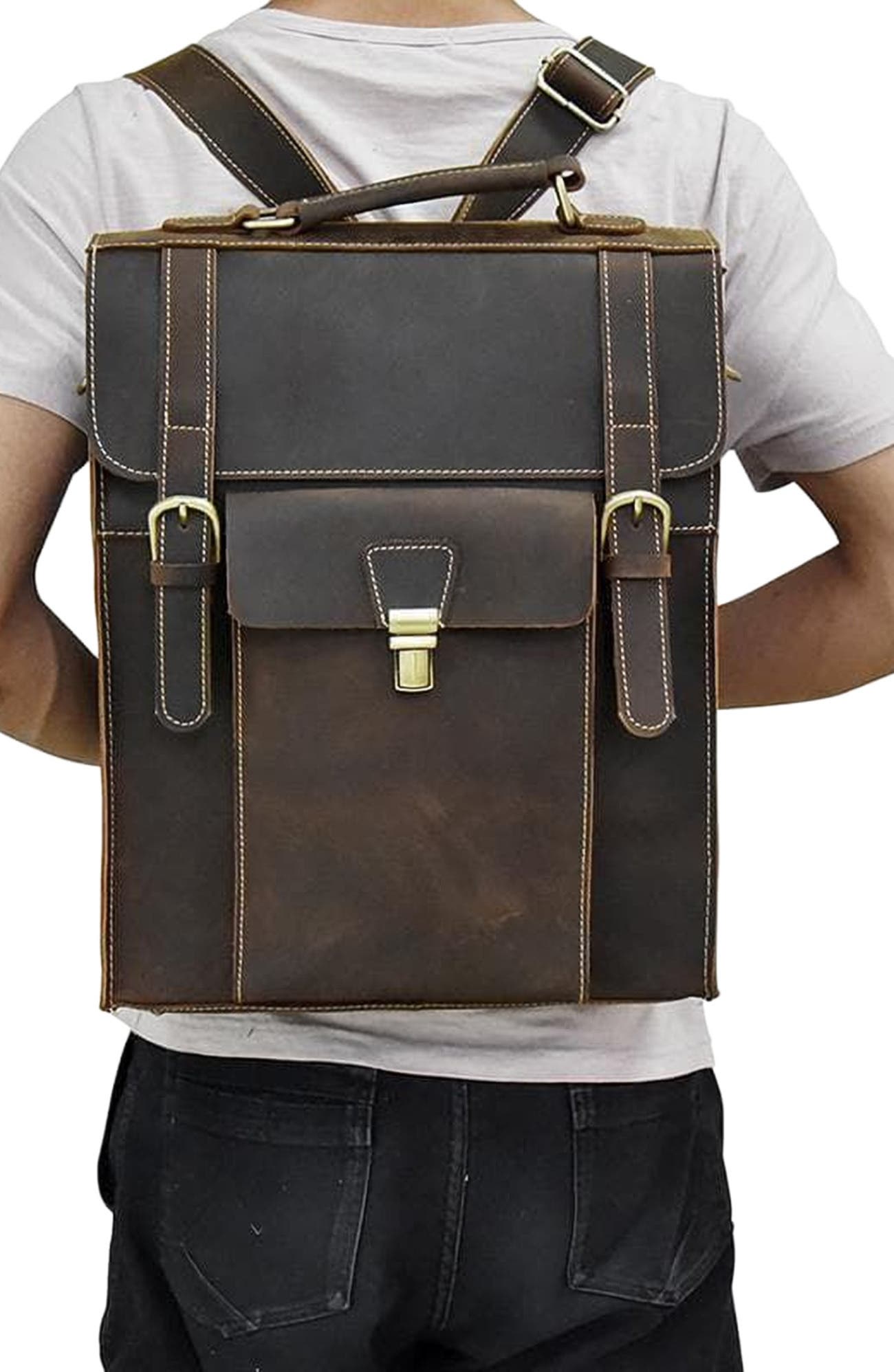 STEEL HORSE LEATHER The Vali Backpack Handmade Vintage Leather_Brown