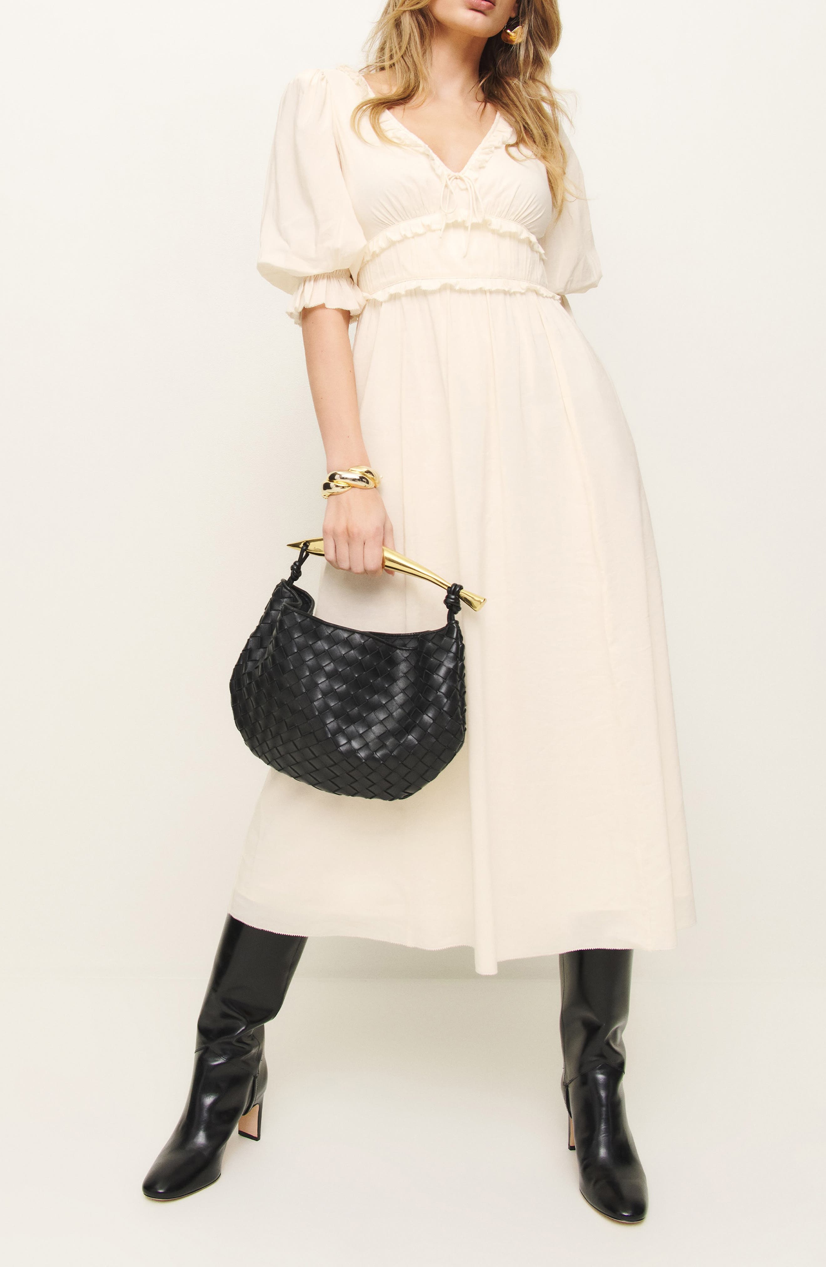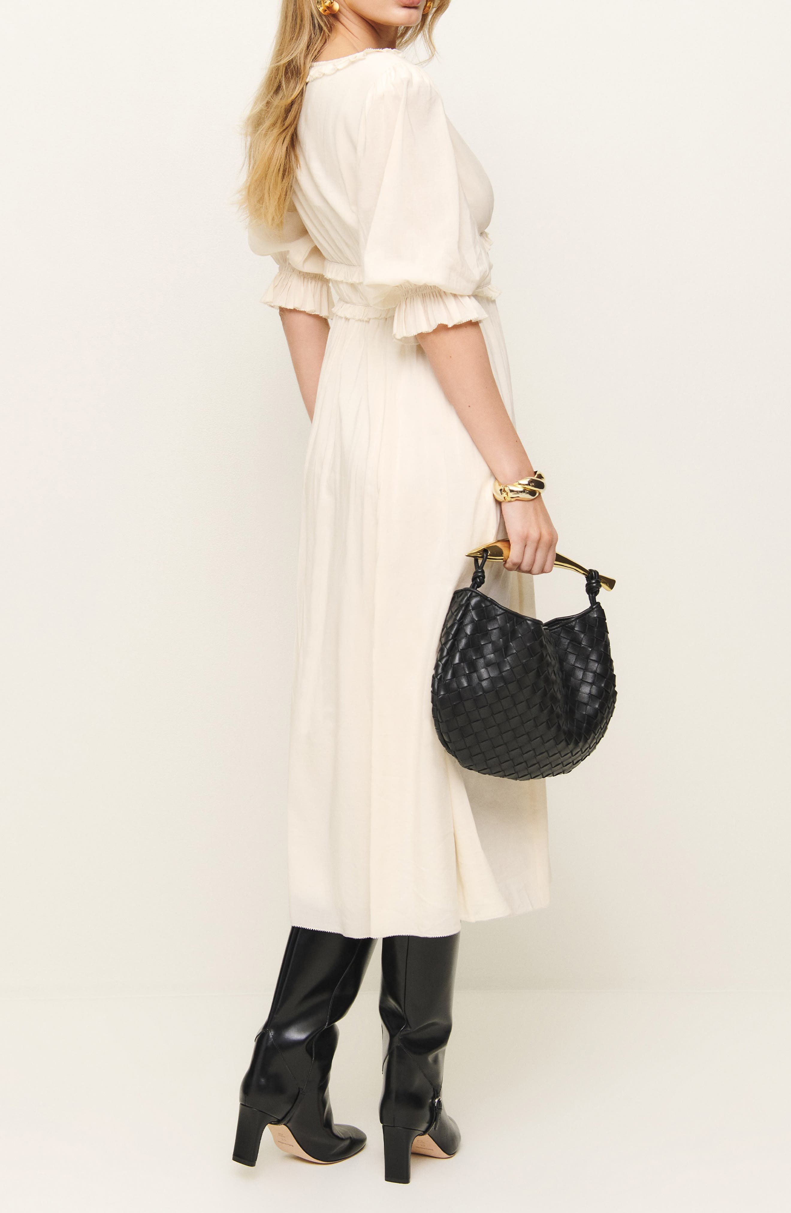 Reformation Mirielle Ruffle Puff Sleeve Organic Cotton Blend Dress_Cream