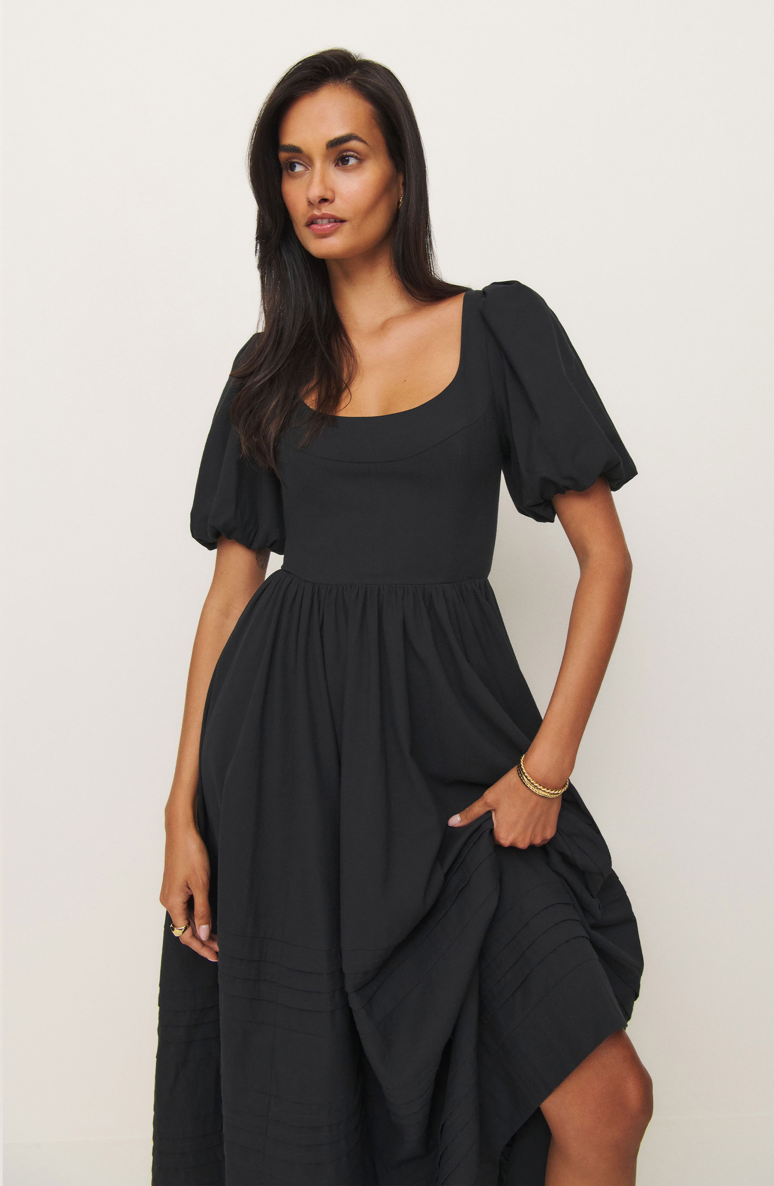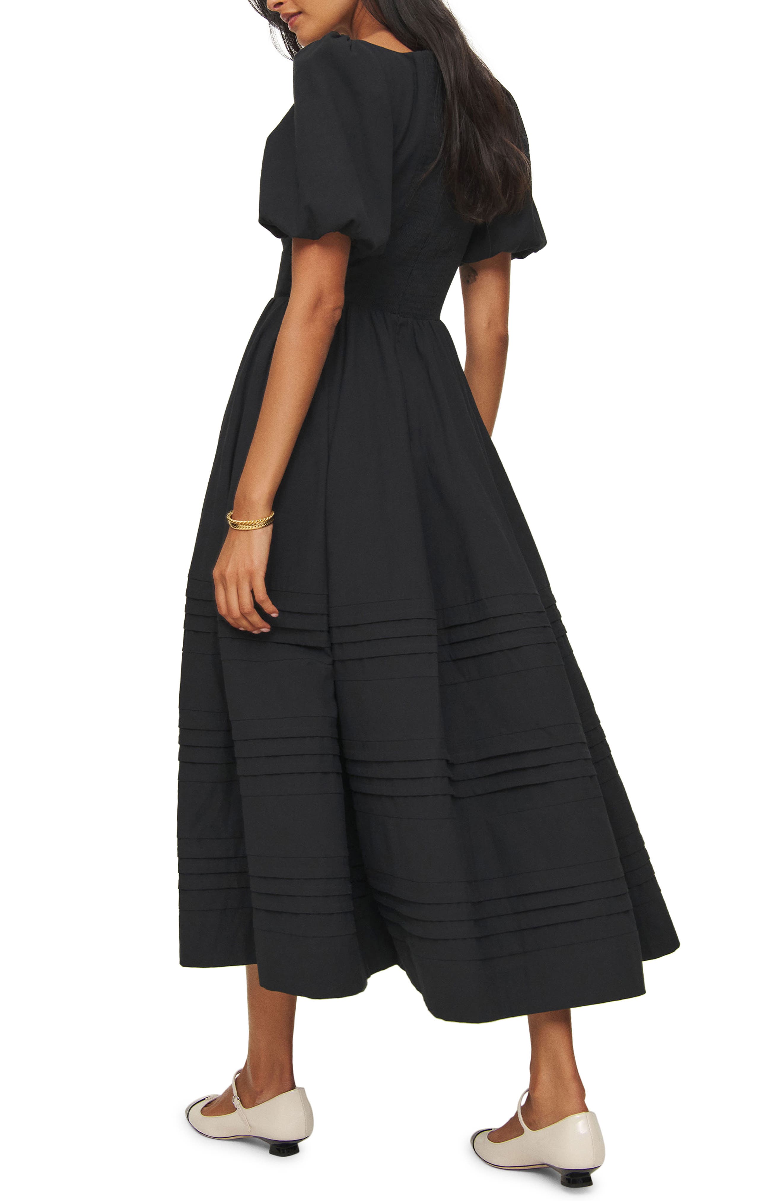 Reformation Everlyn Puff Sleeve Stretch Organic Cotton Maxi Dress_Black