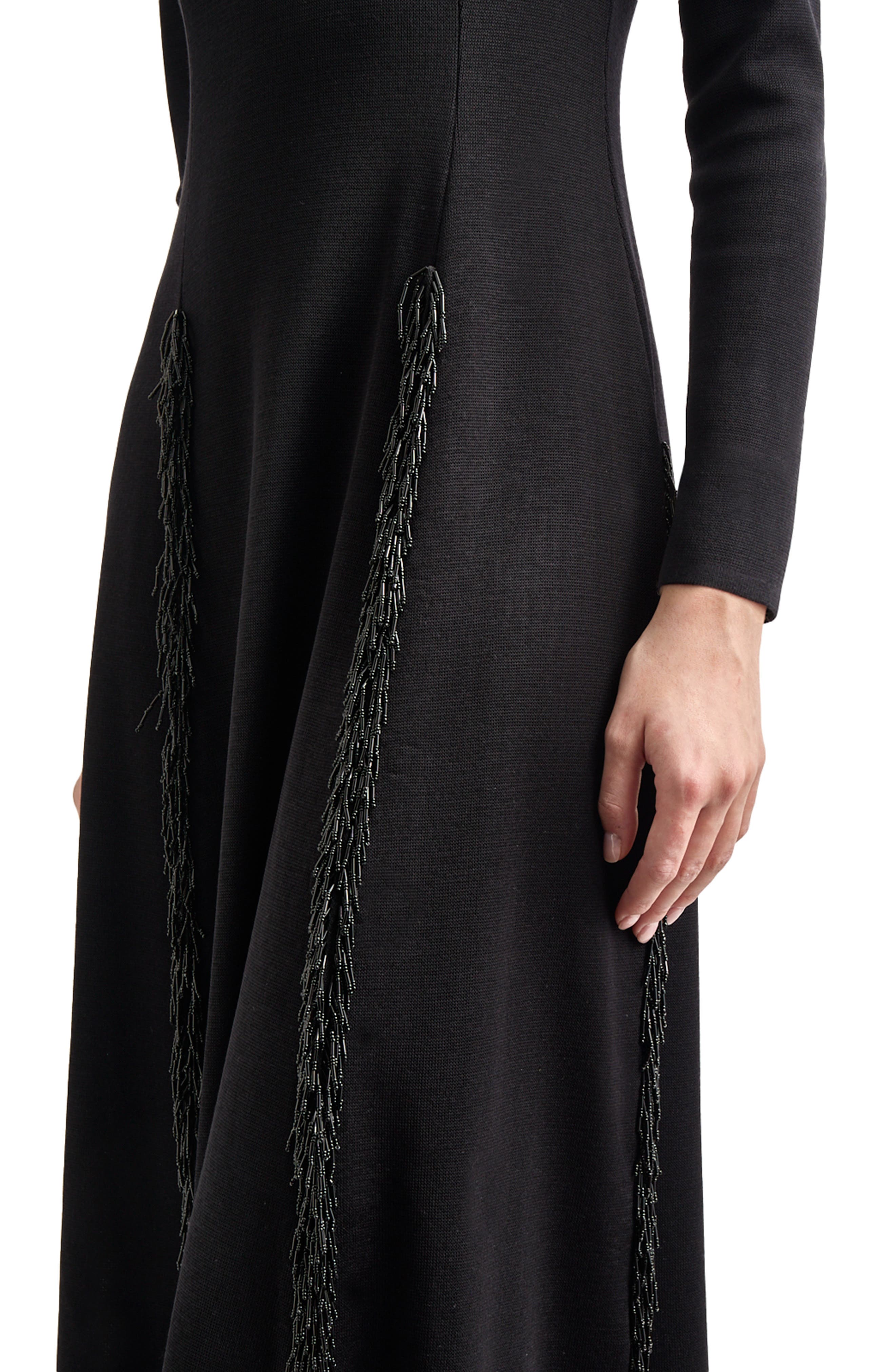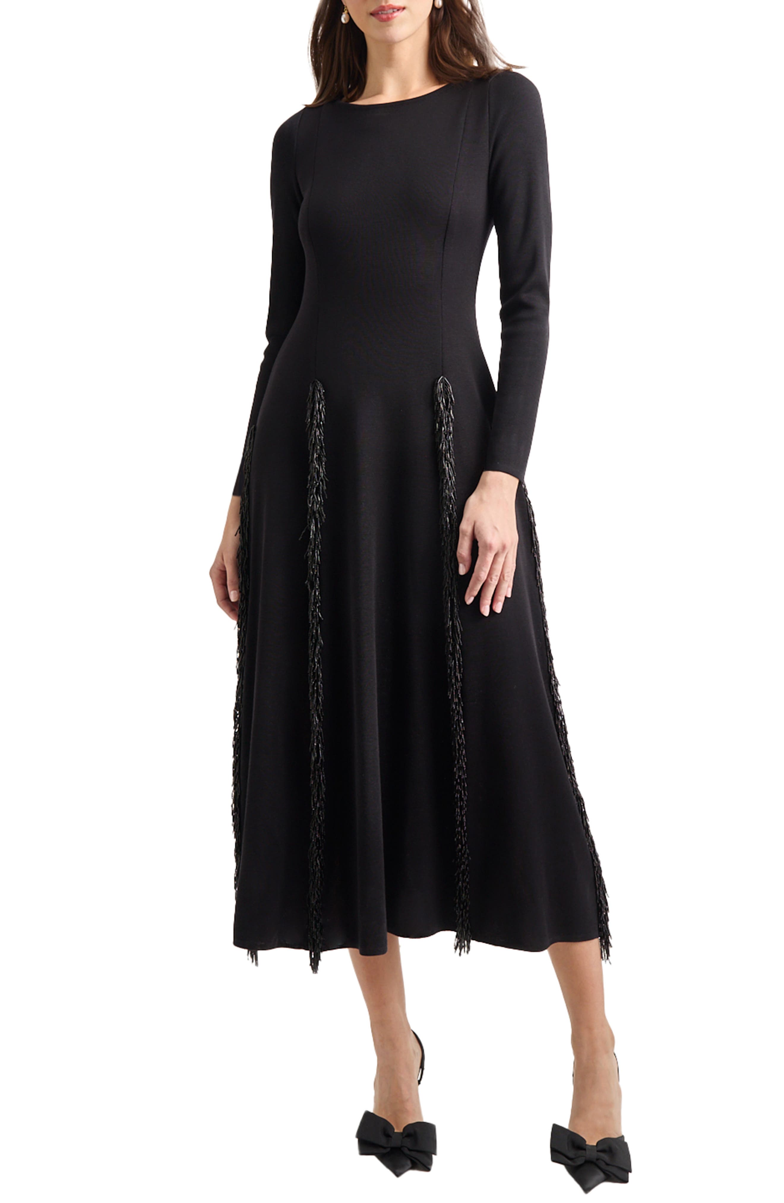 Misook Sequin Fringe Long Sleeve Fit & Flare Dress_Black