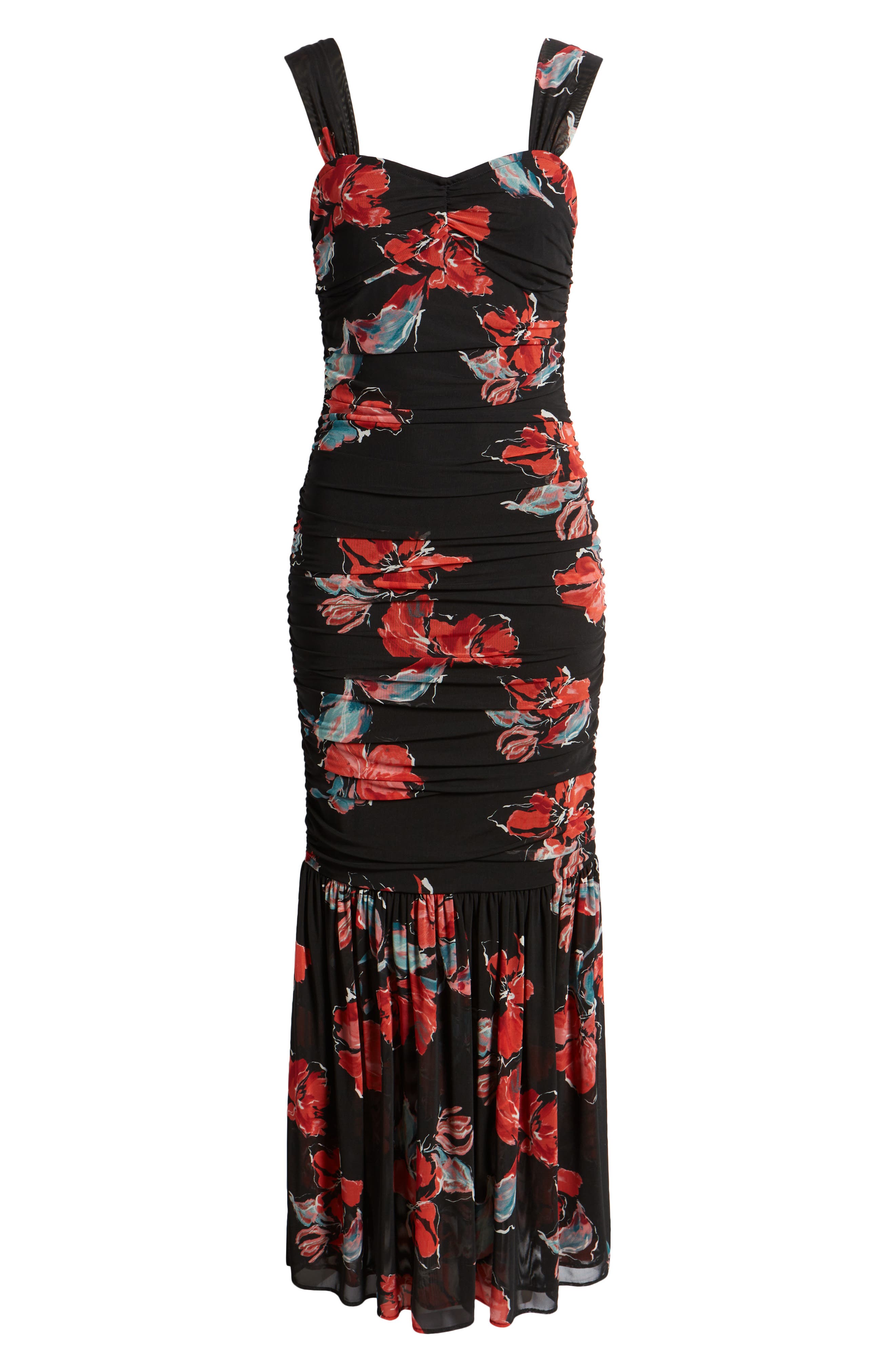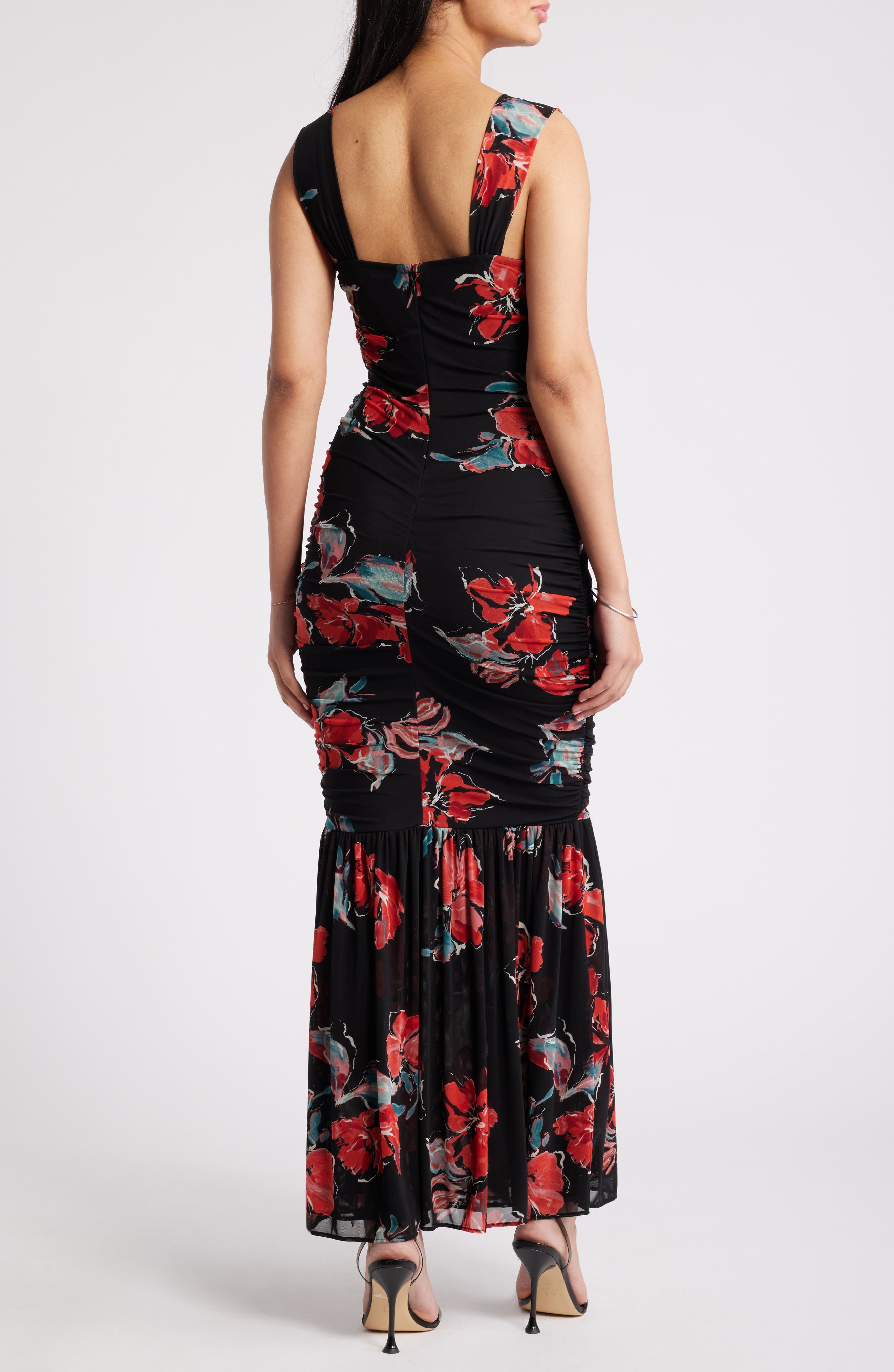 Chelsea28 Ruched Maxi Dress_Black- Red Lyrical Floral
