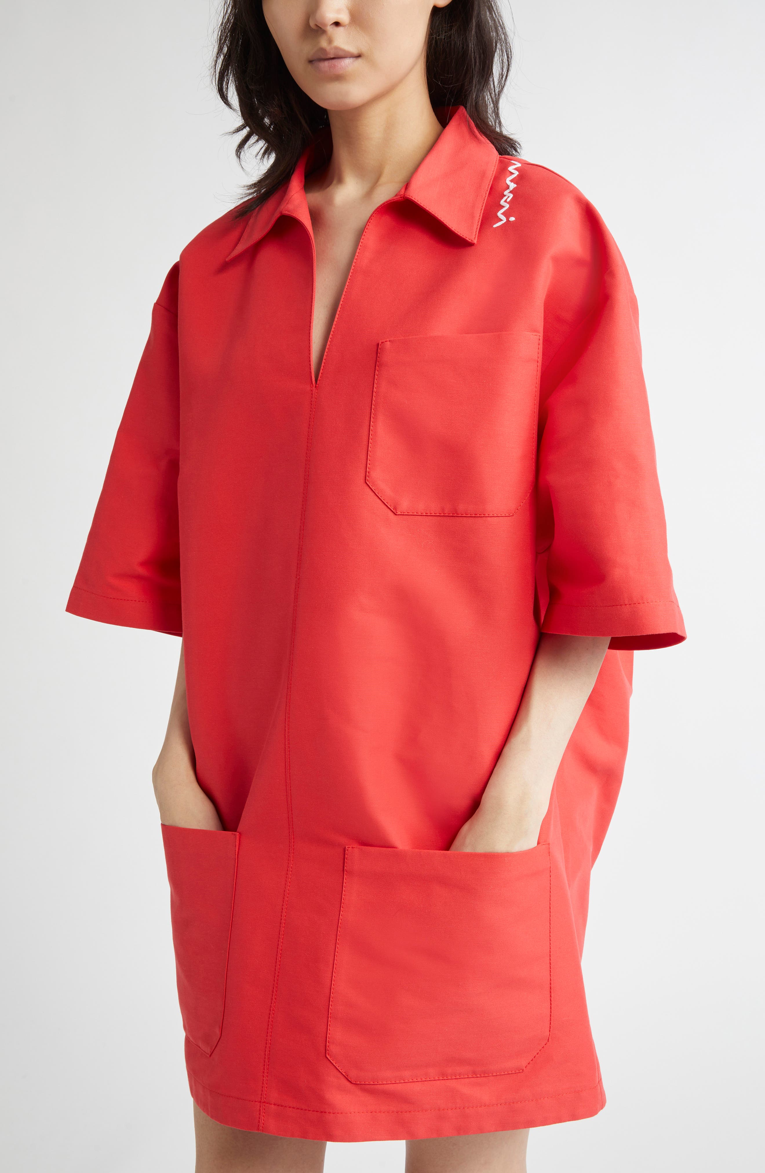 Marni Embroidered Logo Boxy Minidress_Crimson