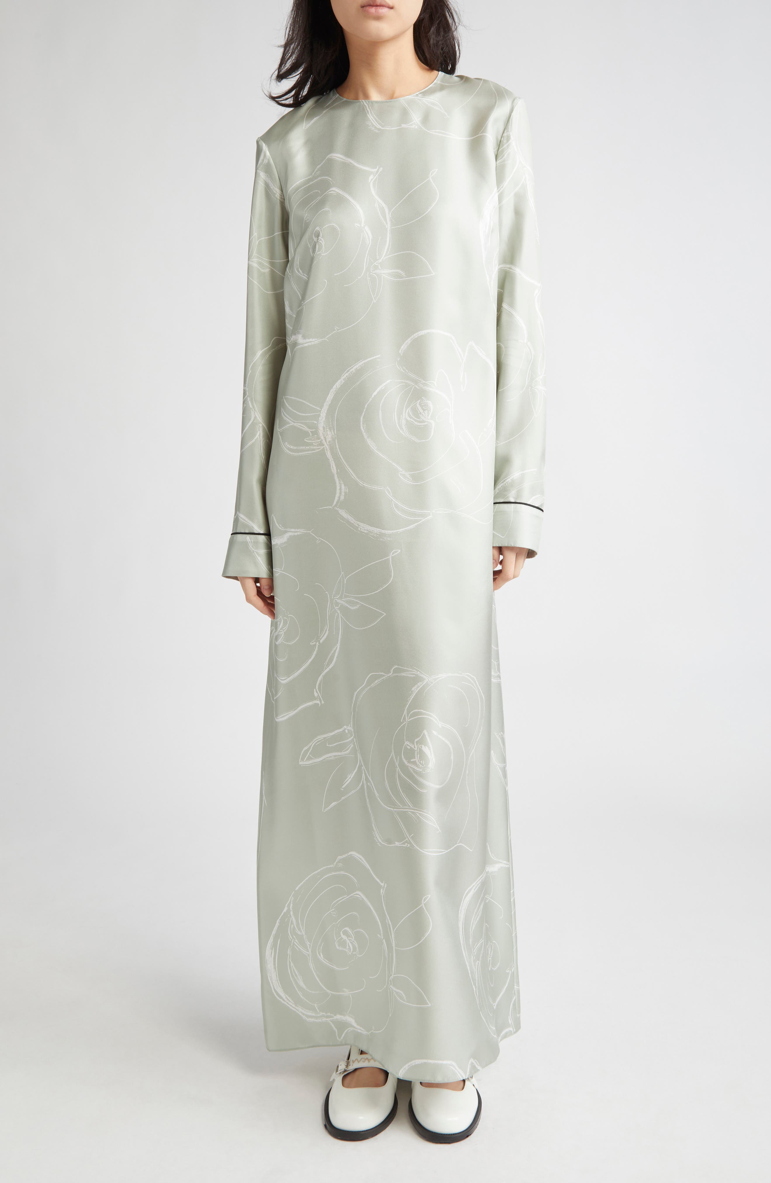 Marni Drawn Floral Long Sleeve Silk Dress_Auv19 Linden