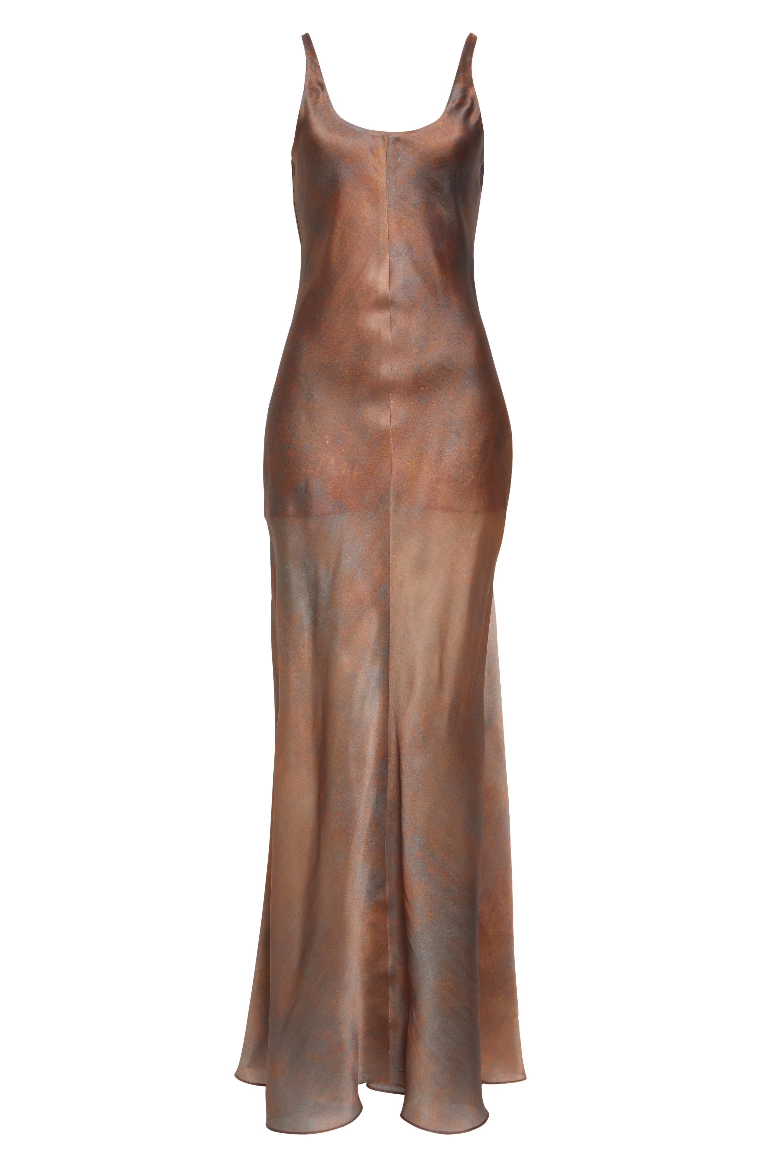 GRACE LING Bias Cut Silk Organza Dress_Rust