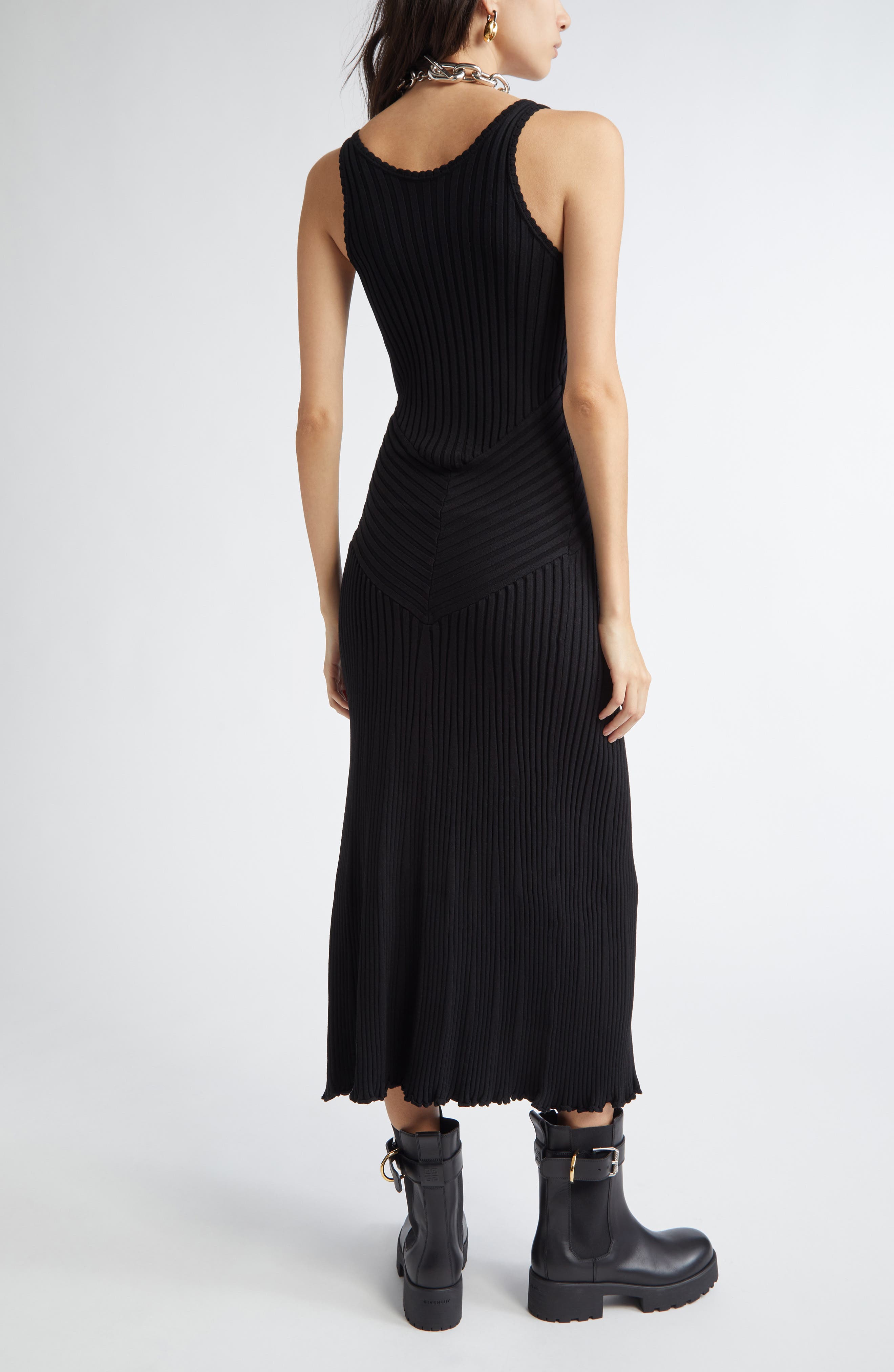 Rabanne Button Front Rib Body-Con Tank Dress_Black