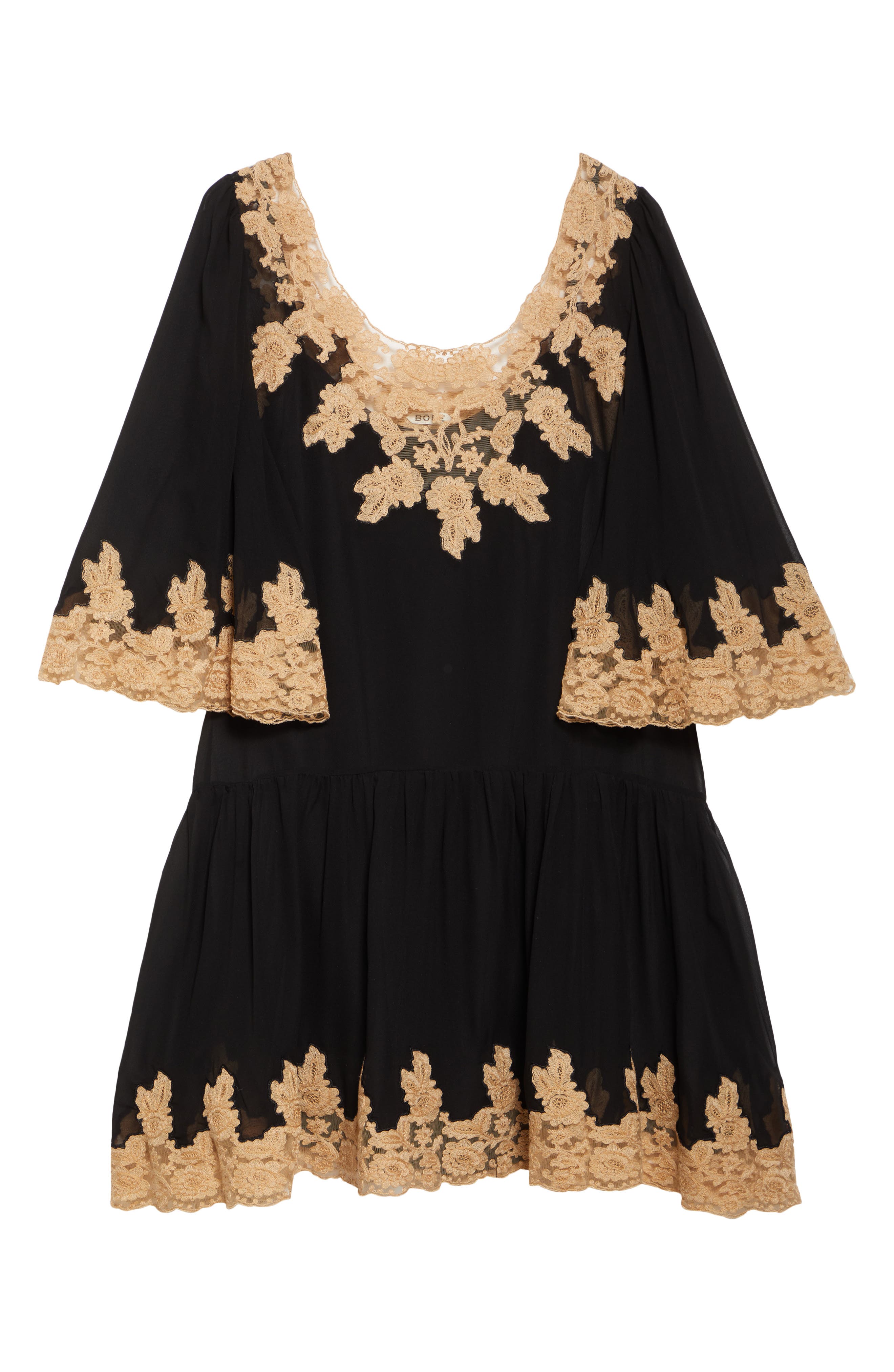 Bode Marisel Lace Trim Silk Chiffon Dress_Black/ Natural