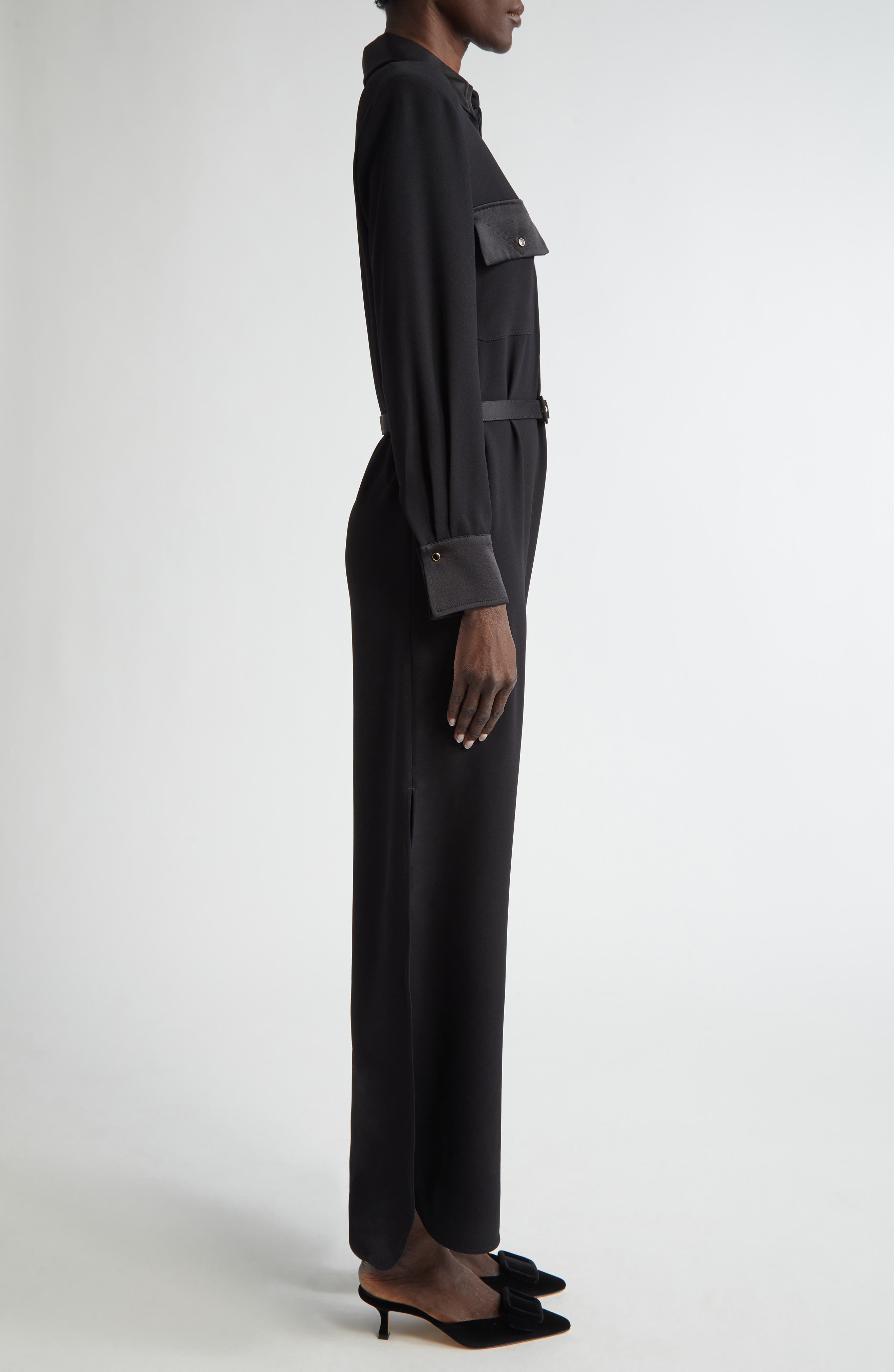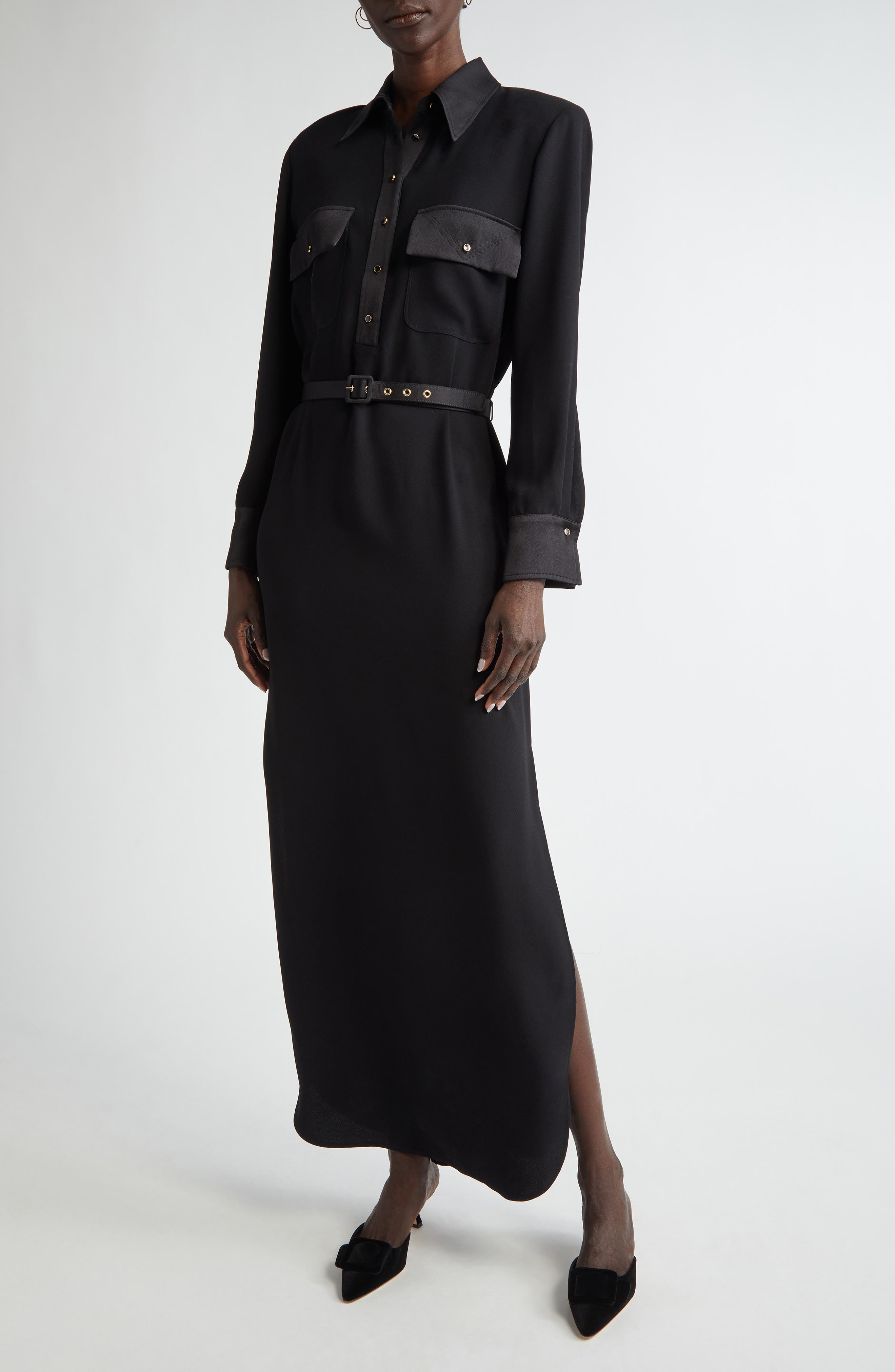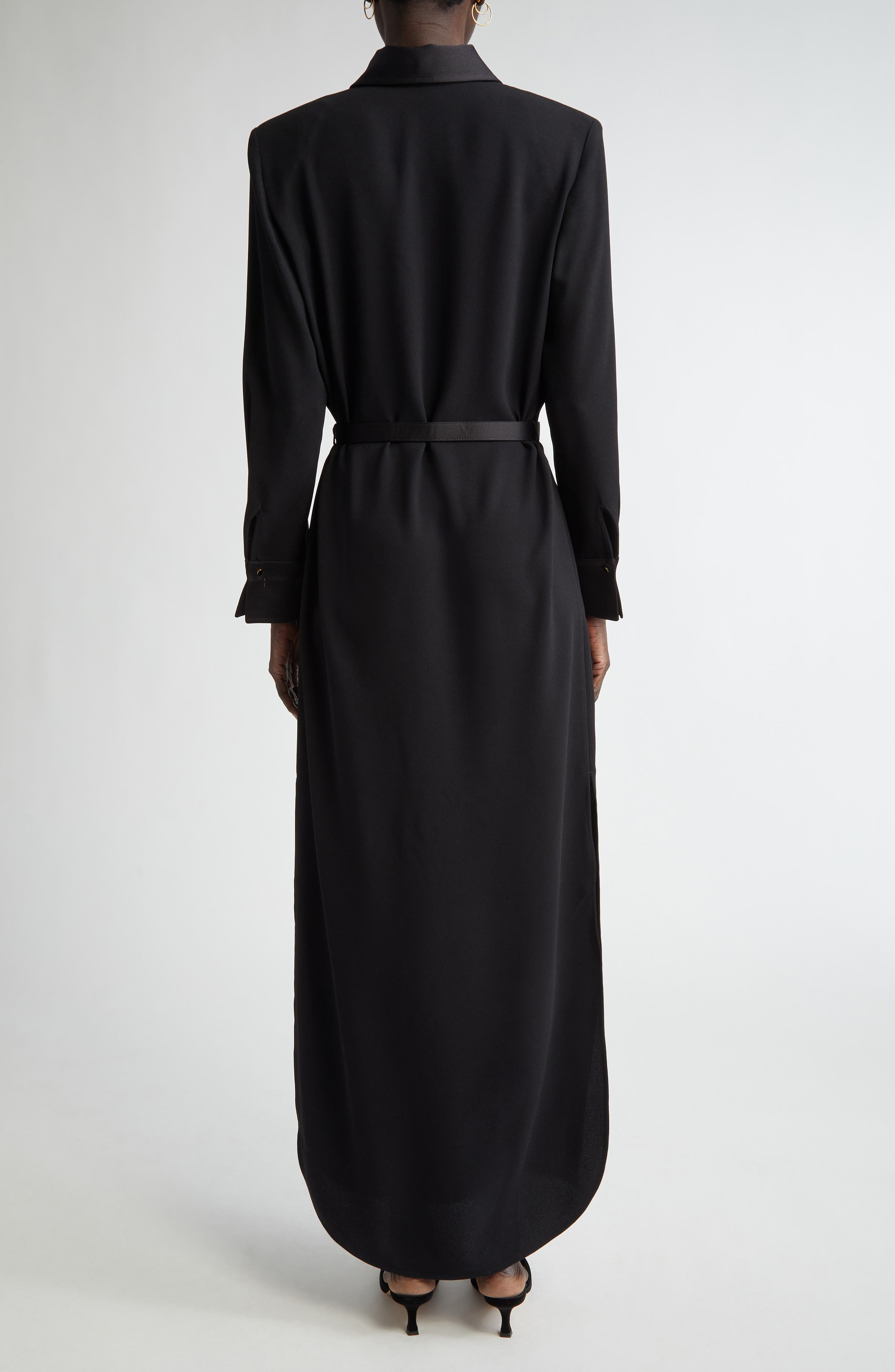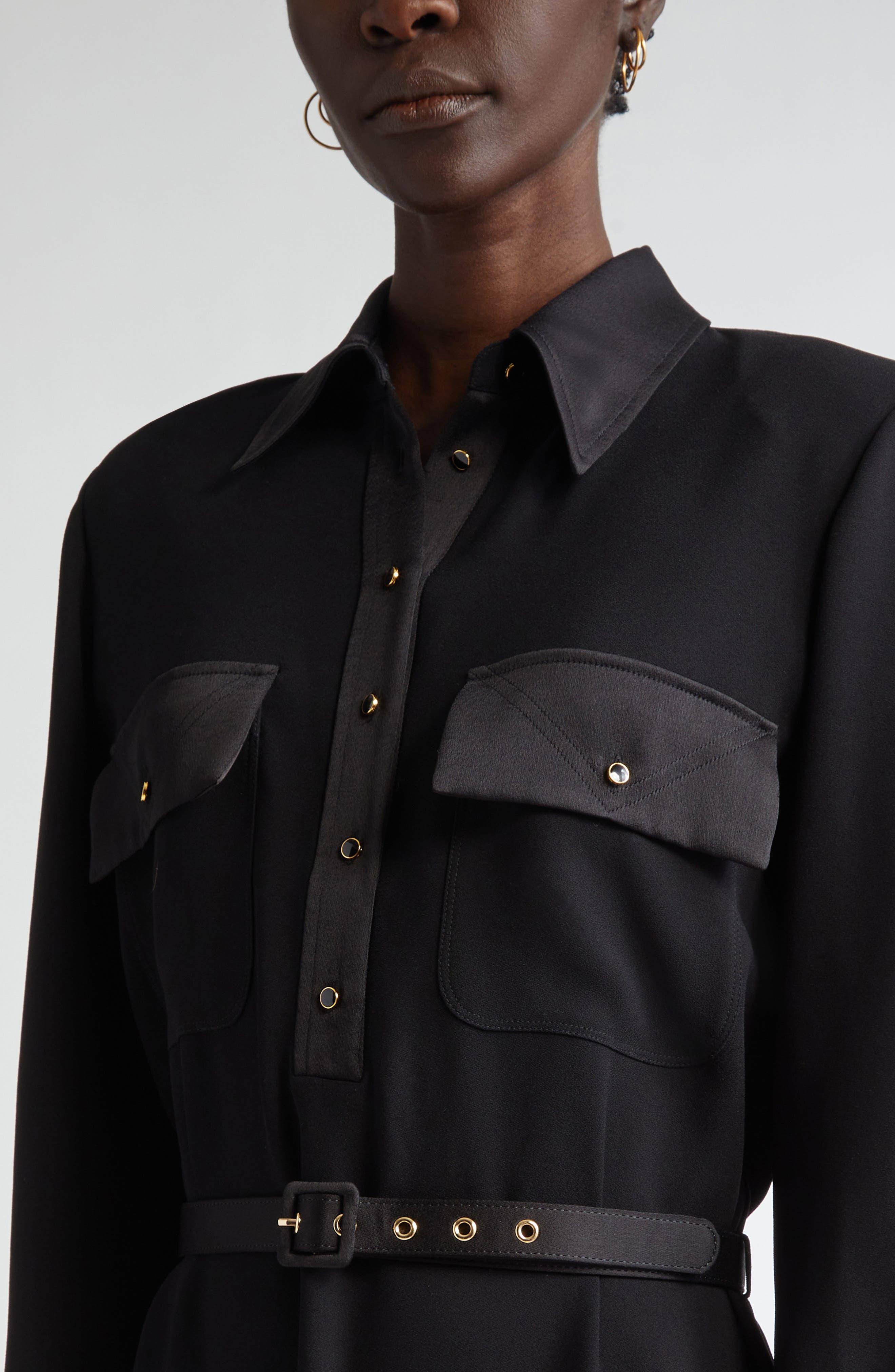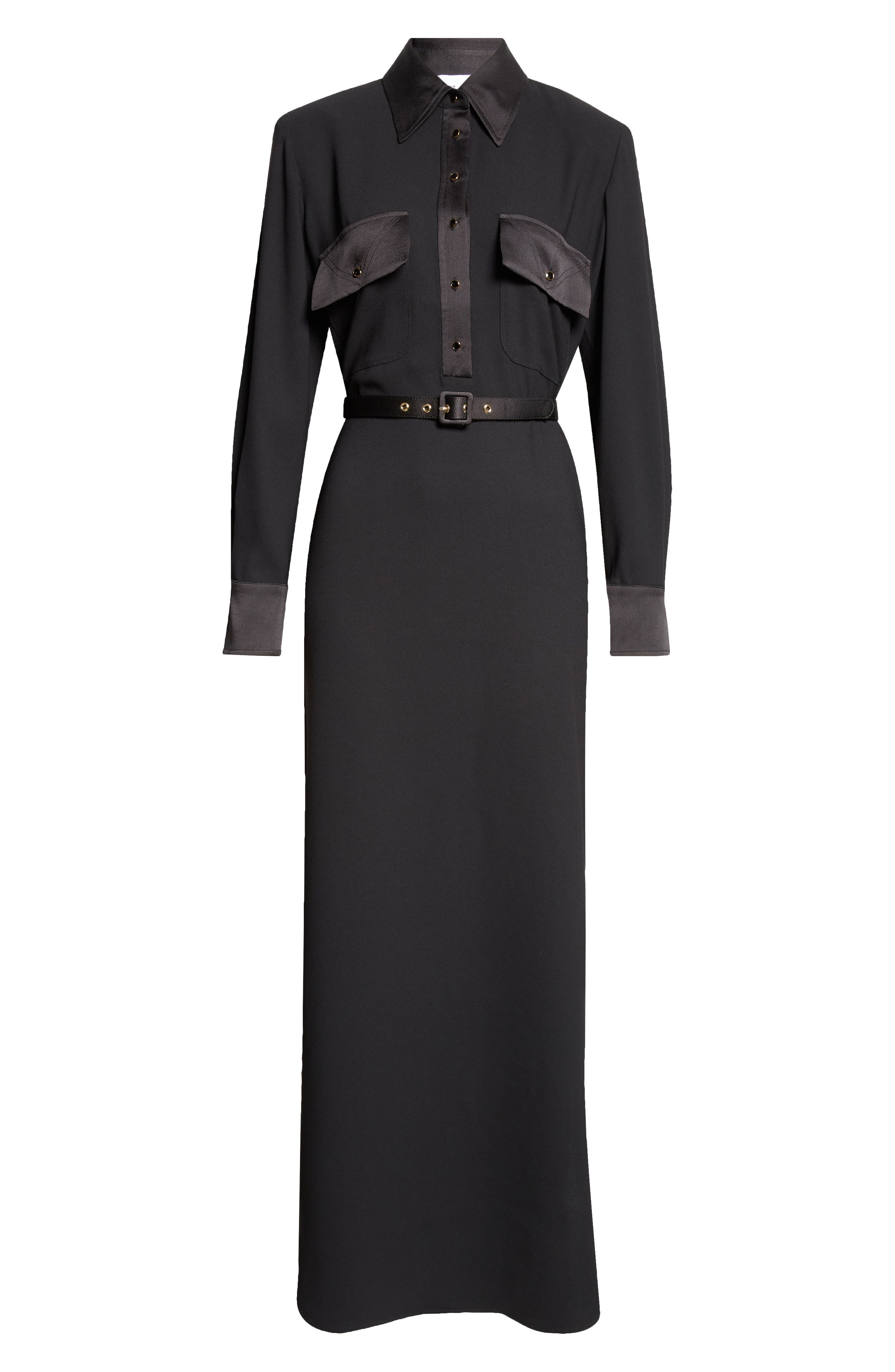 St John Collection St. John Collection Long Sleeve Satin Back Crepe Shirtdress_Black