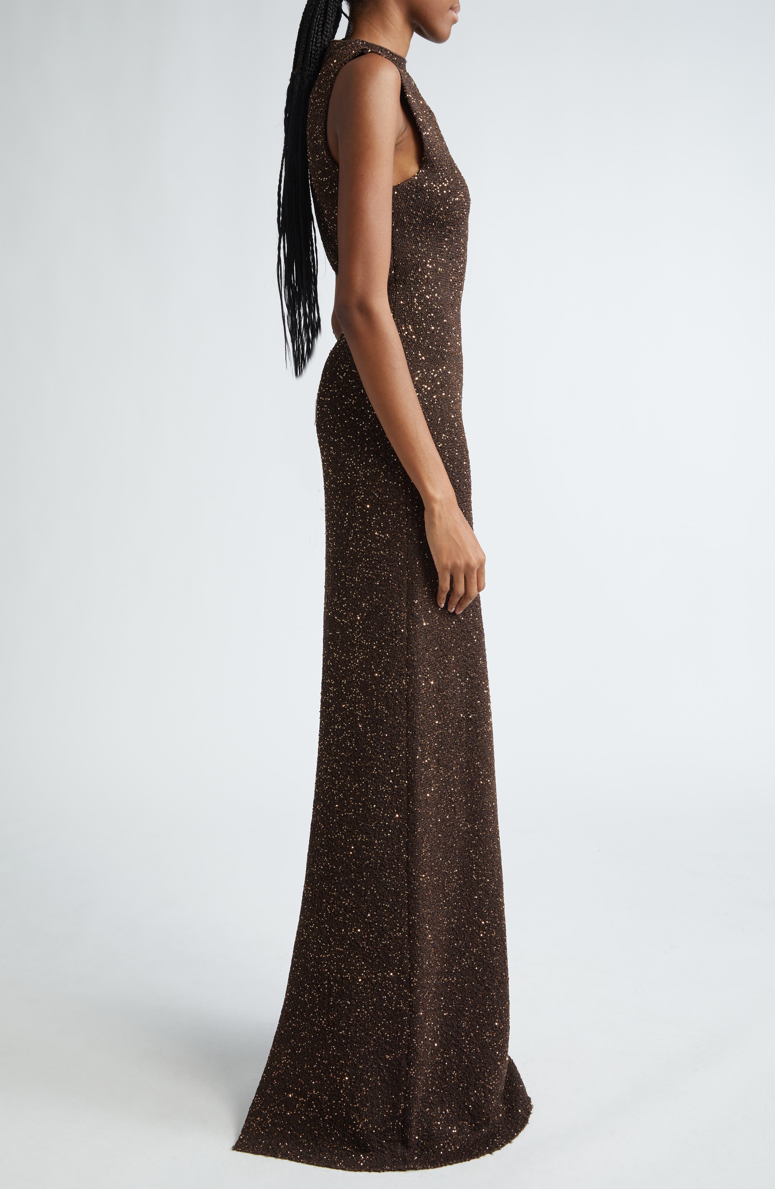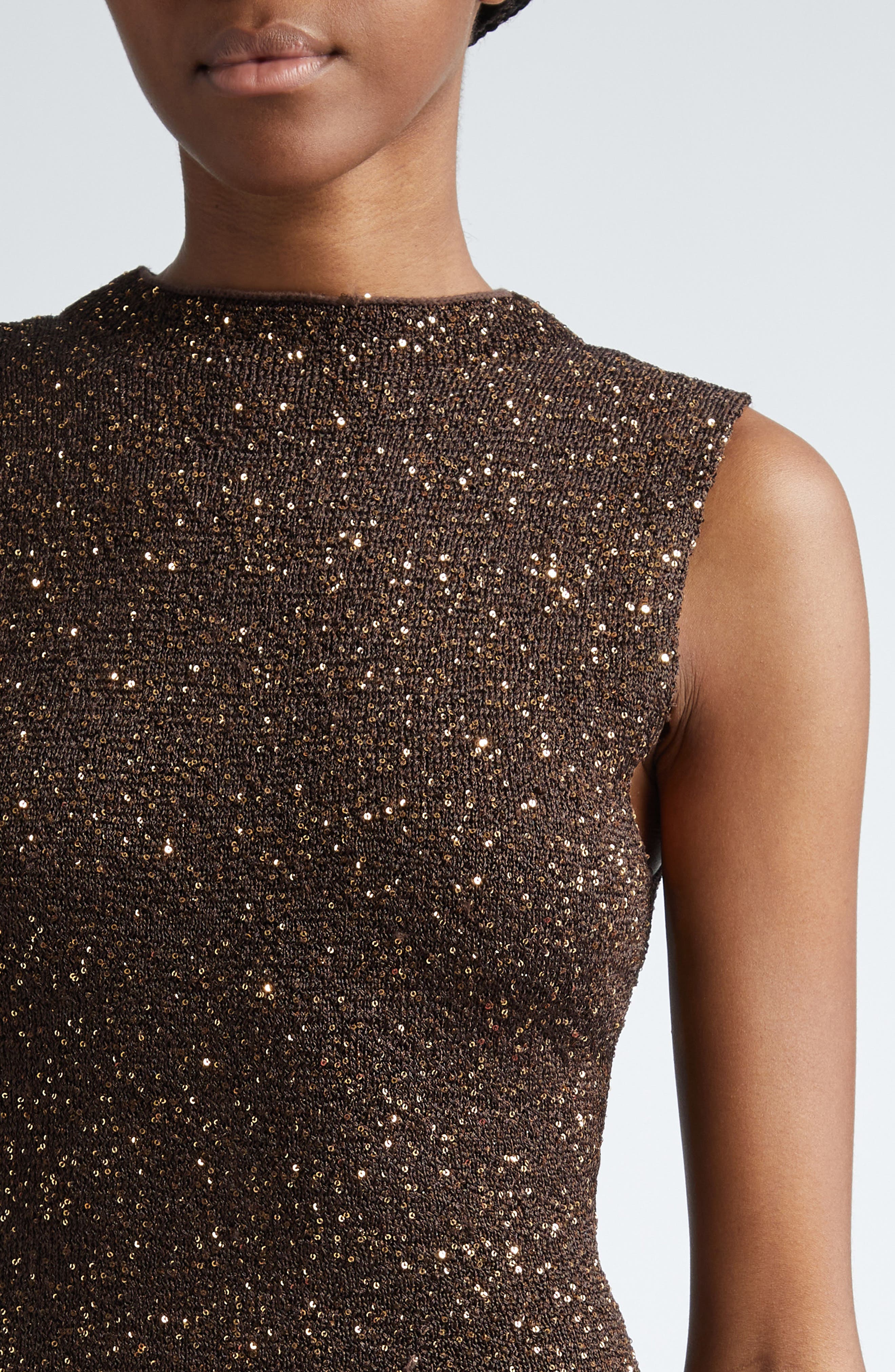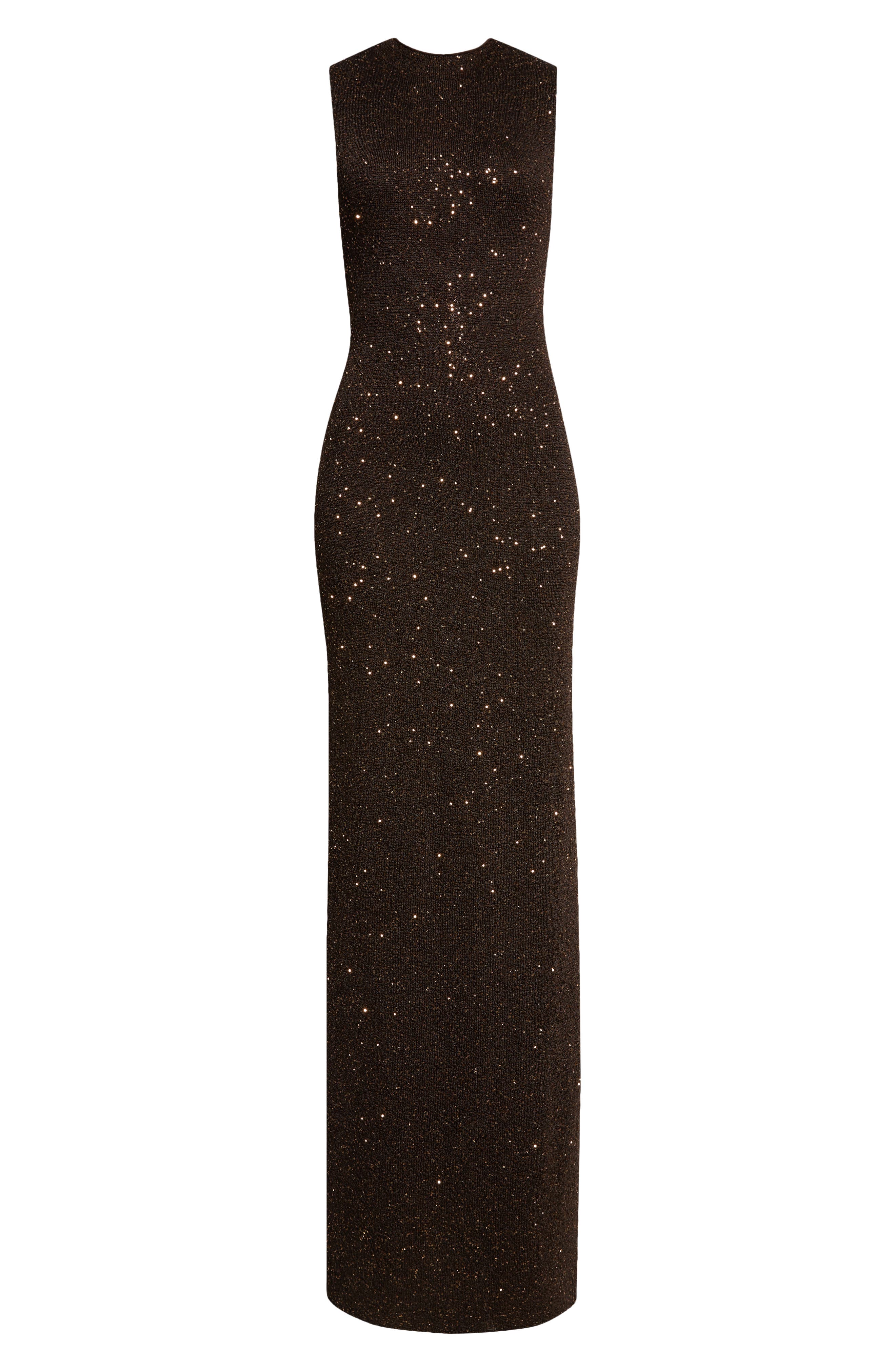 Lela Rose Sequin Funnel Neck Sweater Gown_Chestnut