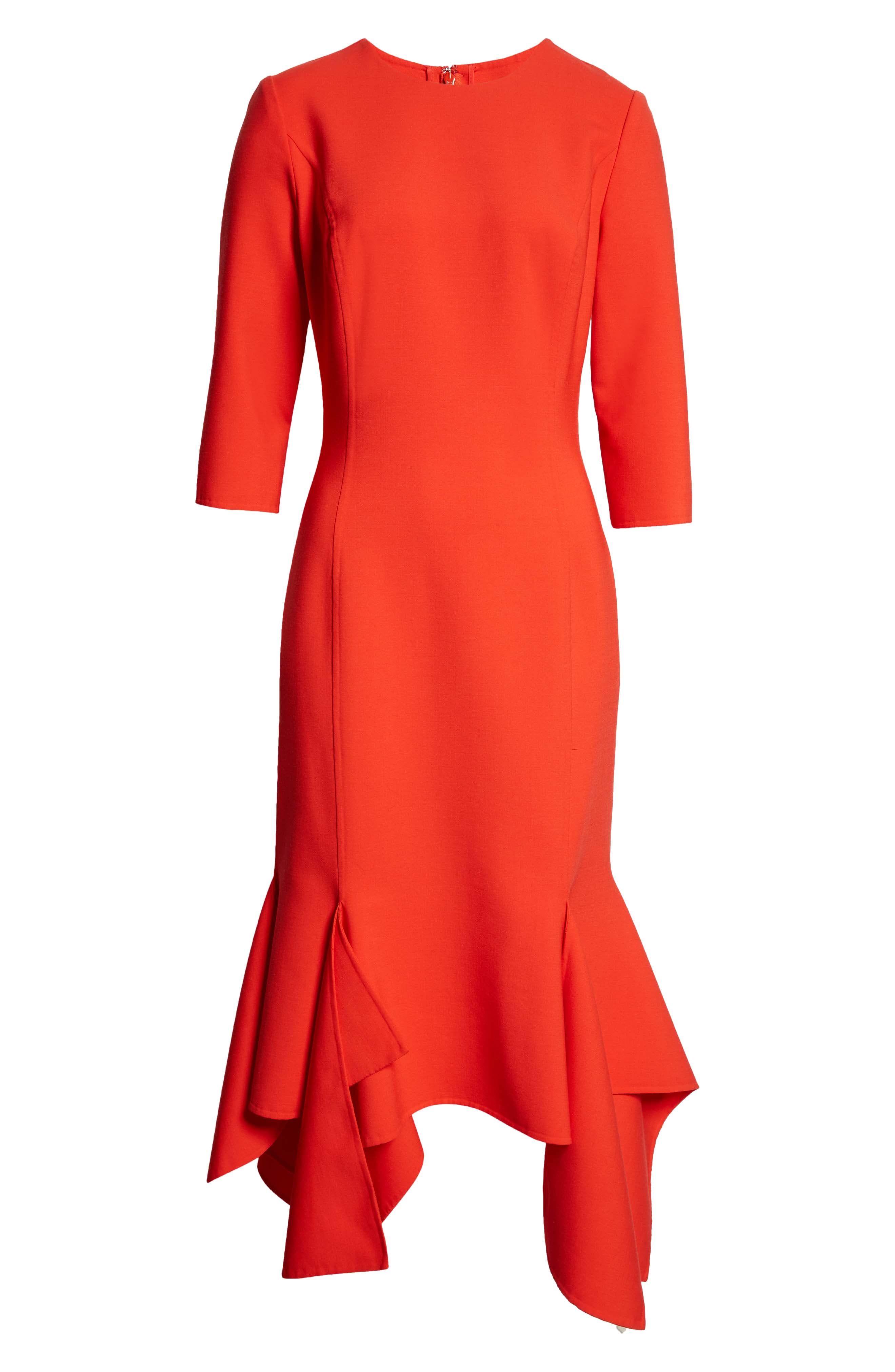 Oscar de la Renta Asymmetric Hem Virgin Wool Blend Midi Dress_Vermilion