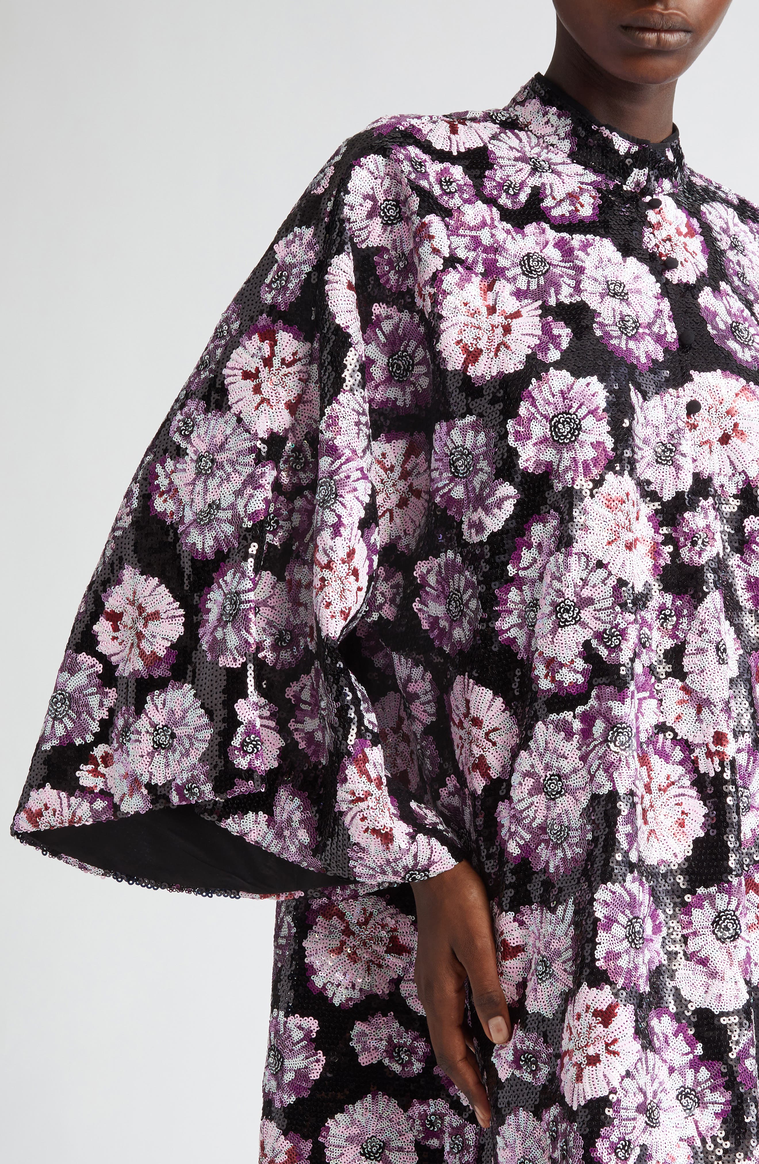 La Vie Style House Floral Burst Sequin Cover-Up Minidress_Black/ Purple