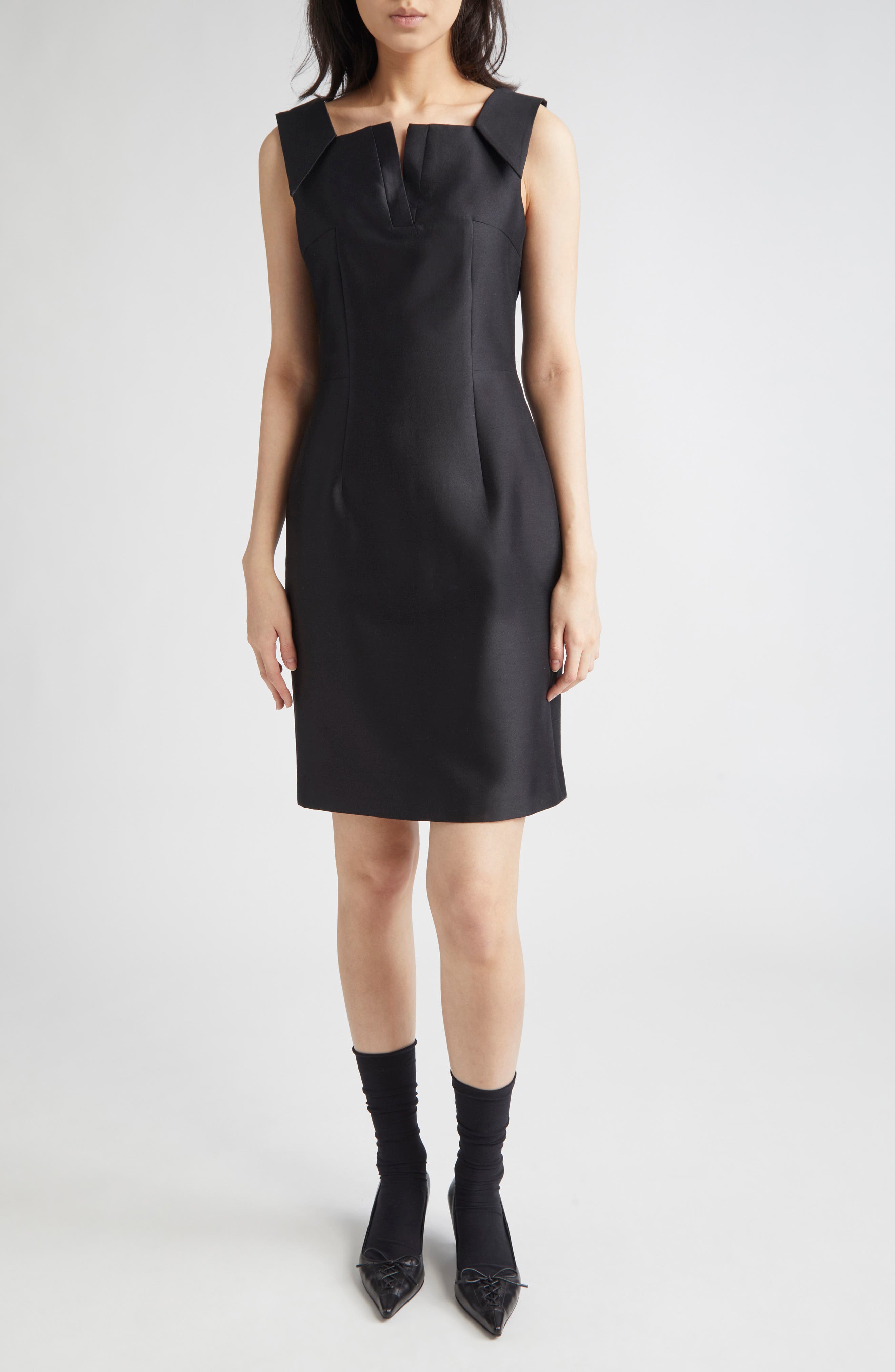 Shushu/Tong Waist Cinching Wool & Silk Sheath Dress_Black
