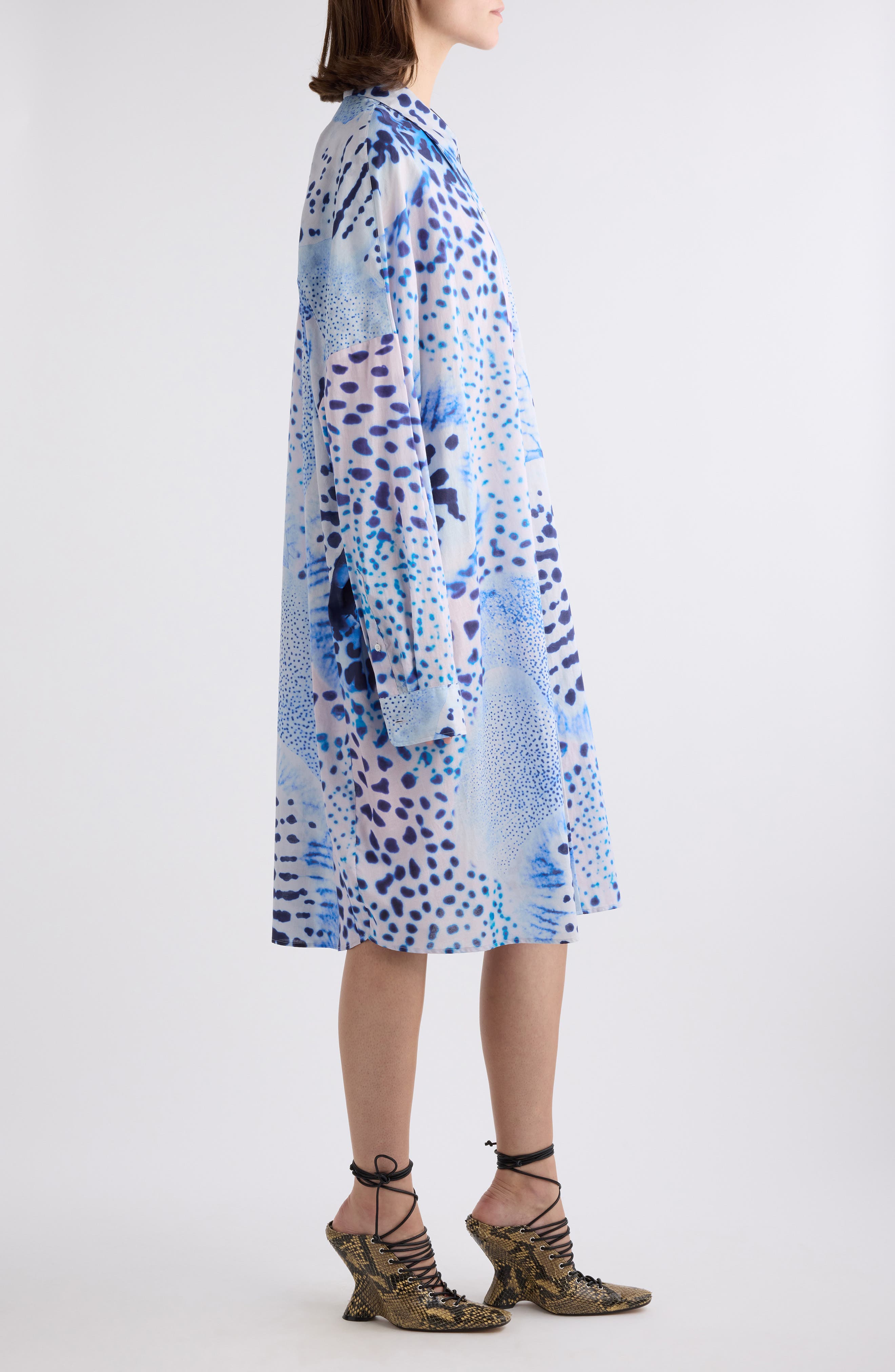 Dries Van Noten Dasia Orchid Spot Long Sleeve Cotton Shirtdress_Blue