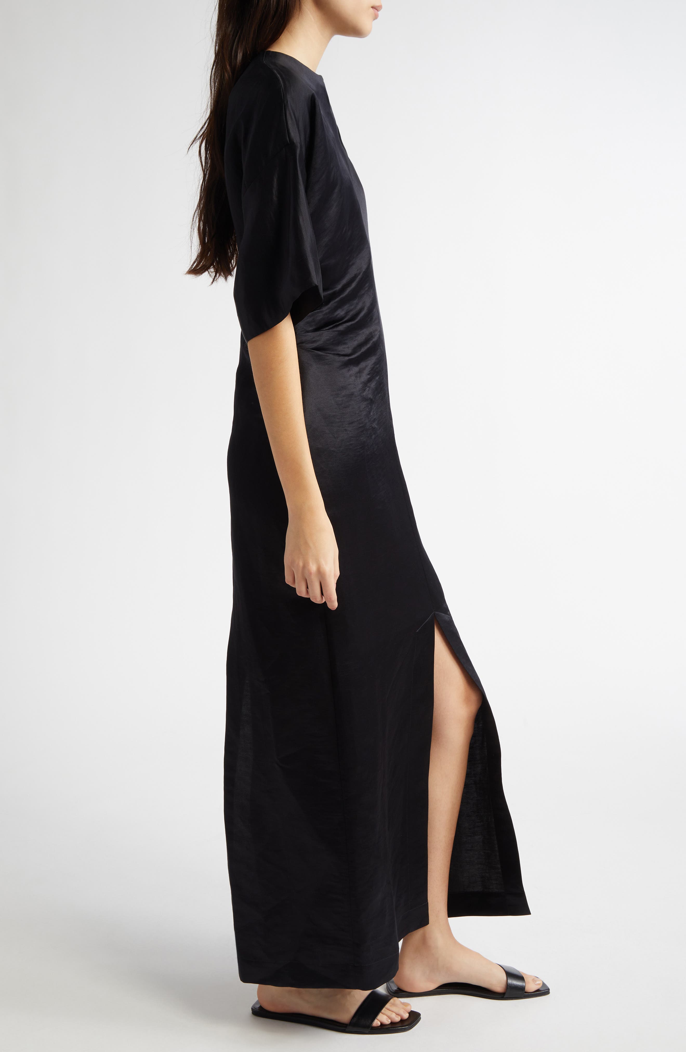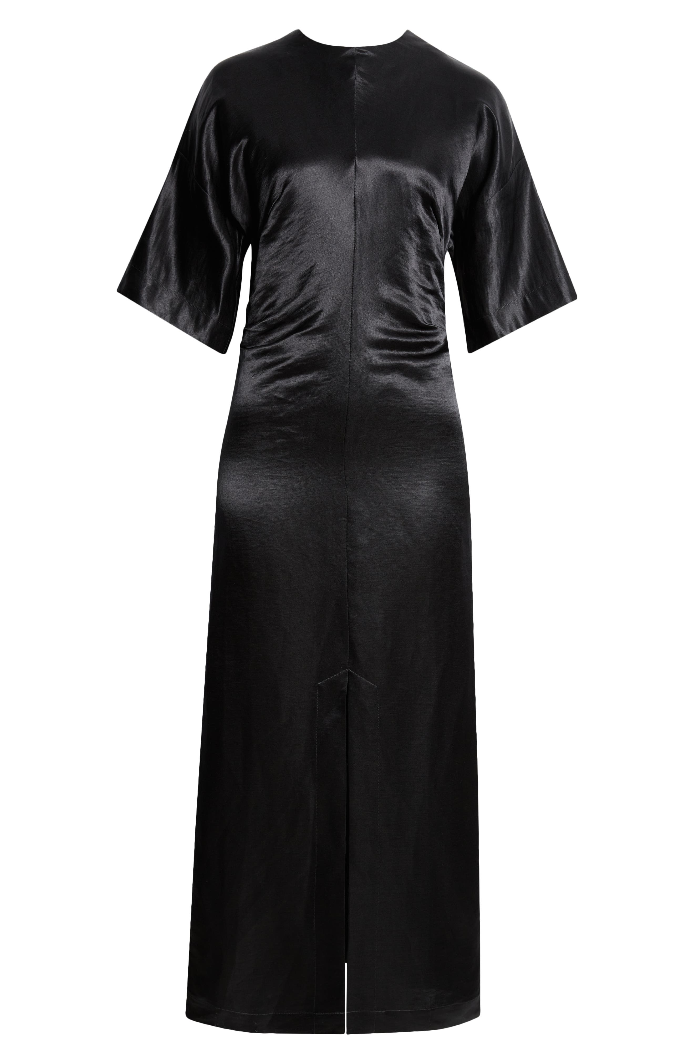 LOULOU DE SAISON Ruby Fitted Linen & Silk Satin Dress_Black