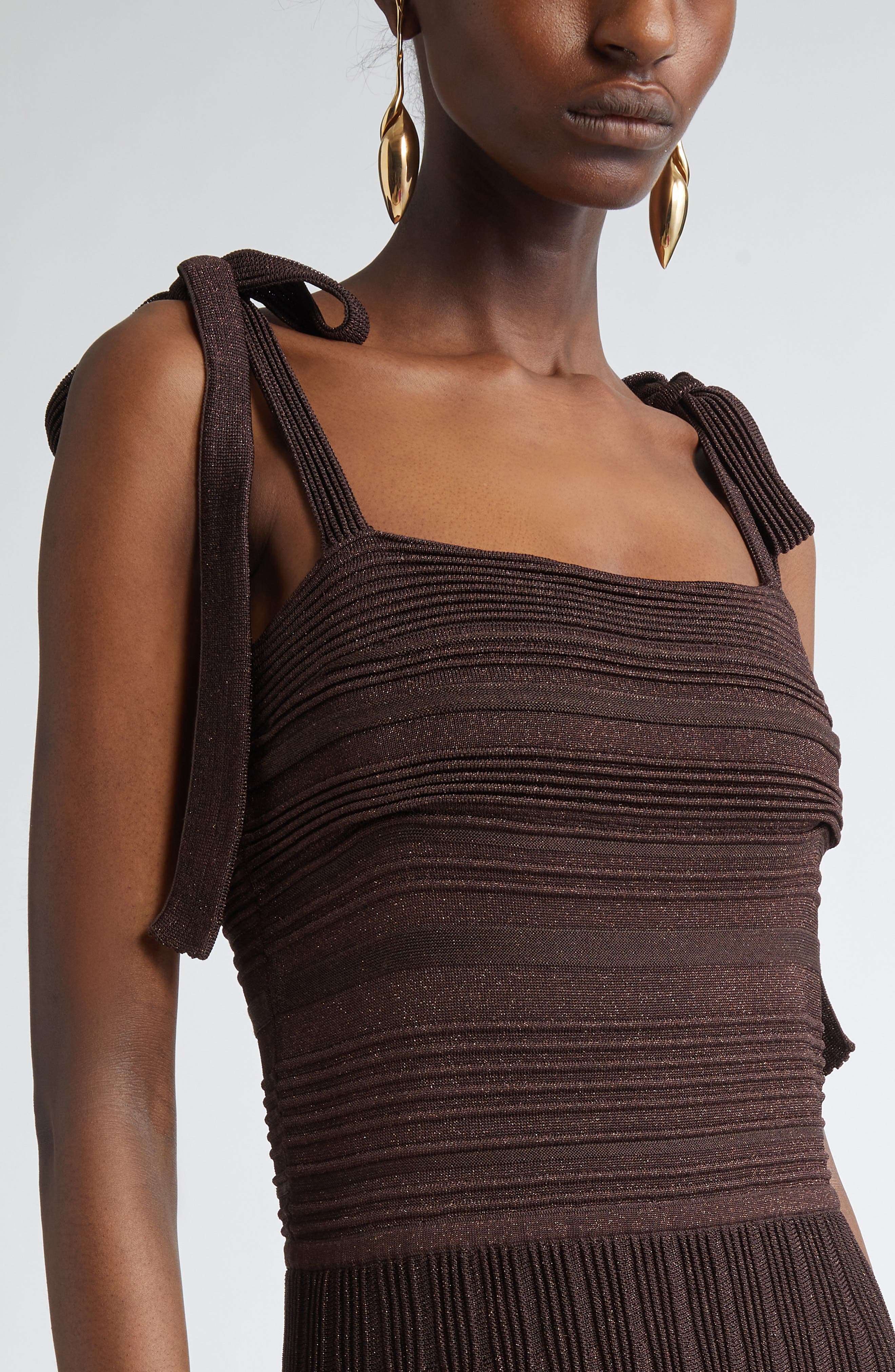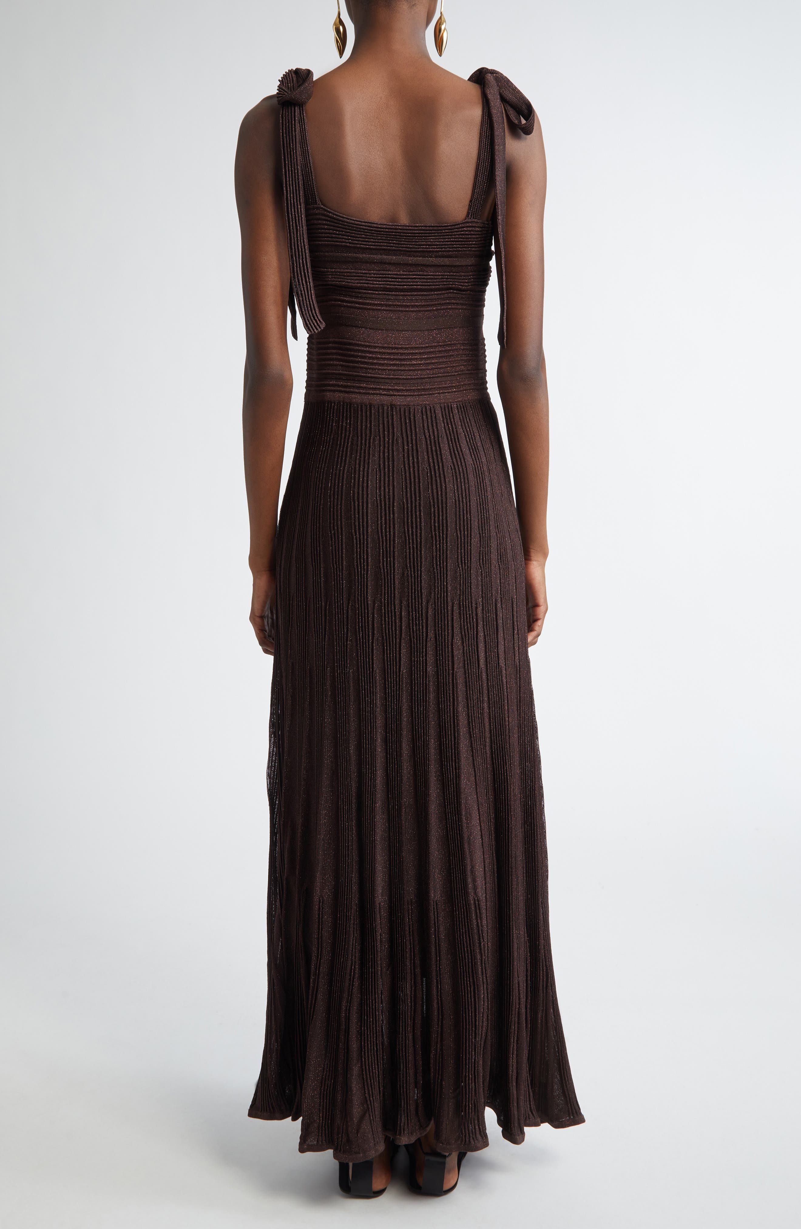 HasSearch:true searchTerm: Zimmermann Lucky Tie Shoulder Metallic Rib Maxi Dress_Metallic Chocolate