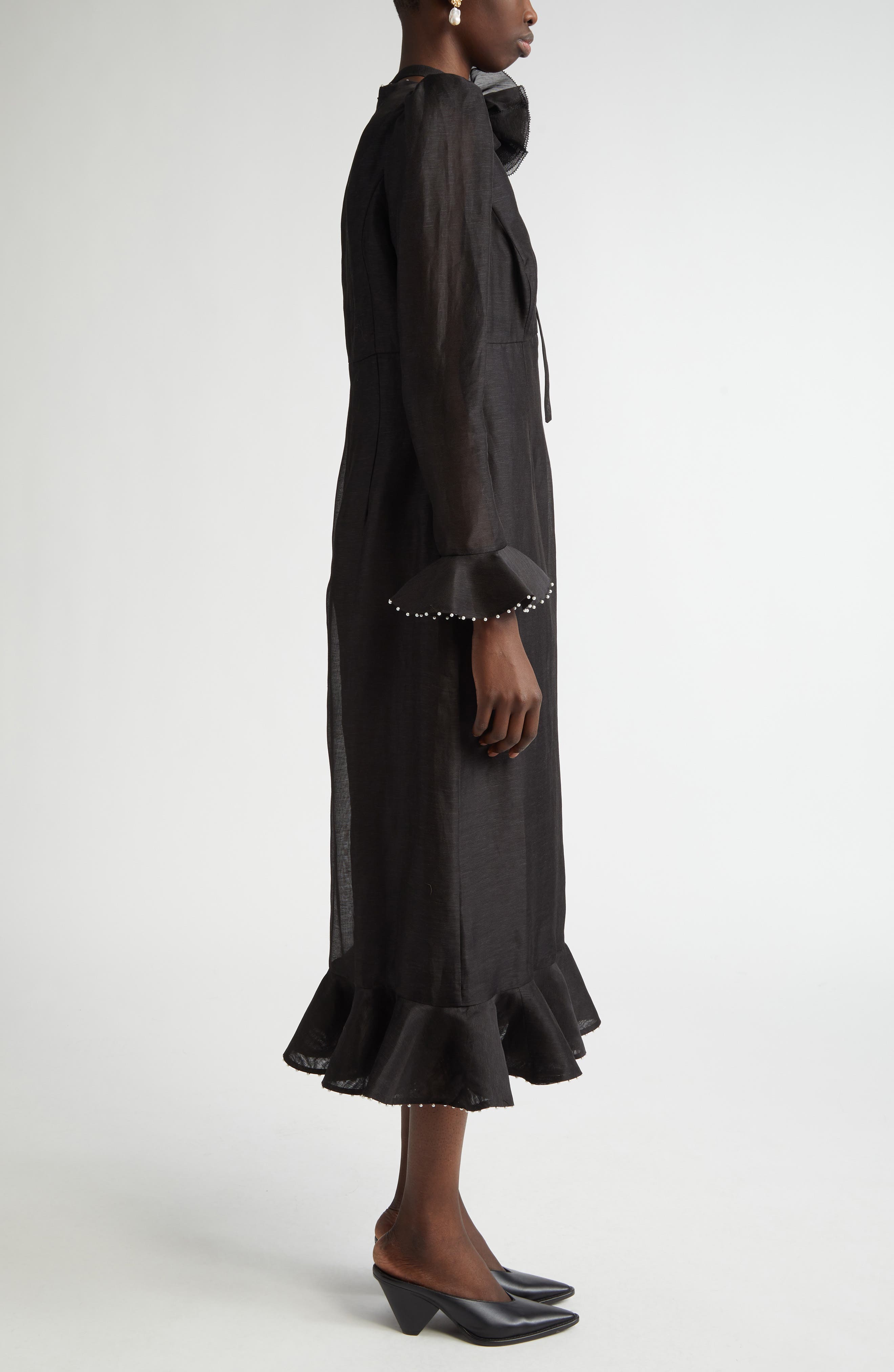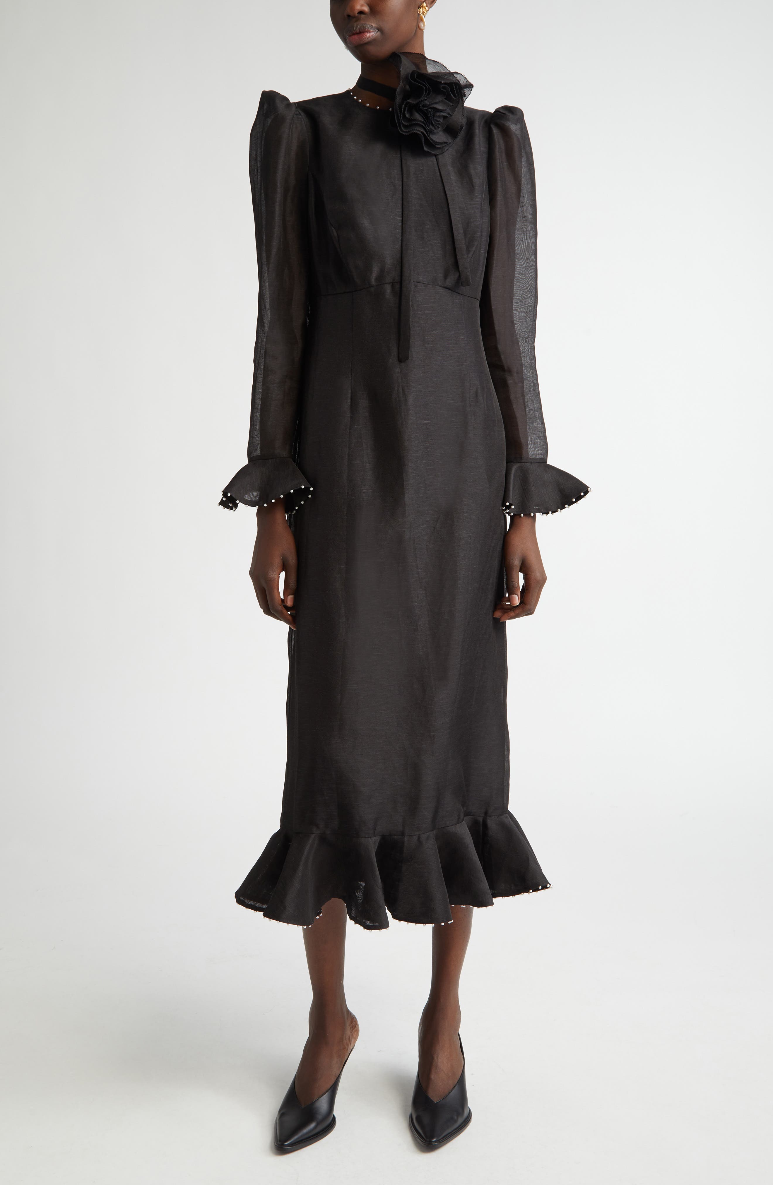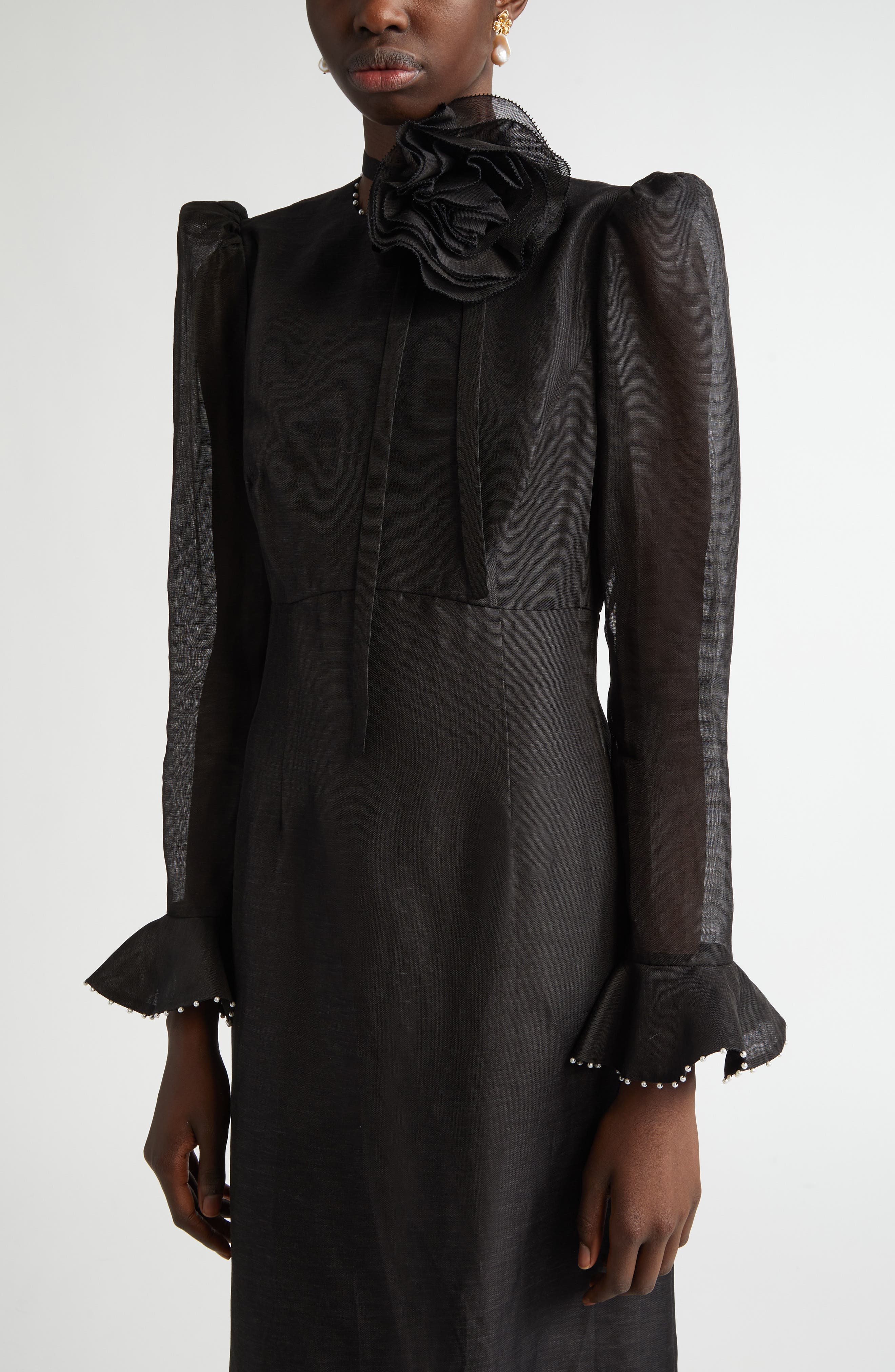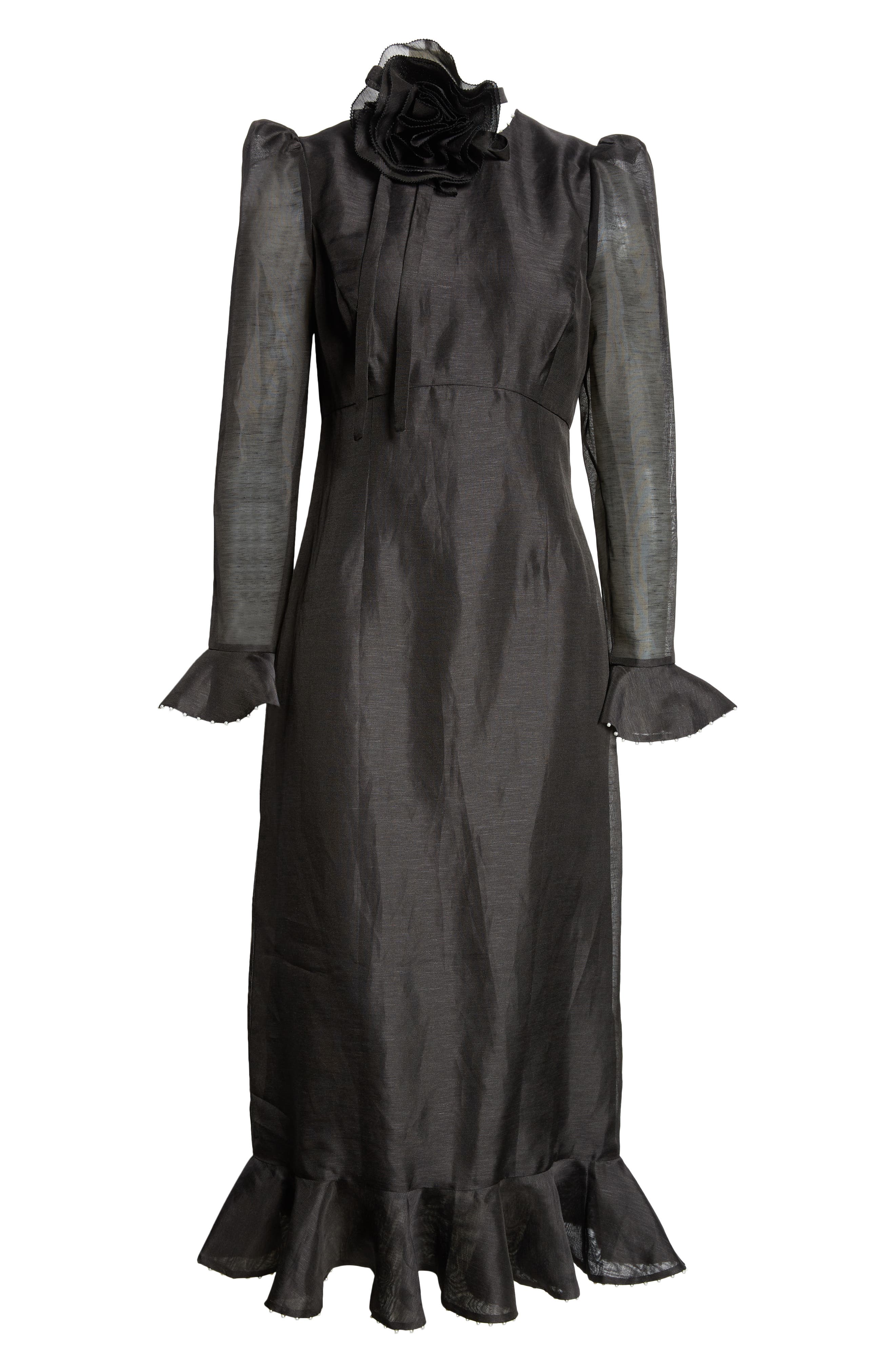 HasSearch:true searchTerm: Zimmermann Floral Long Sleeve Organza Midi Dress_Black