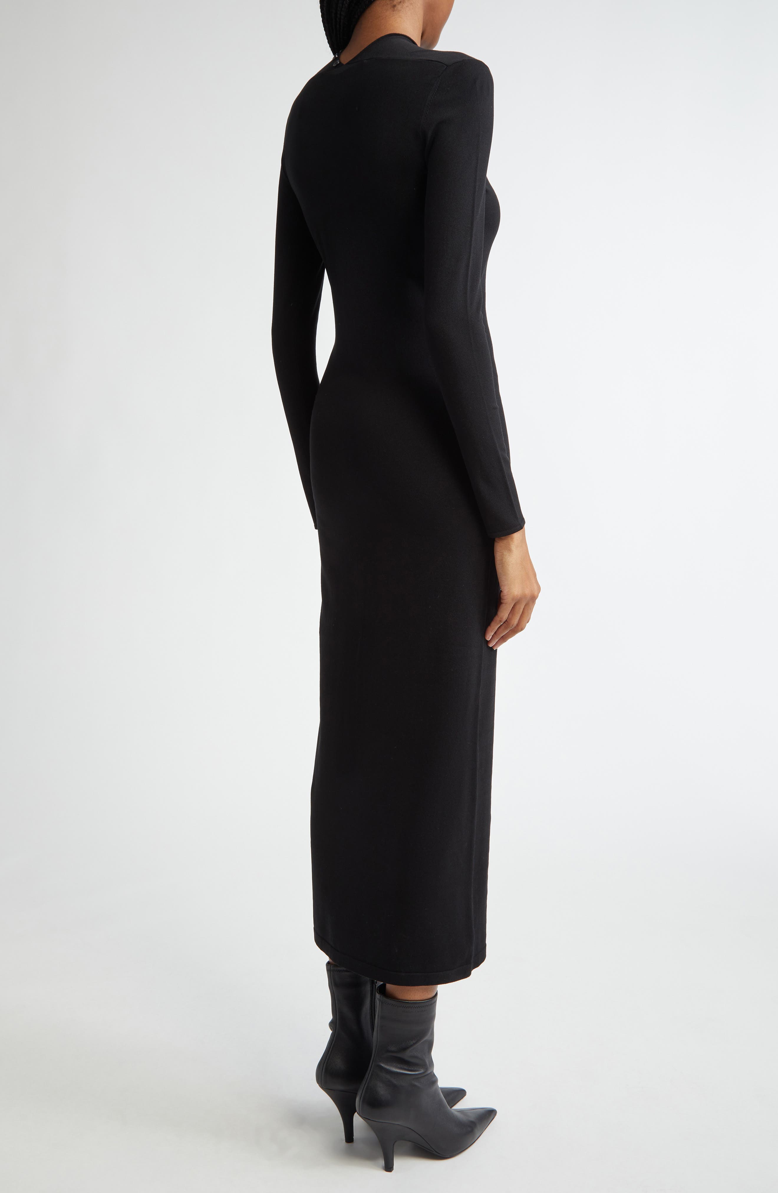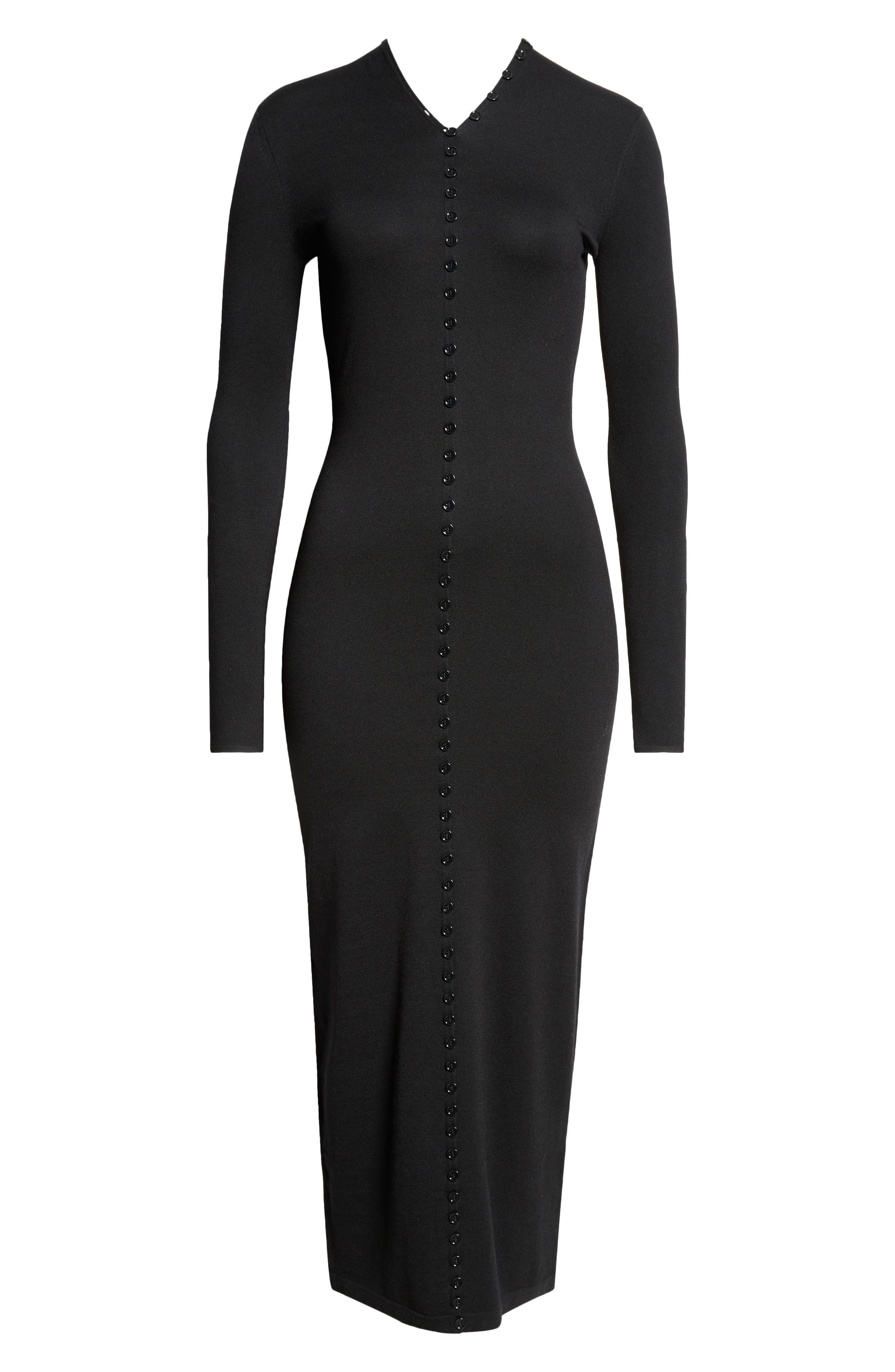 Alexander Wang Long Sleeve Knit Button-Up Body-Con Dress_Black