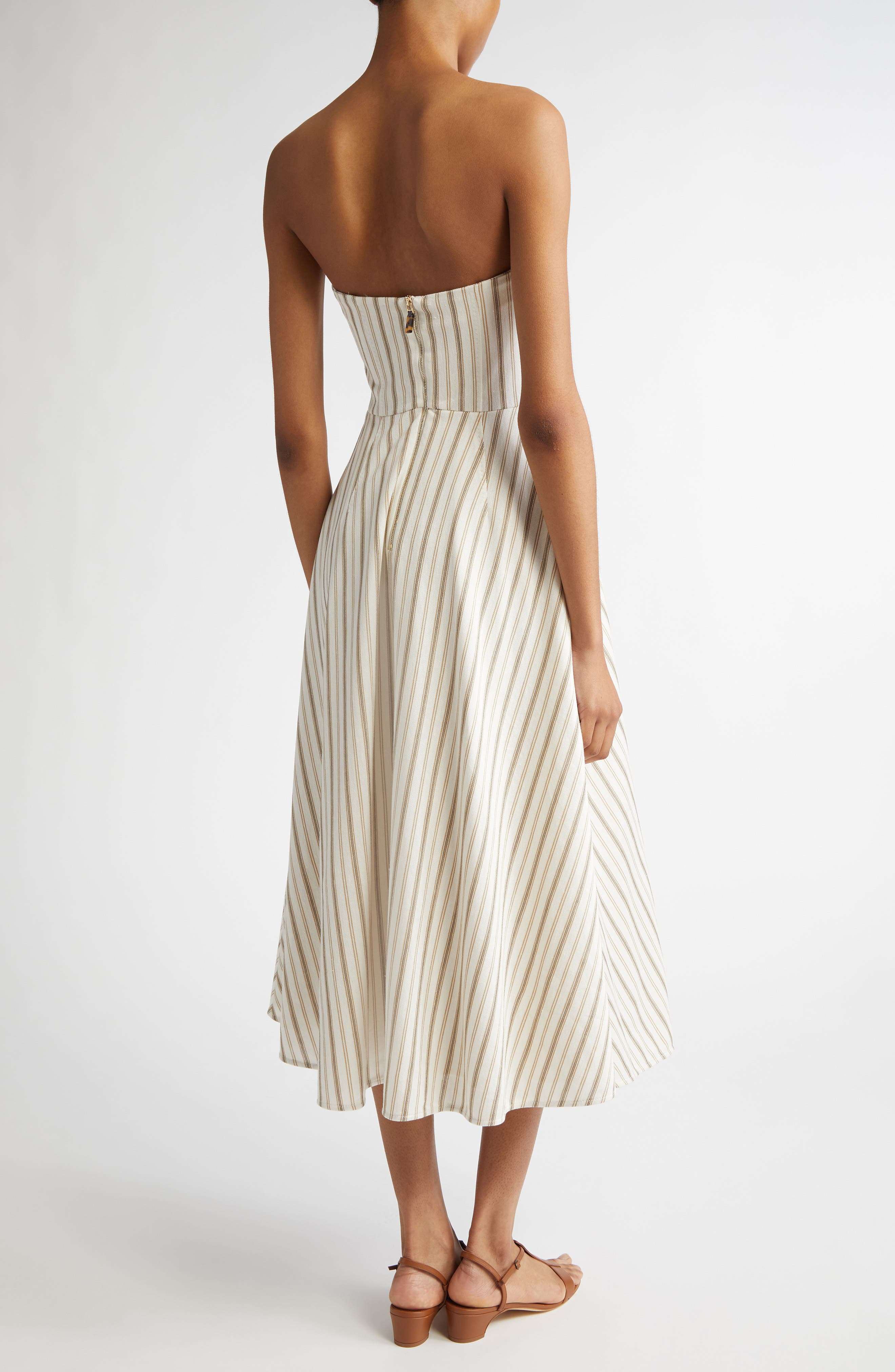 HasSearch:true searchTerm: Max Mara Fervida Stripe Bustier Cotton & Linen Midi Dress_Sand