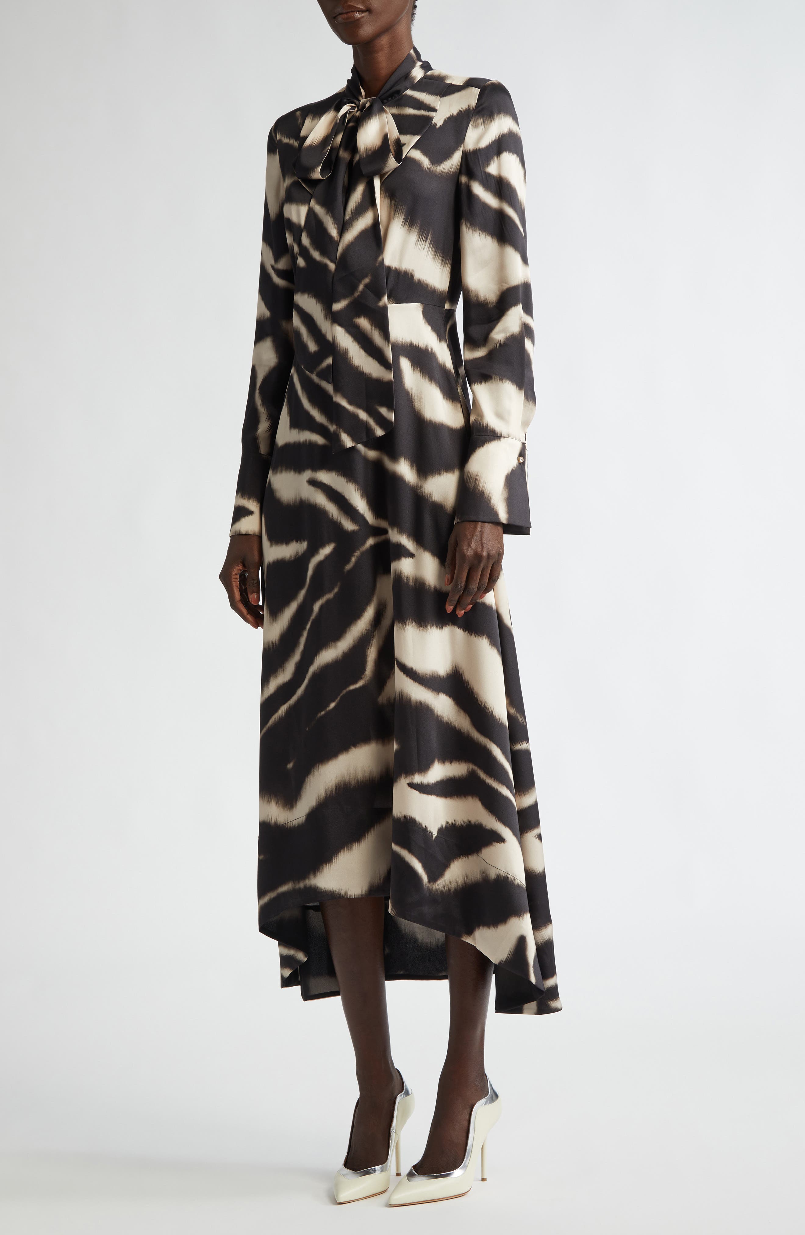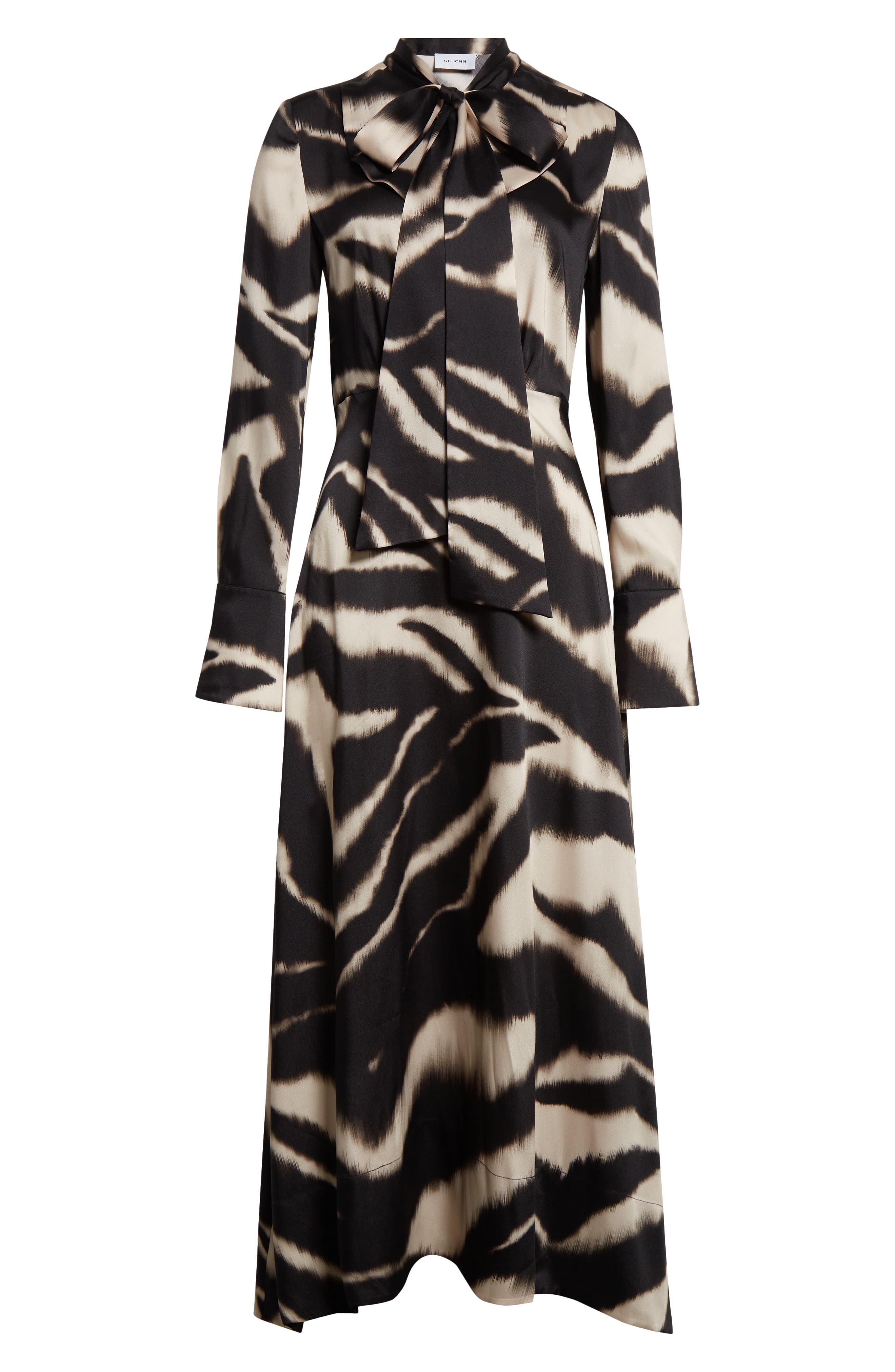 HasSearch:true searchTerm: St. John Collection Zebra Print Long Sleeve Pussy Bow Maxi Dress_Pink Blush/ Black Multi