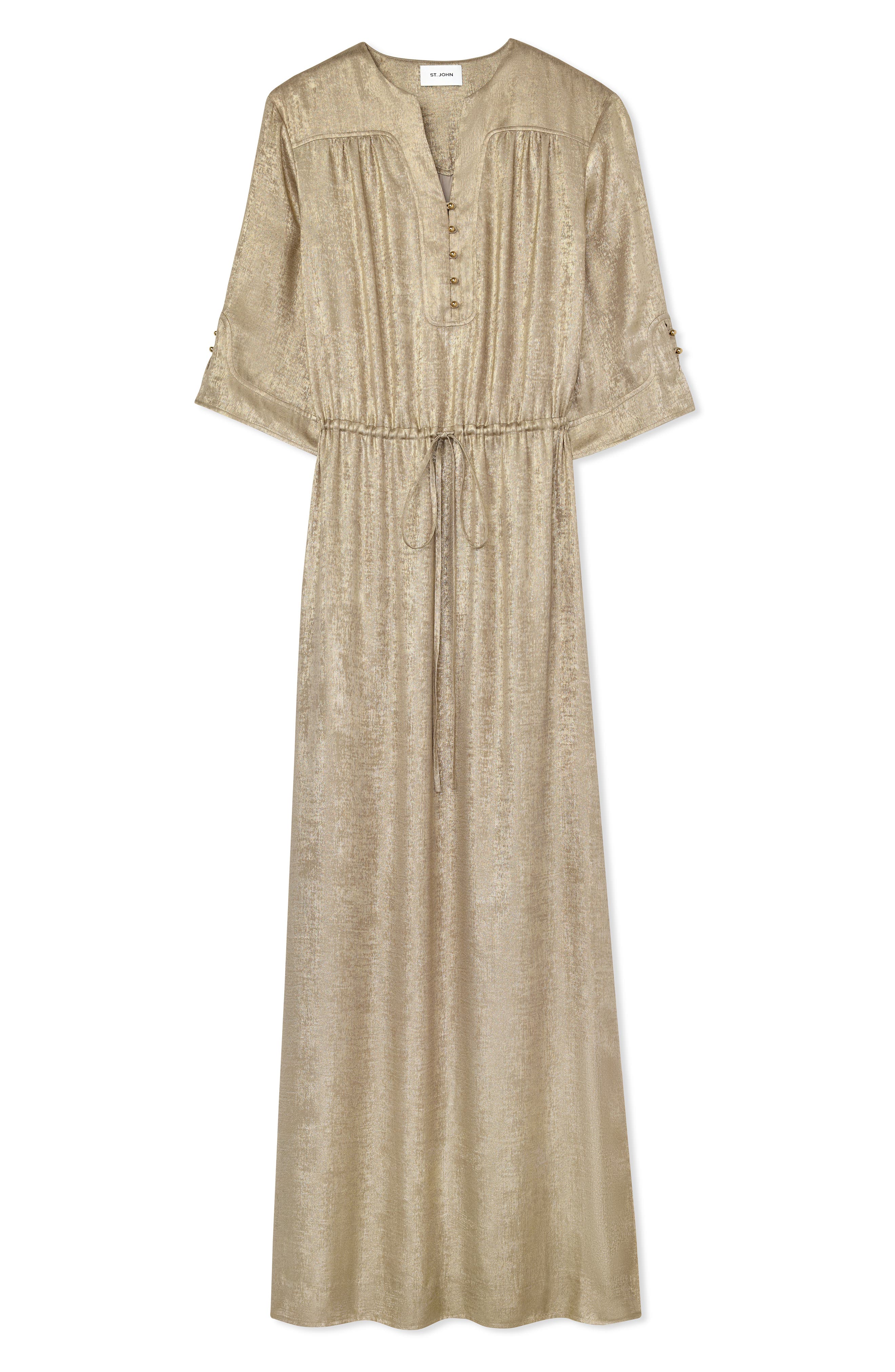 HasSearch:true searchTerm: St. John Collection Metallic Tie Waist Gown_Champagne