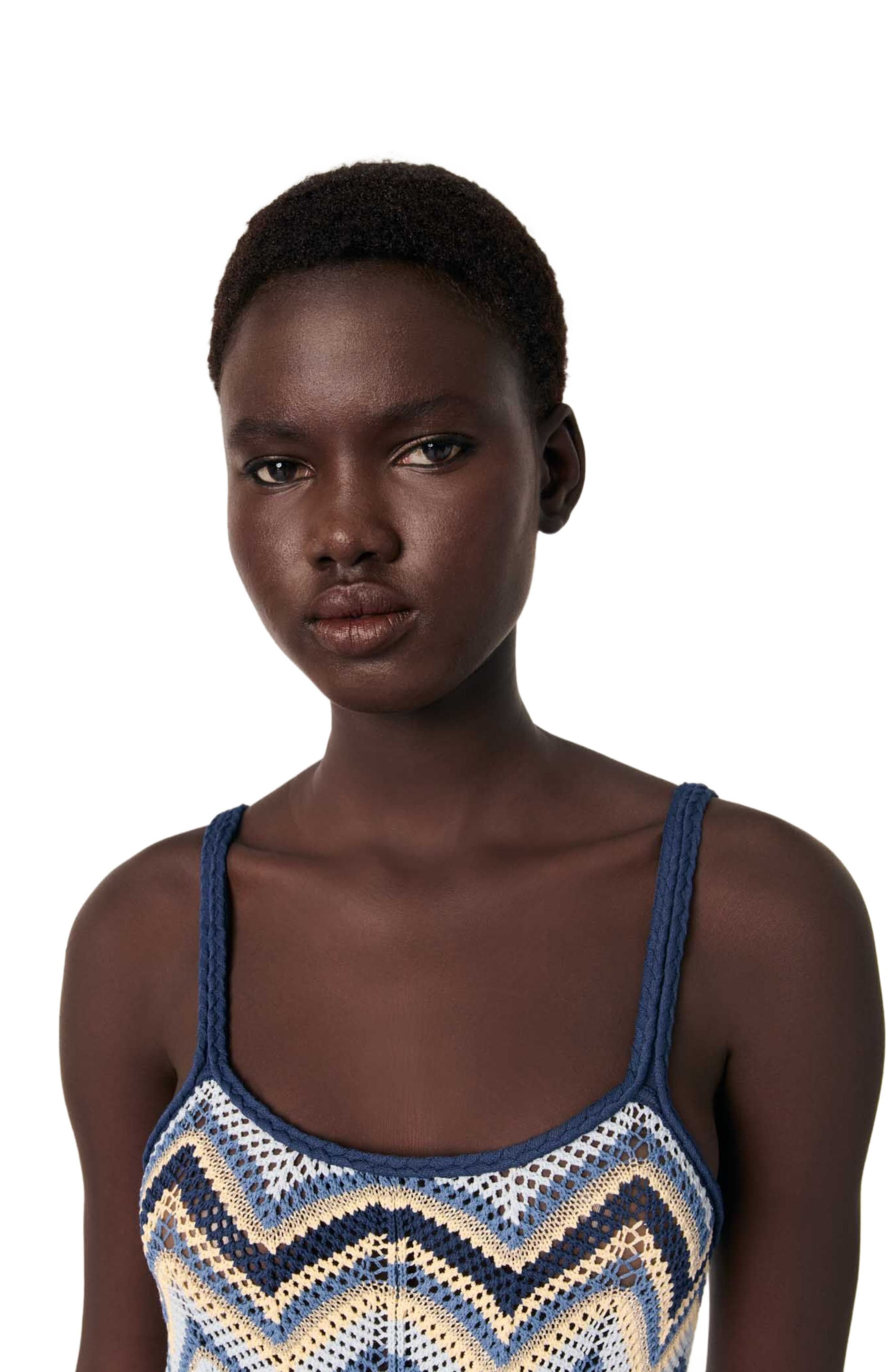 HasSearch:true searchTerm: maje Crochet-knit maxi dress_Blue / Ecru