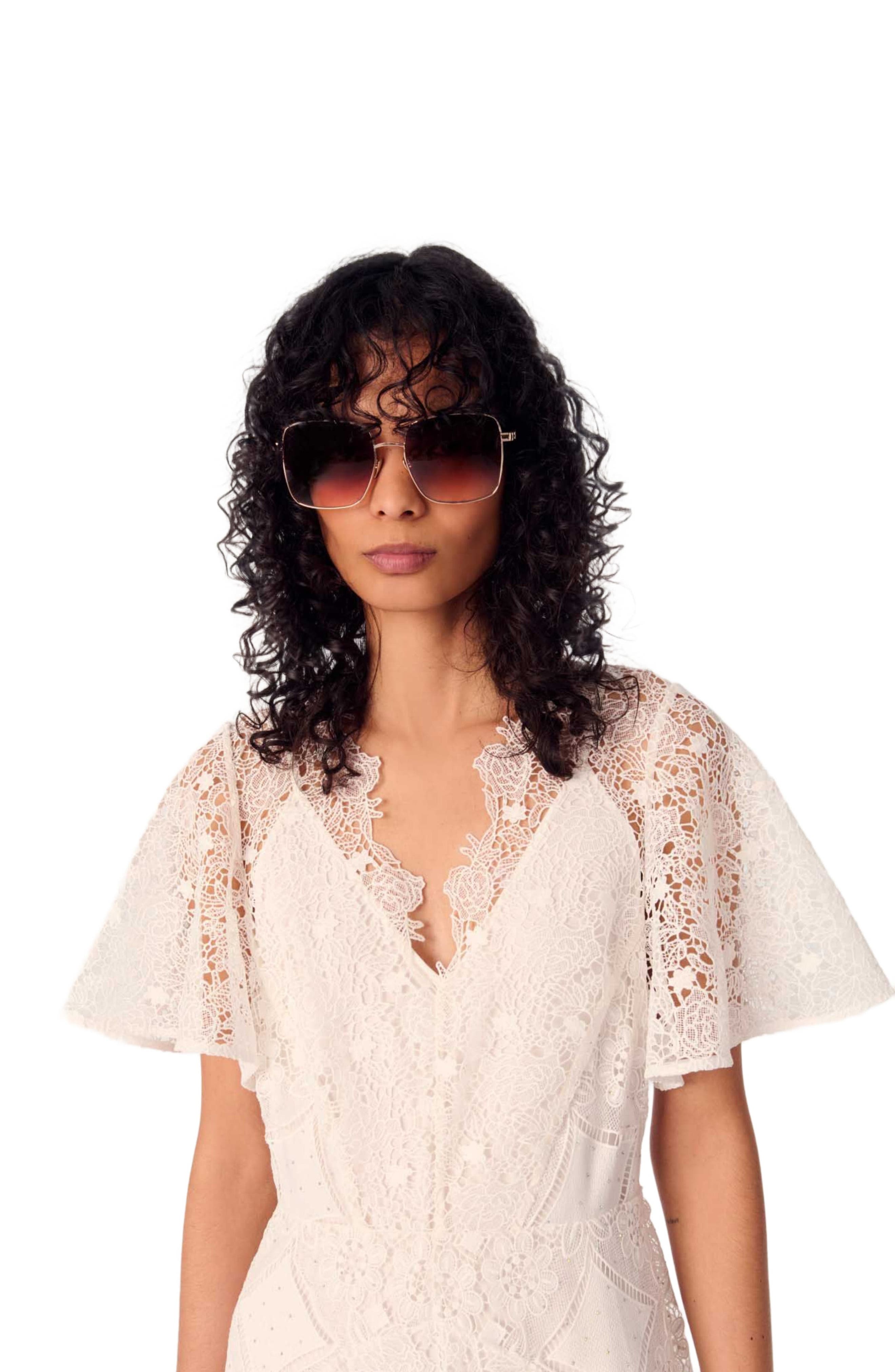 HasSearch:true searchTerm: maje Floral guipure maxi dress_White