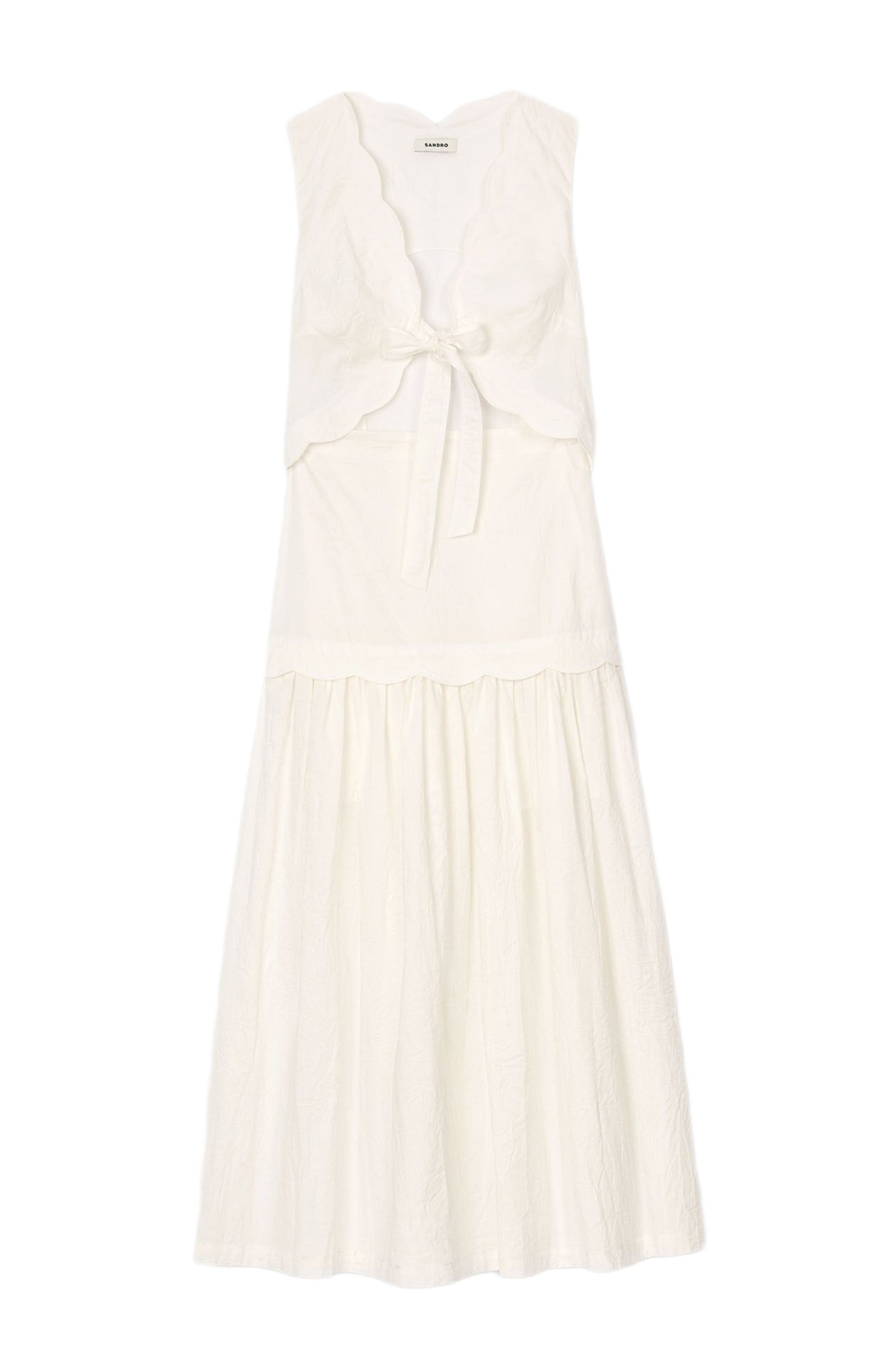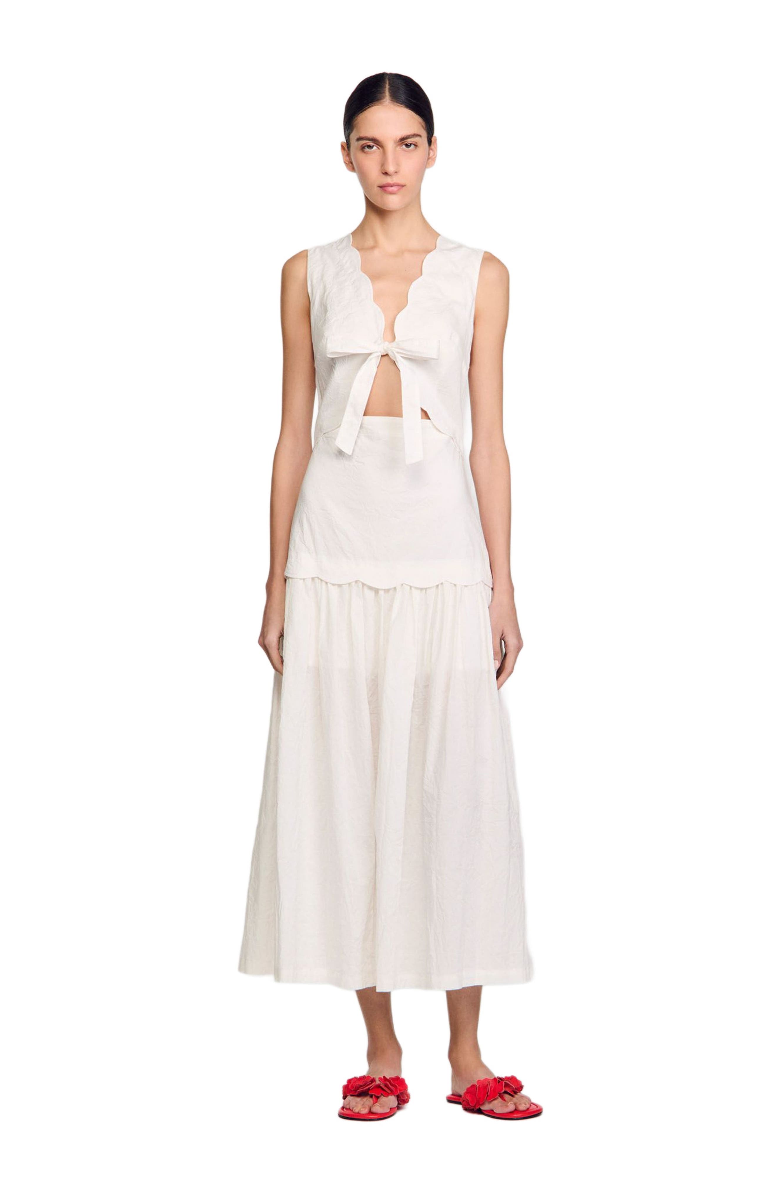 HasSearch:true searchTerm: SANDRO Crinkled maxi dress with bow_Ecru
