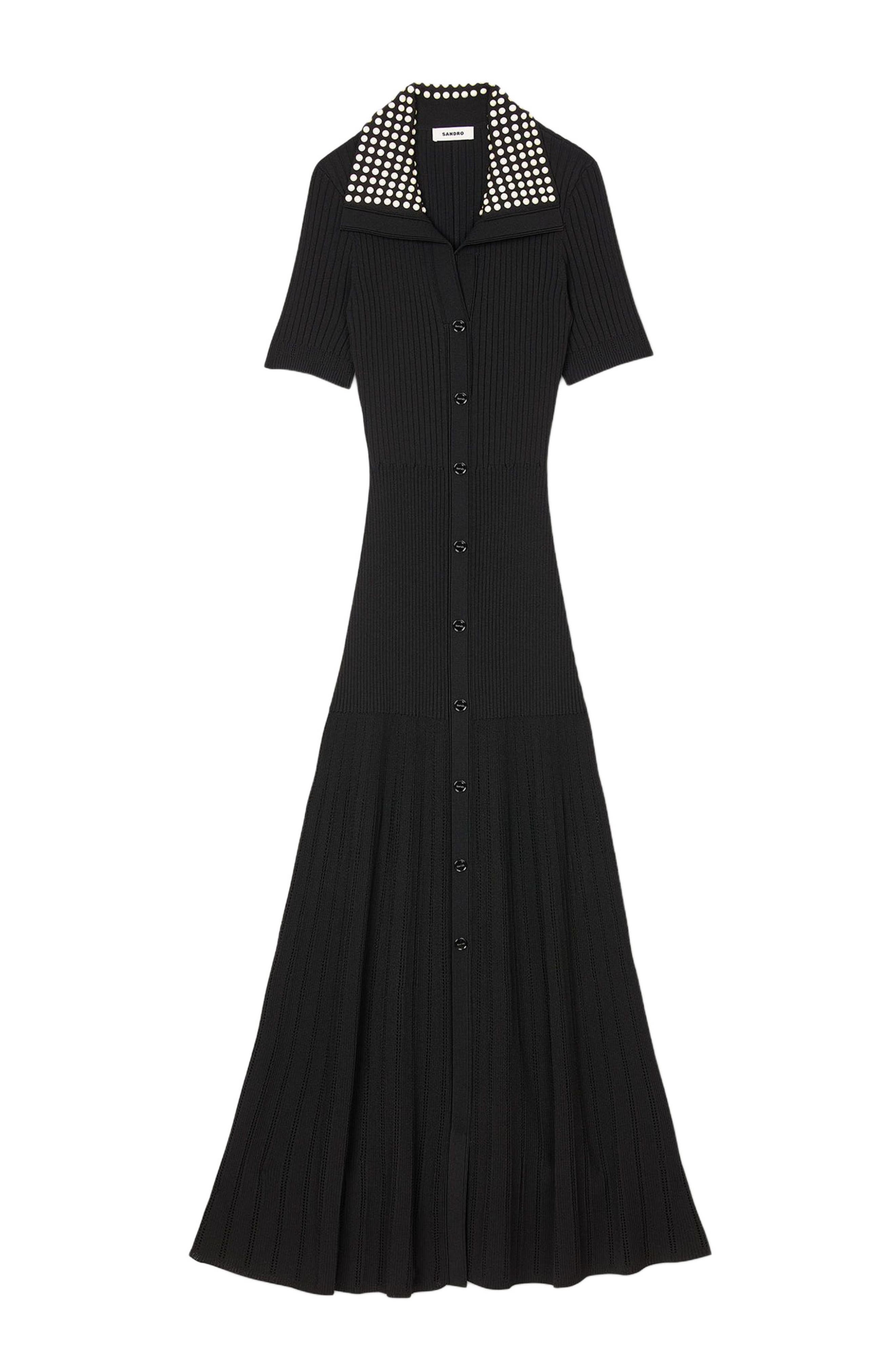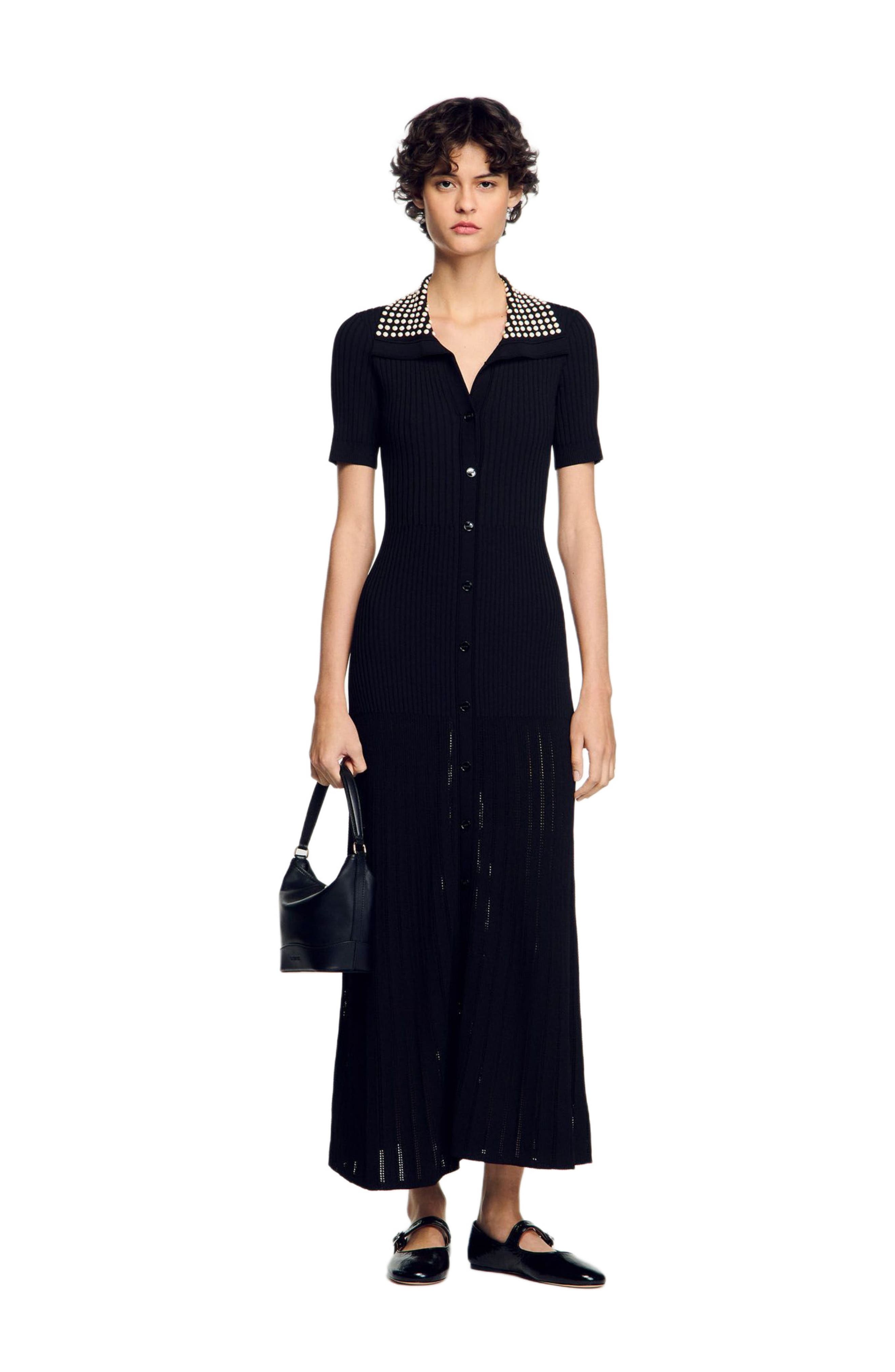 SANDRO Knit maxi dress with studs_Black