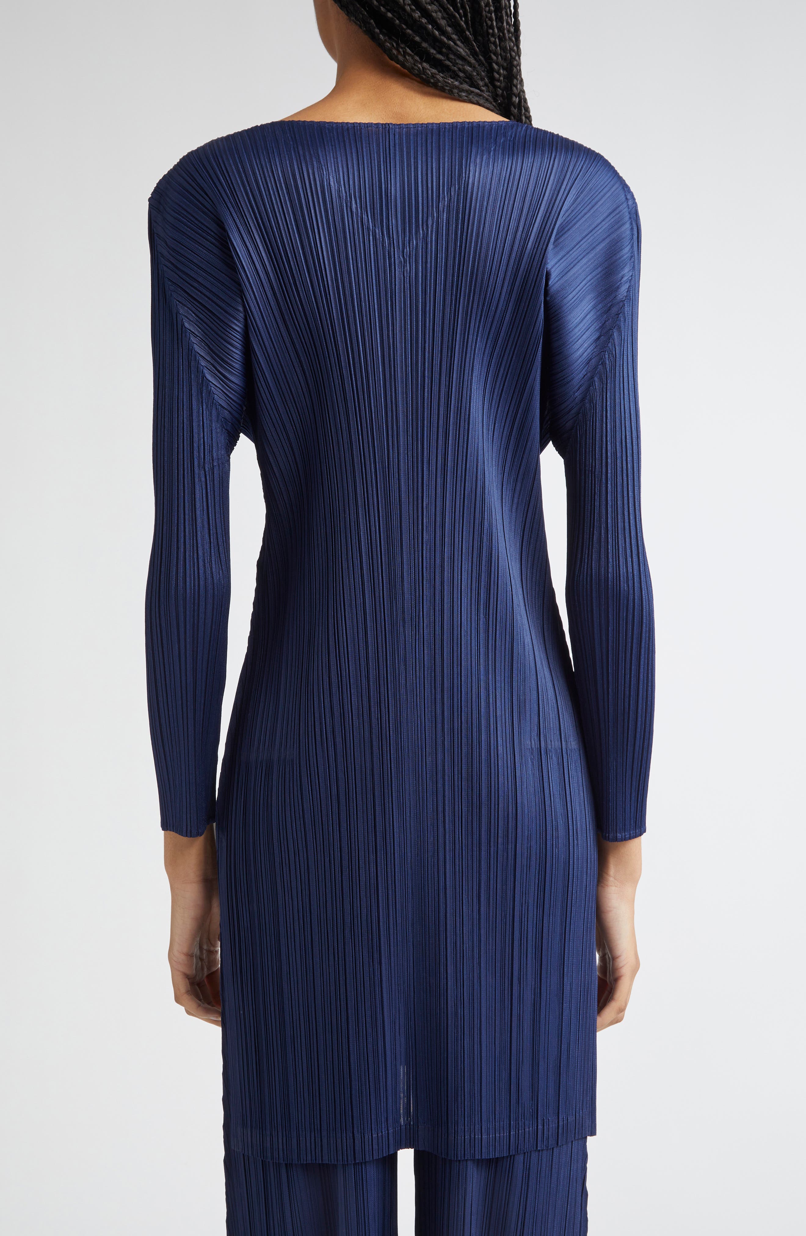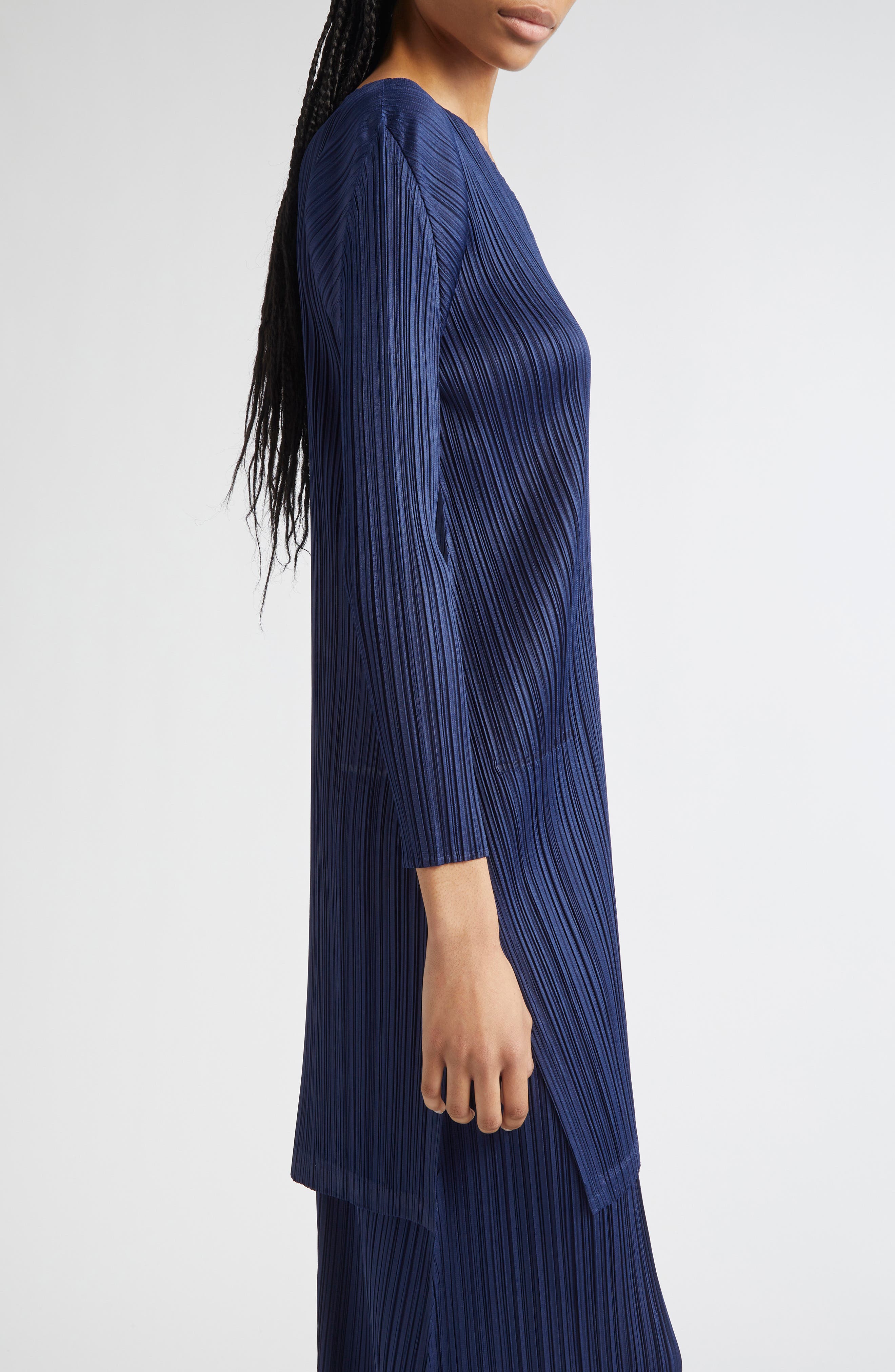 Pleats Please Issey Miyake Monthly Colors February Pleated Long Sleeve Minidress_Navy