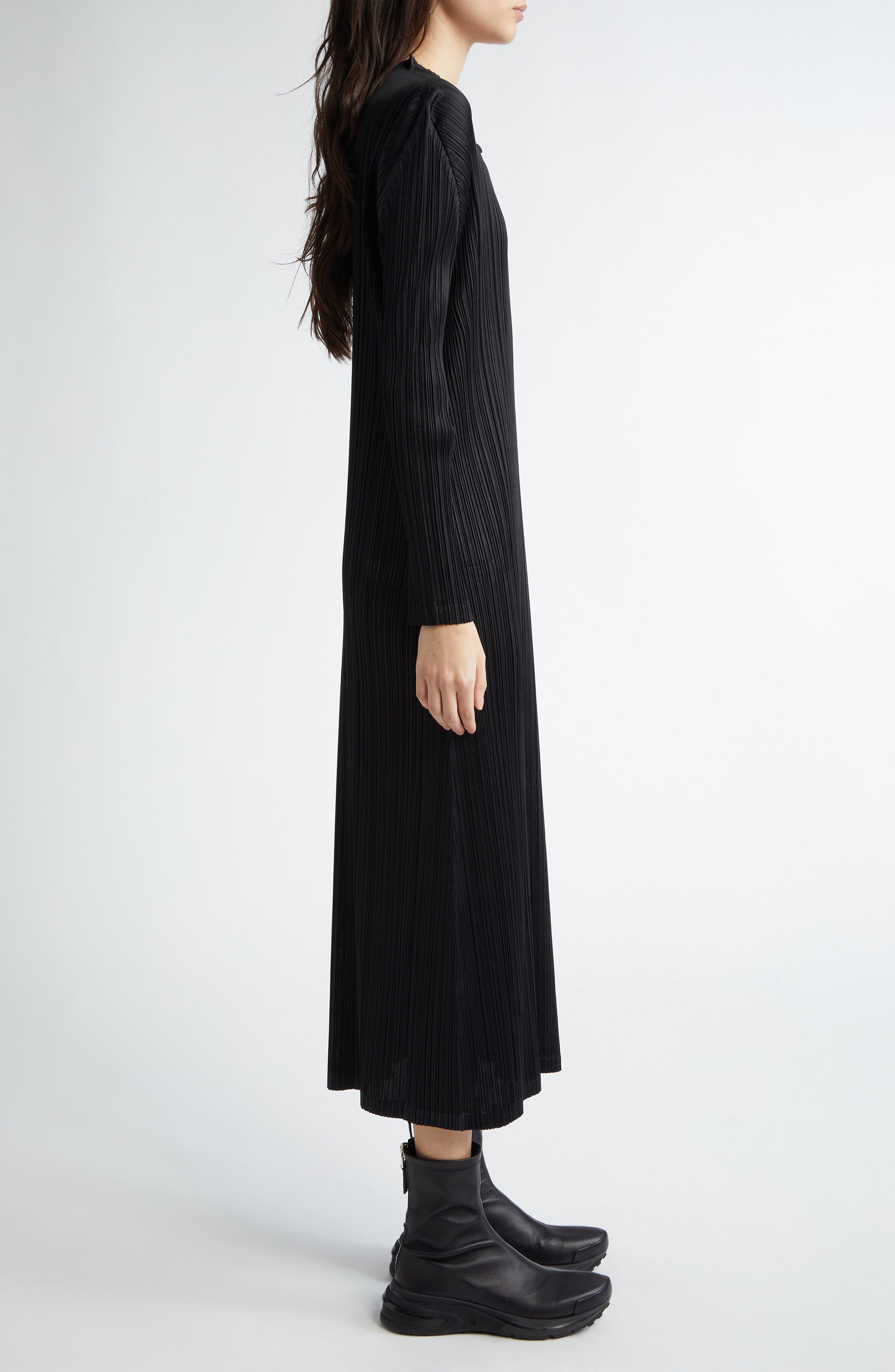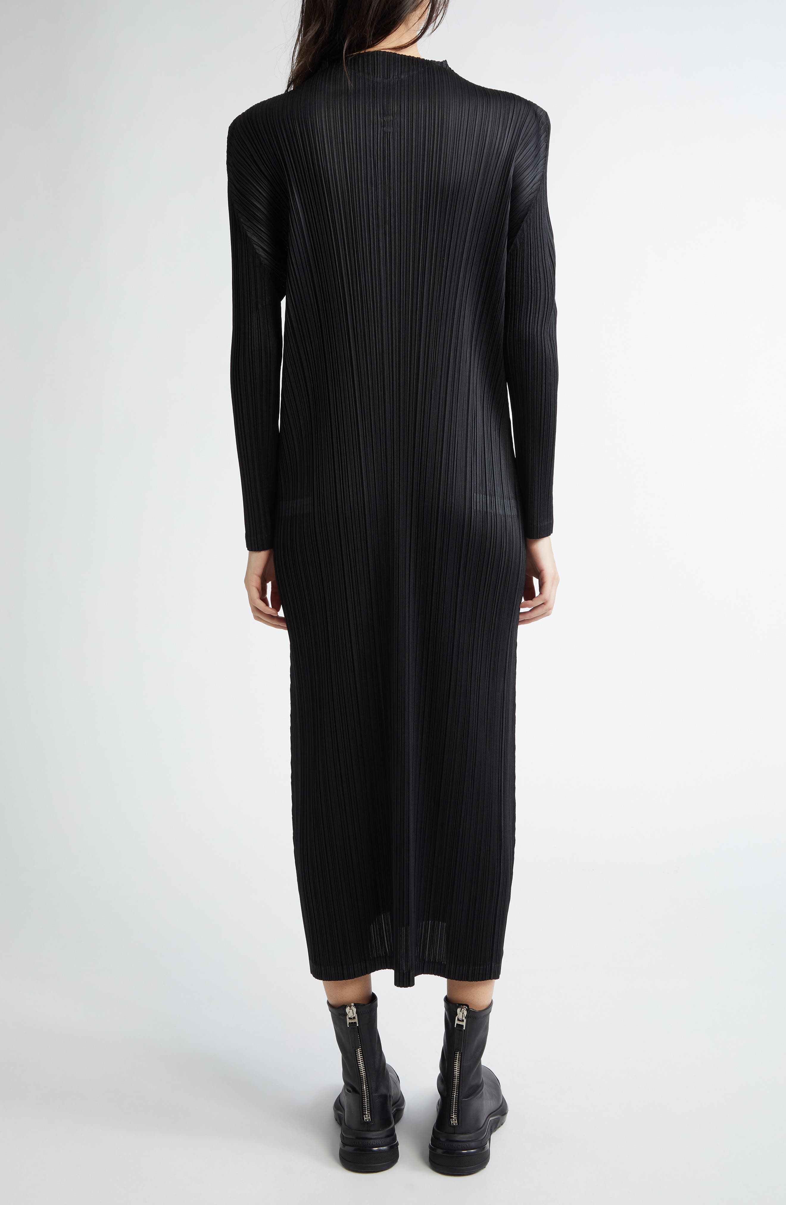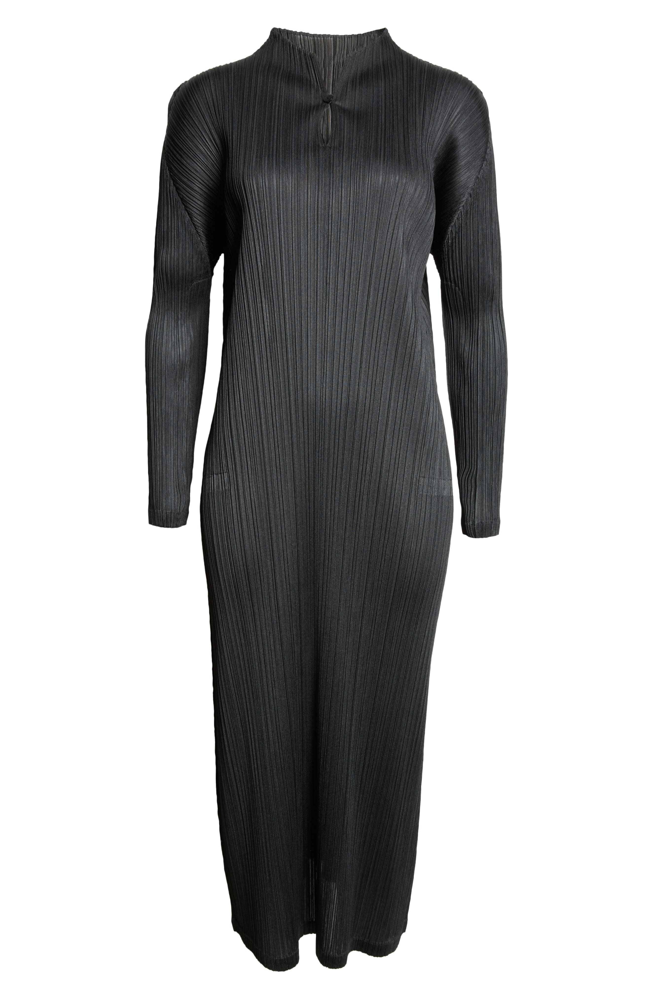 Pleats Please Issey Miyake Monthly Colors January Pleated Long Sleeve Dress_Black