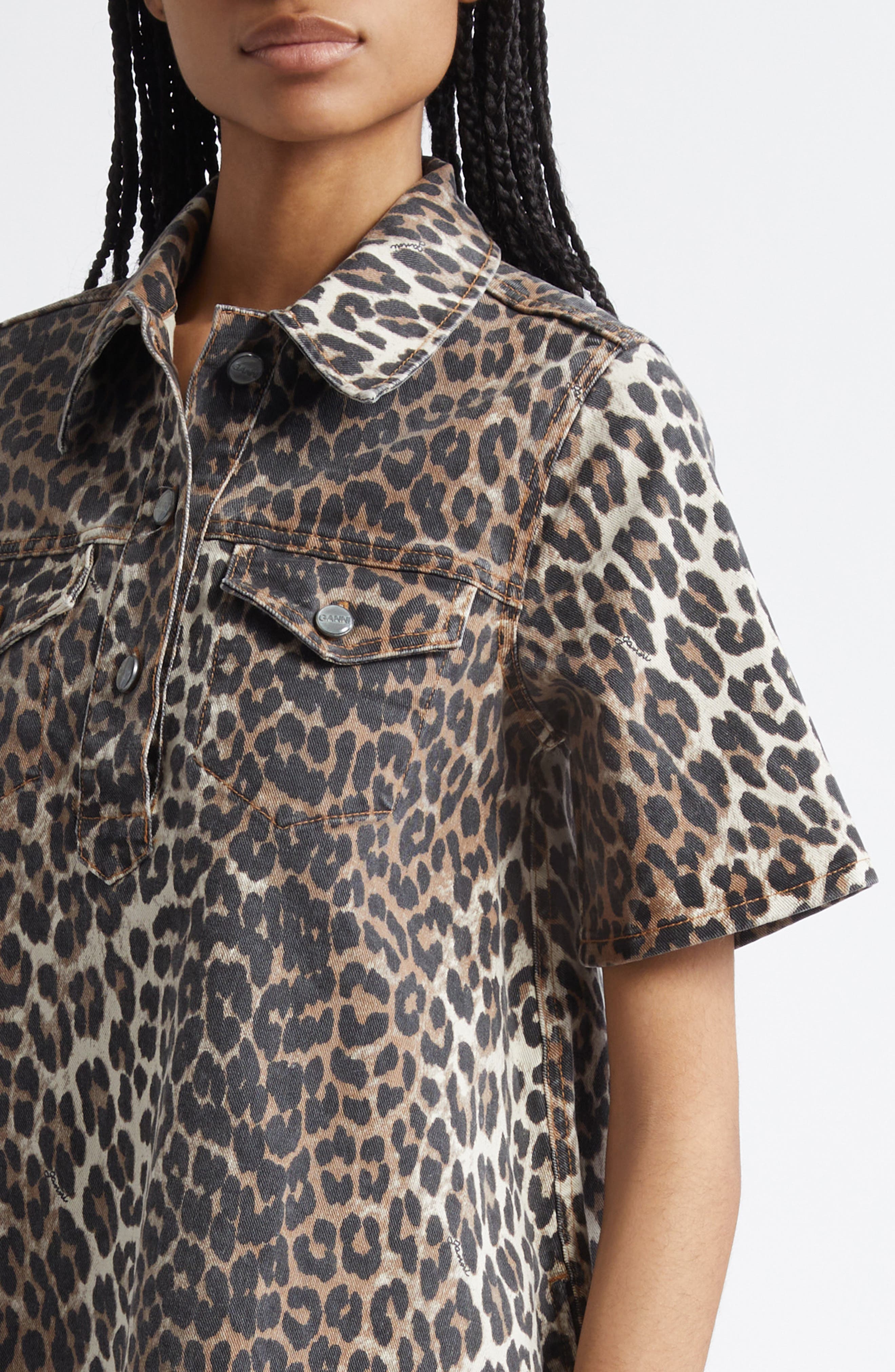 Ganni Leopard Stretch Organic Cotton Denim Minidress_Leopard