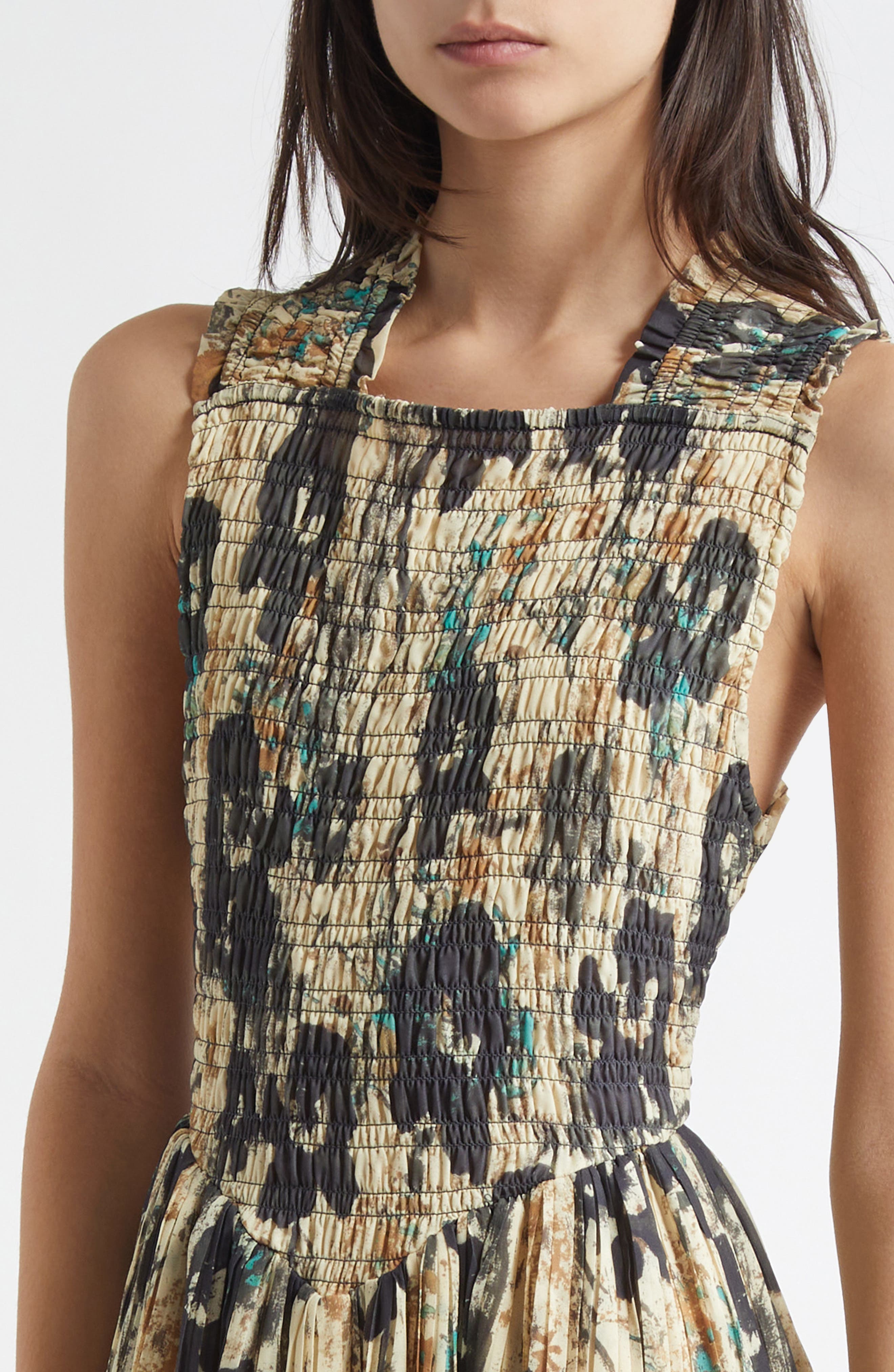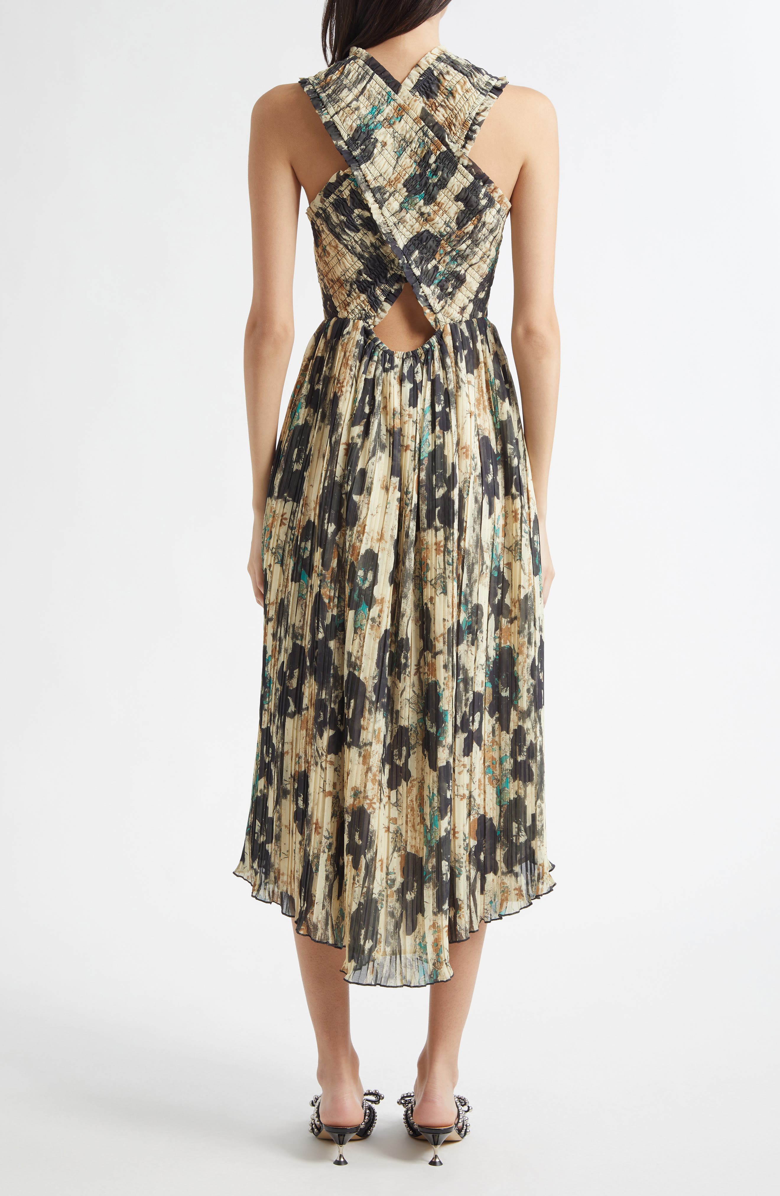 Ganni Floral Print Smocked & Pleated Midi Dress_Afterglow