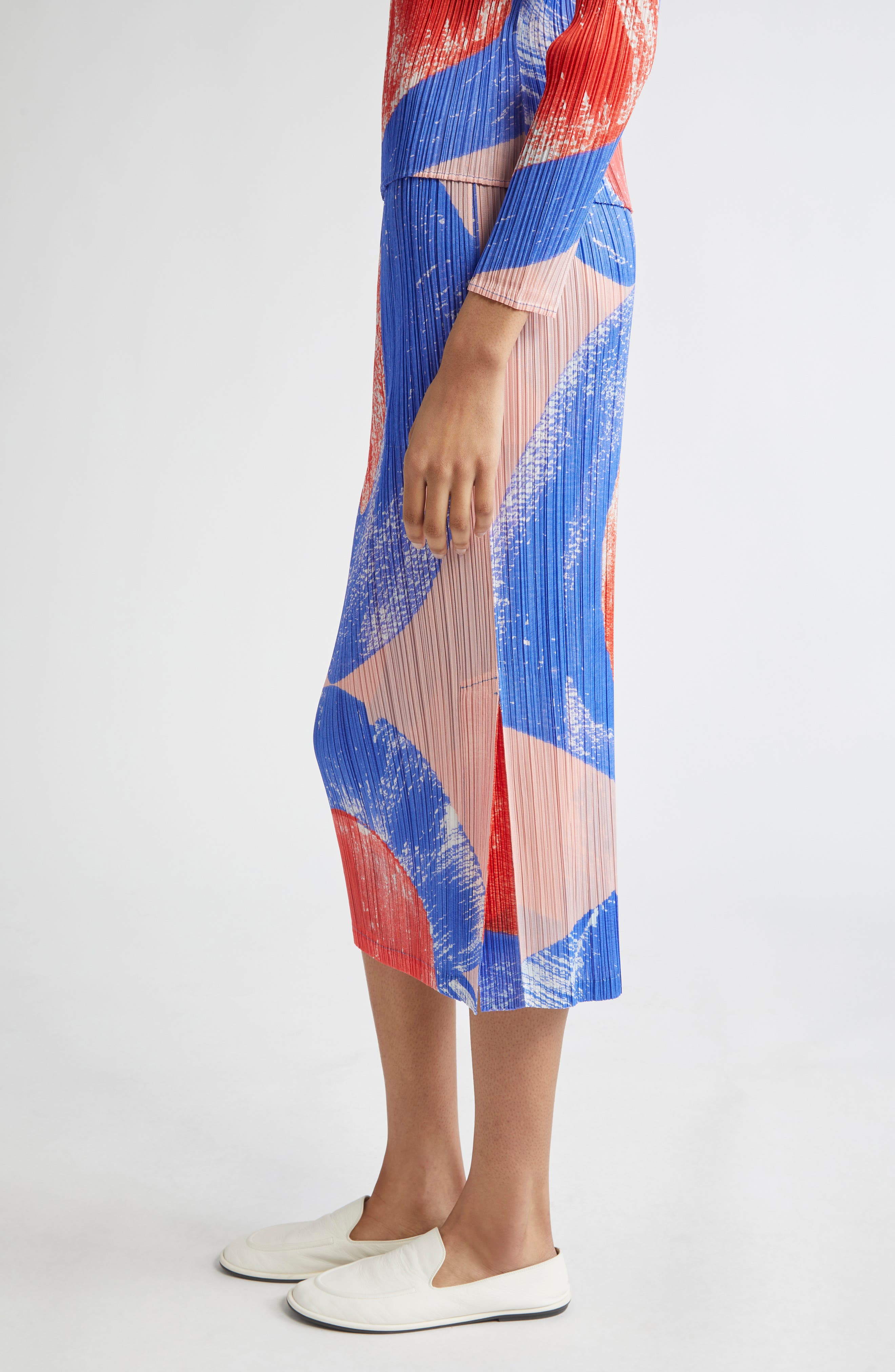Pleats Please Issey Miyake Backlight Pleated Midi Skirt_Red