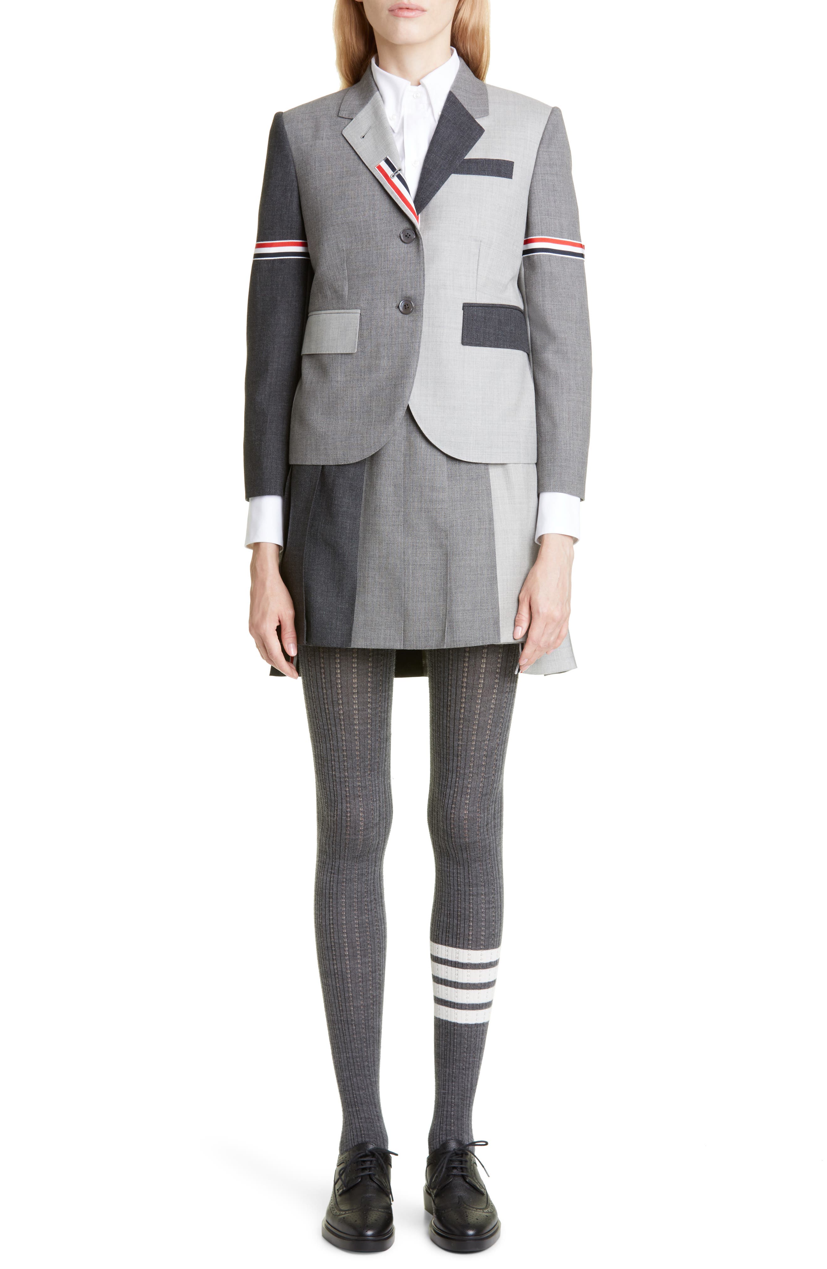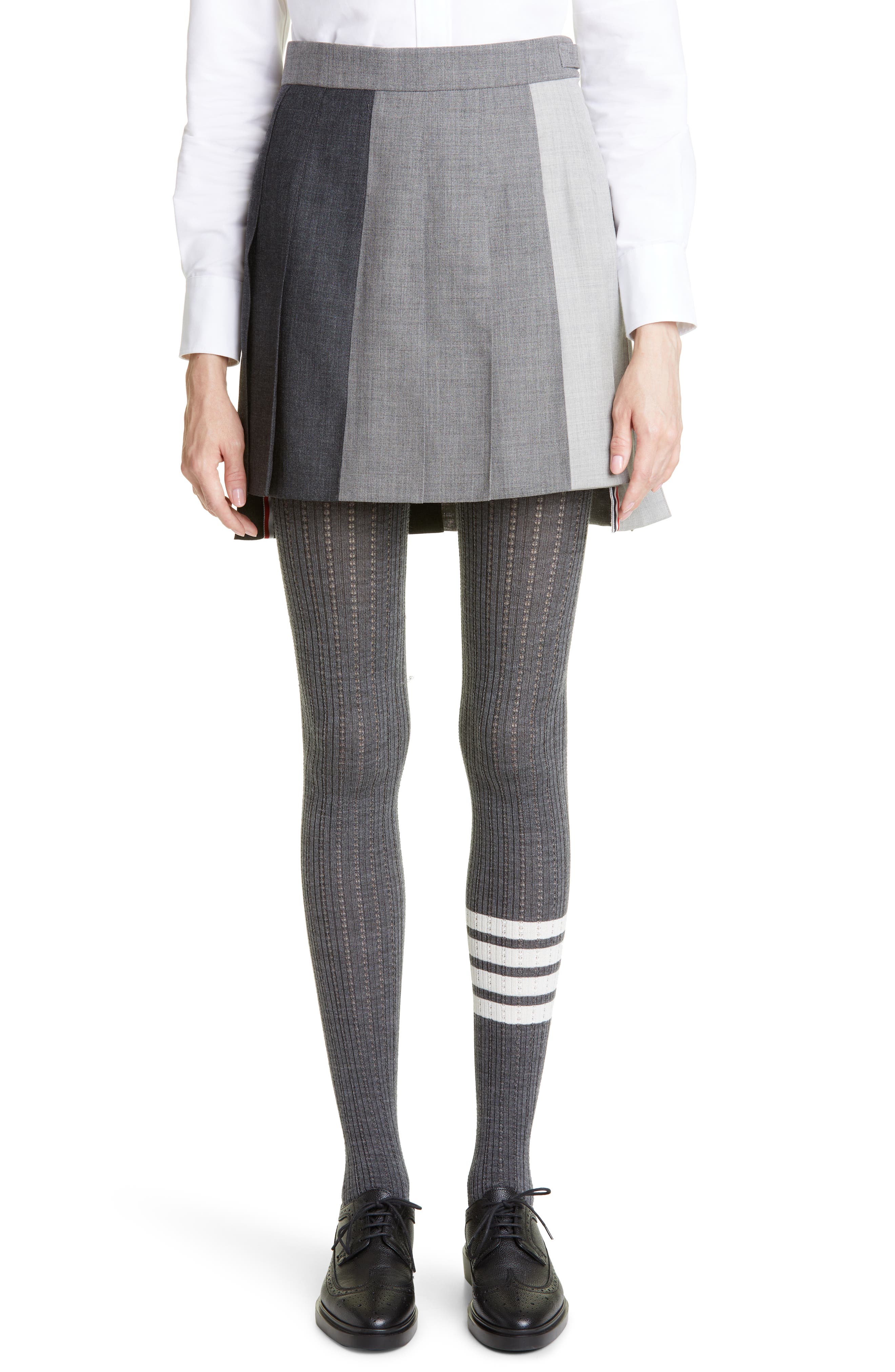 Thom Browne Colorblock Pleated Wool Miniskirt_Dark Grey 025