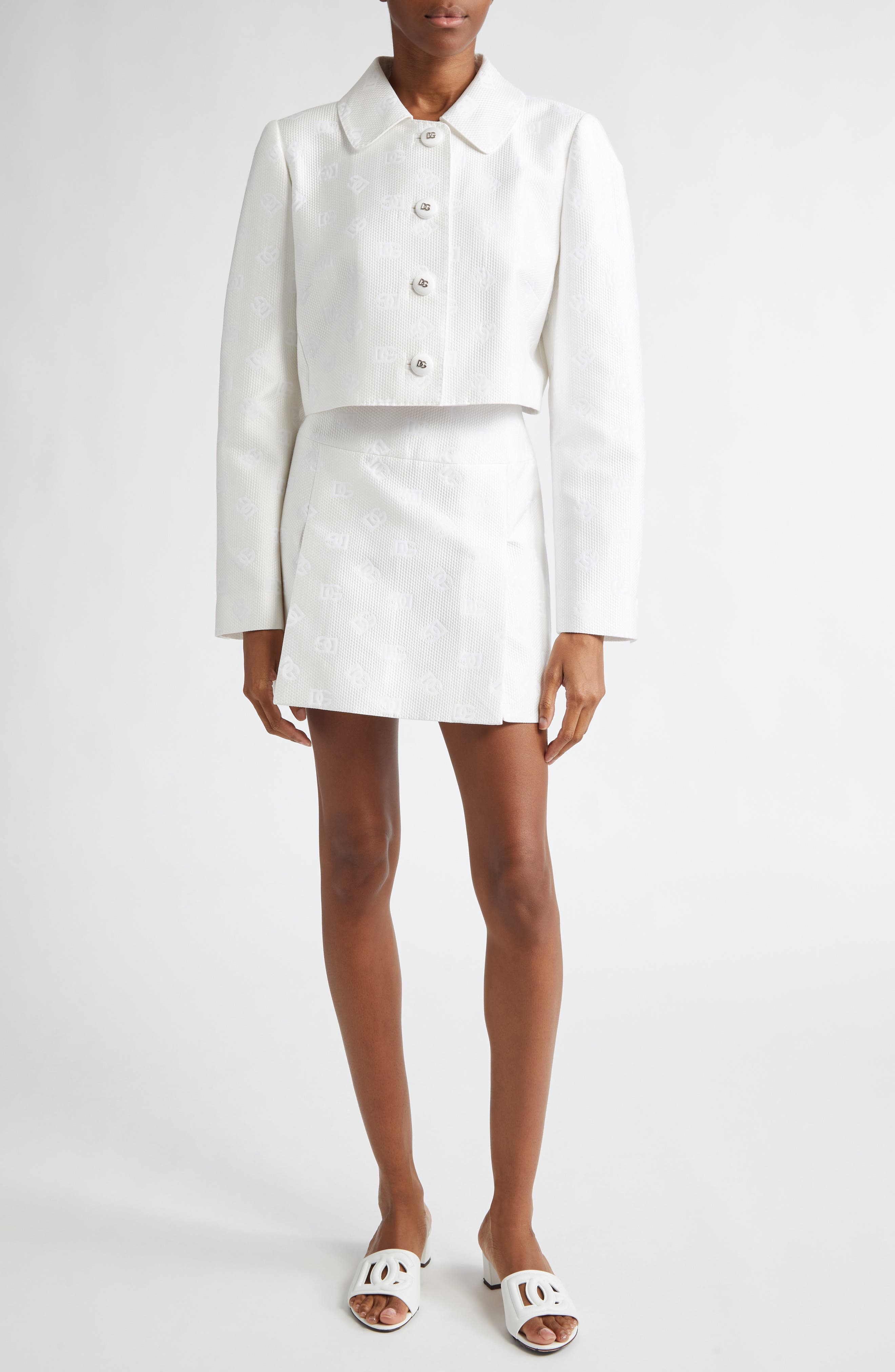 Dolce&Gabbana Monogram Jacquard A-Line Miniskirt_White