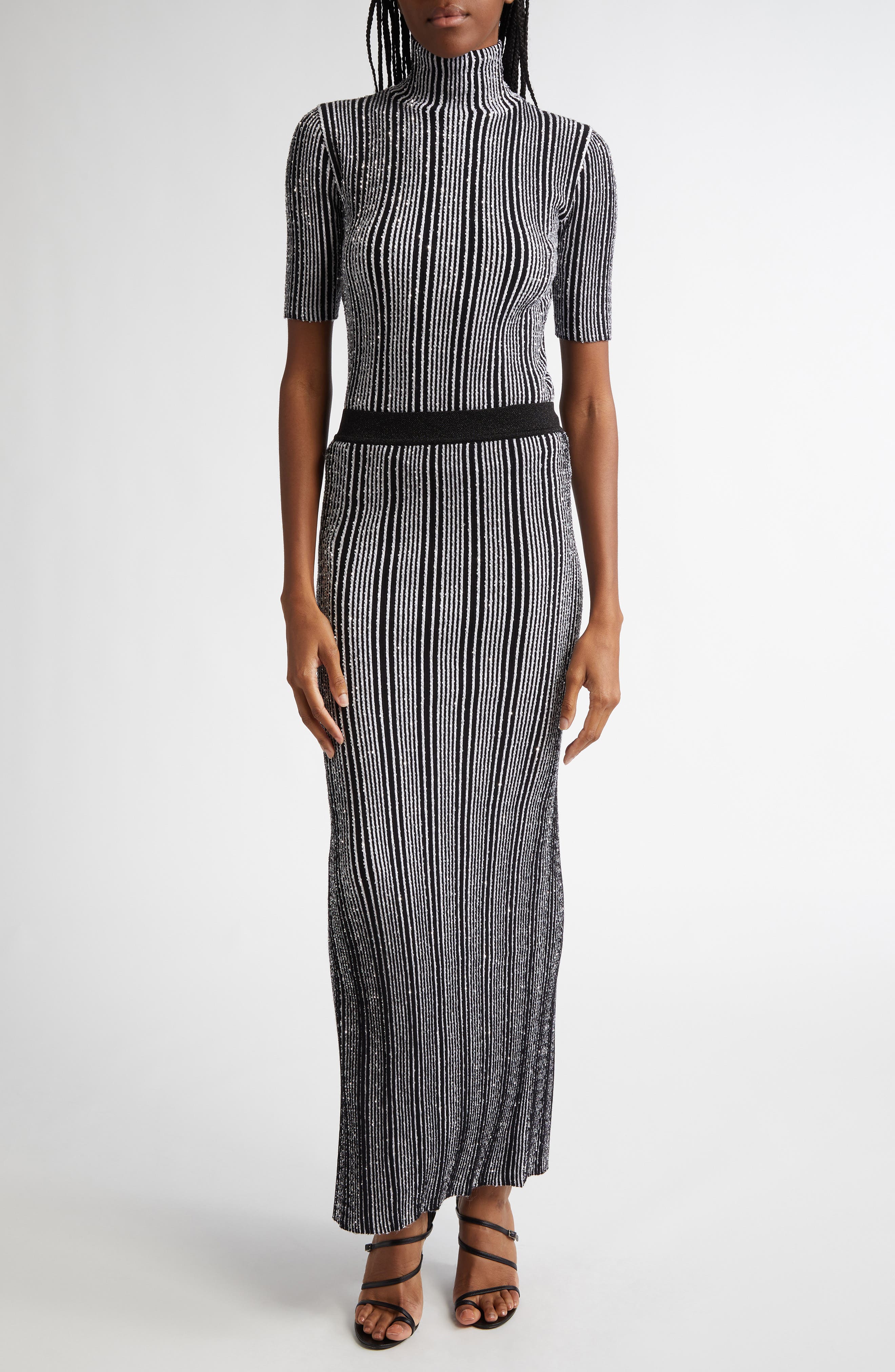 Missoni Shimmer Sequin Stripe Maxi Skirt_White And Black