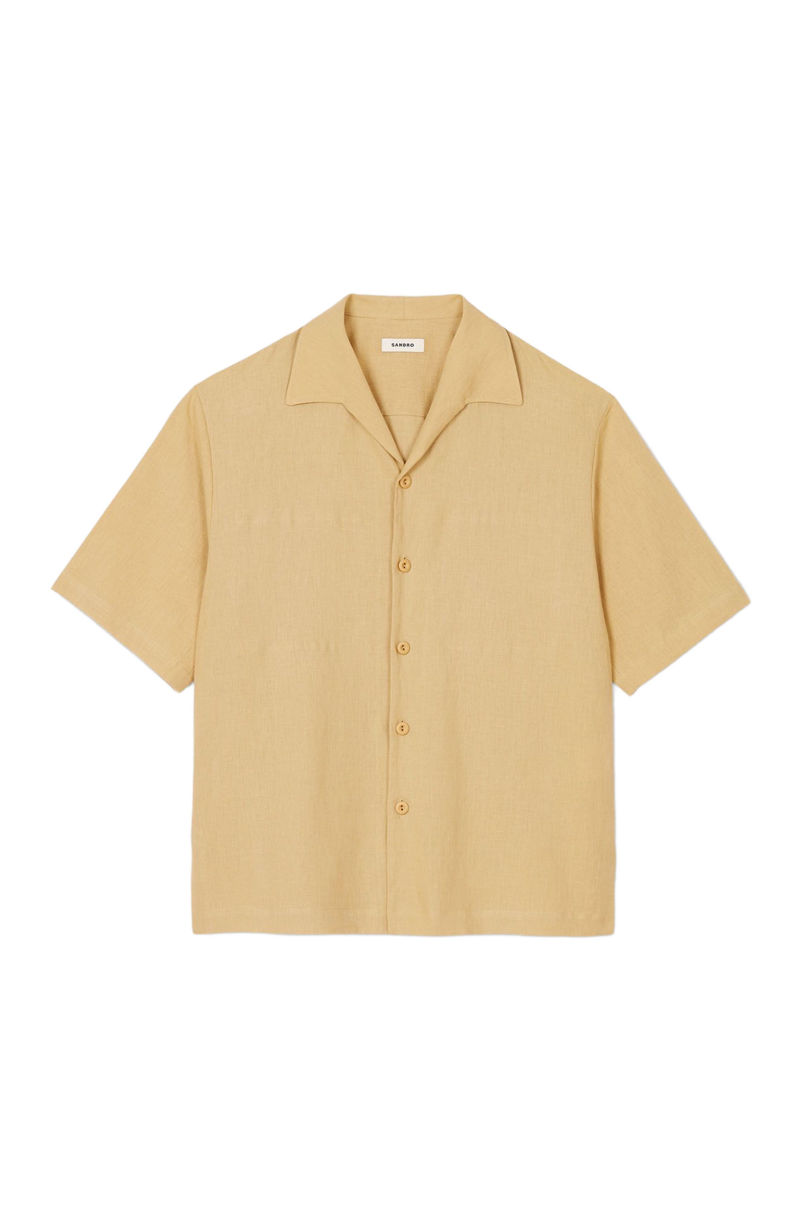 SANDRO Cotton and linen shirt_Nut