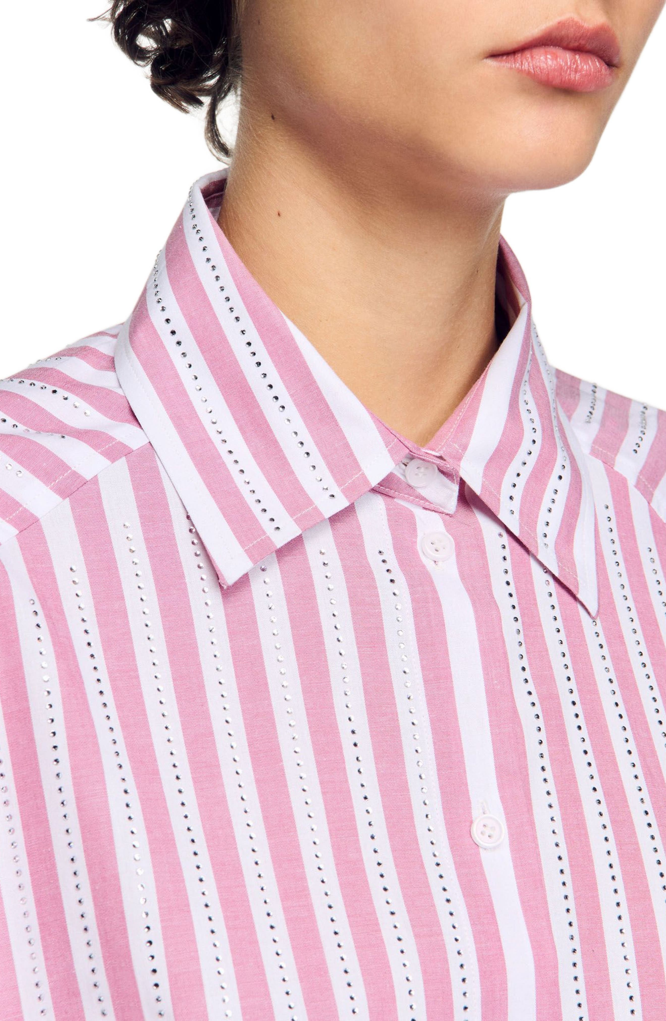 SANDRO Striped rhinestone shirt_Pink