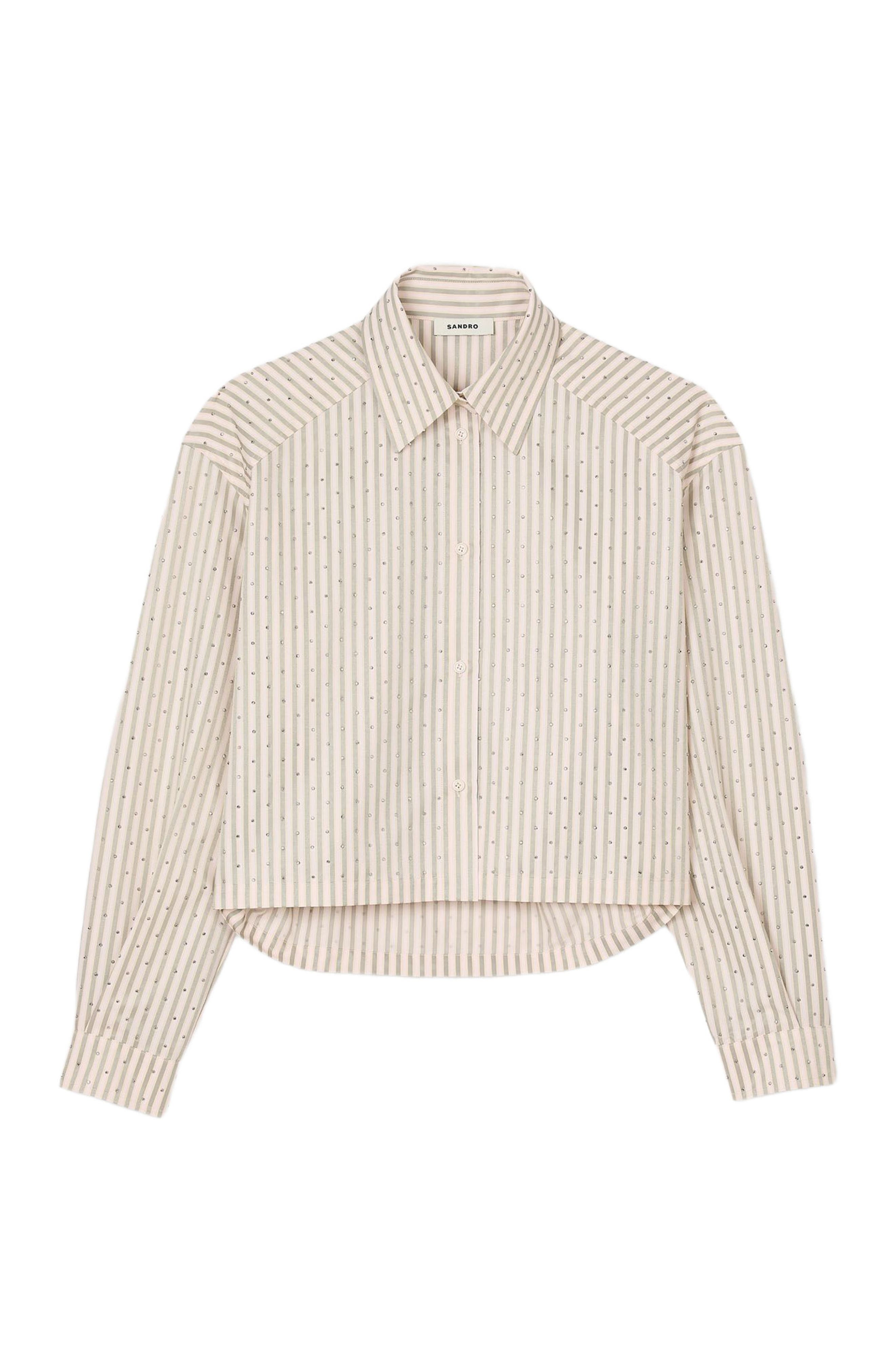 SANDRO Striped rhinestone shirt_Khaki / Pink