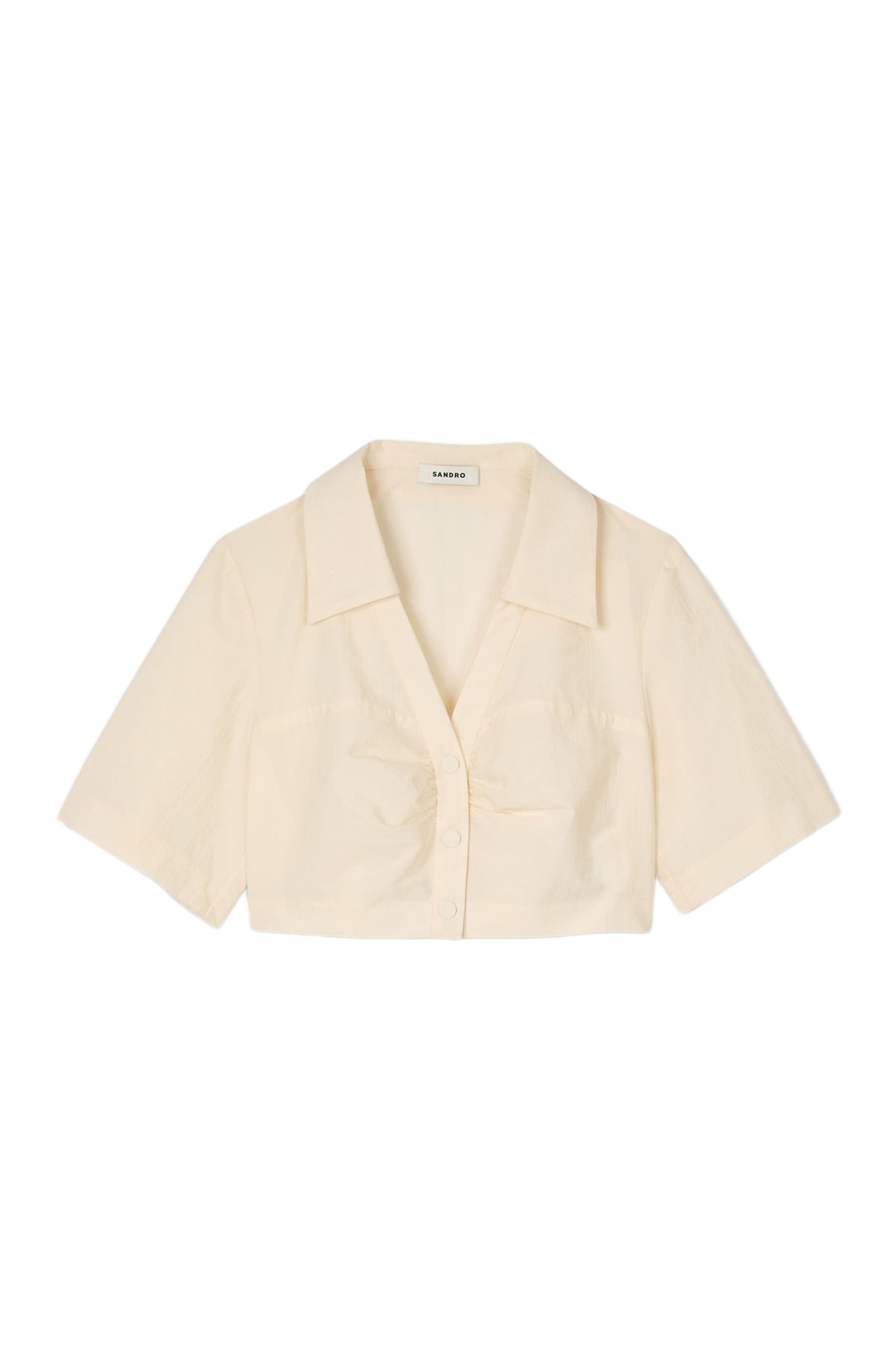 SANDRO Cropped gathered shirt_Ecru