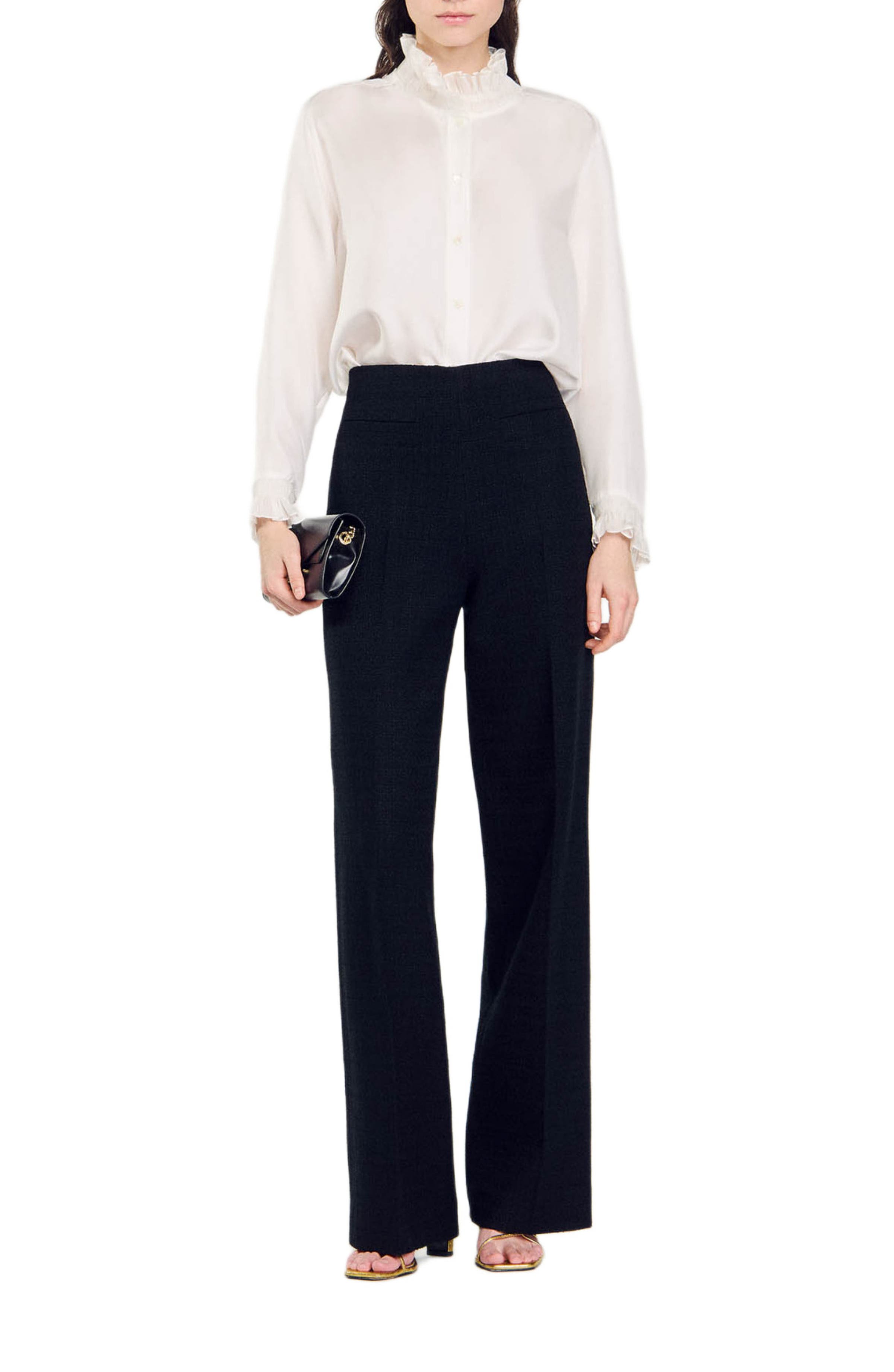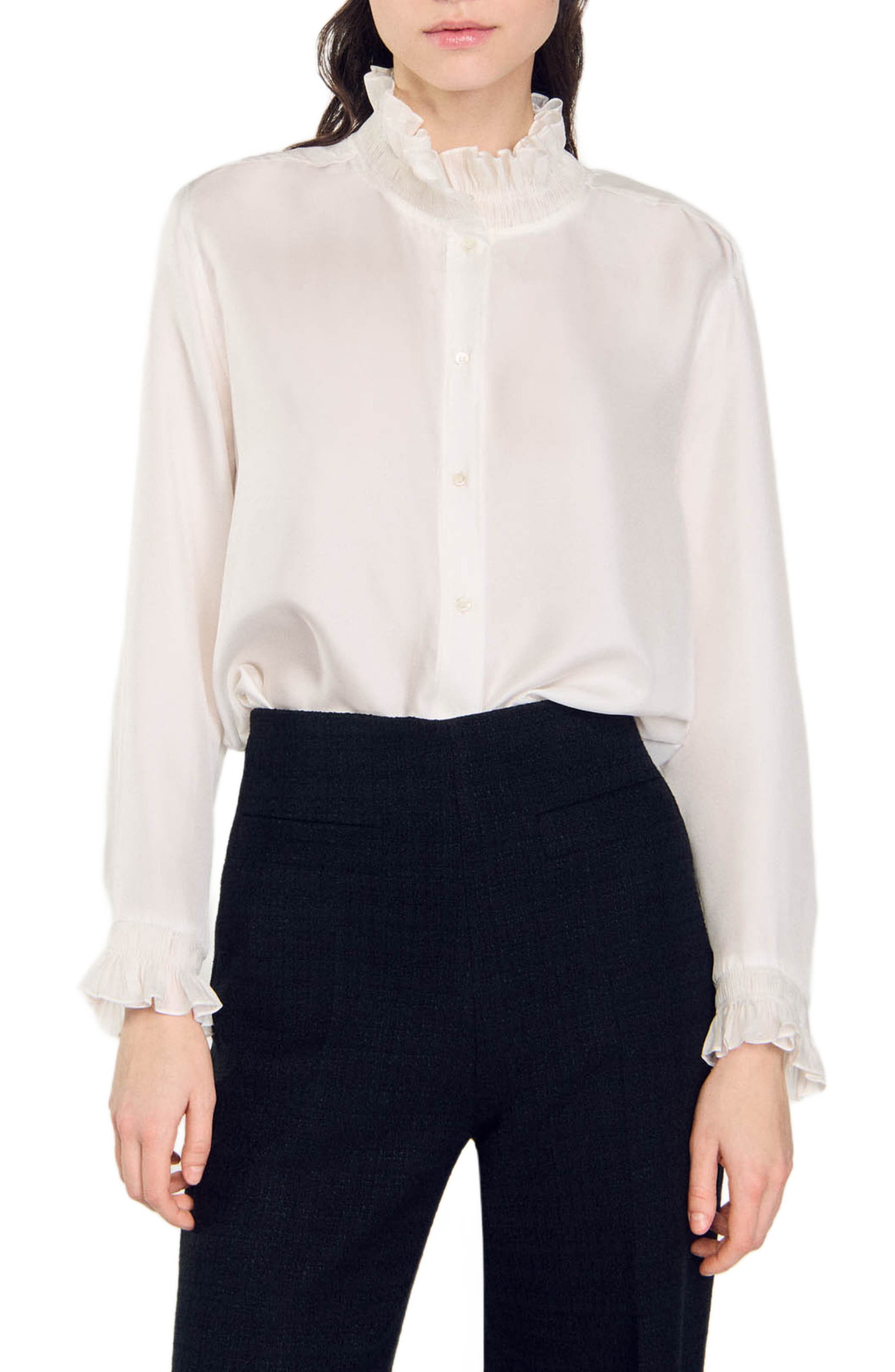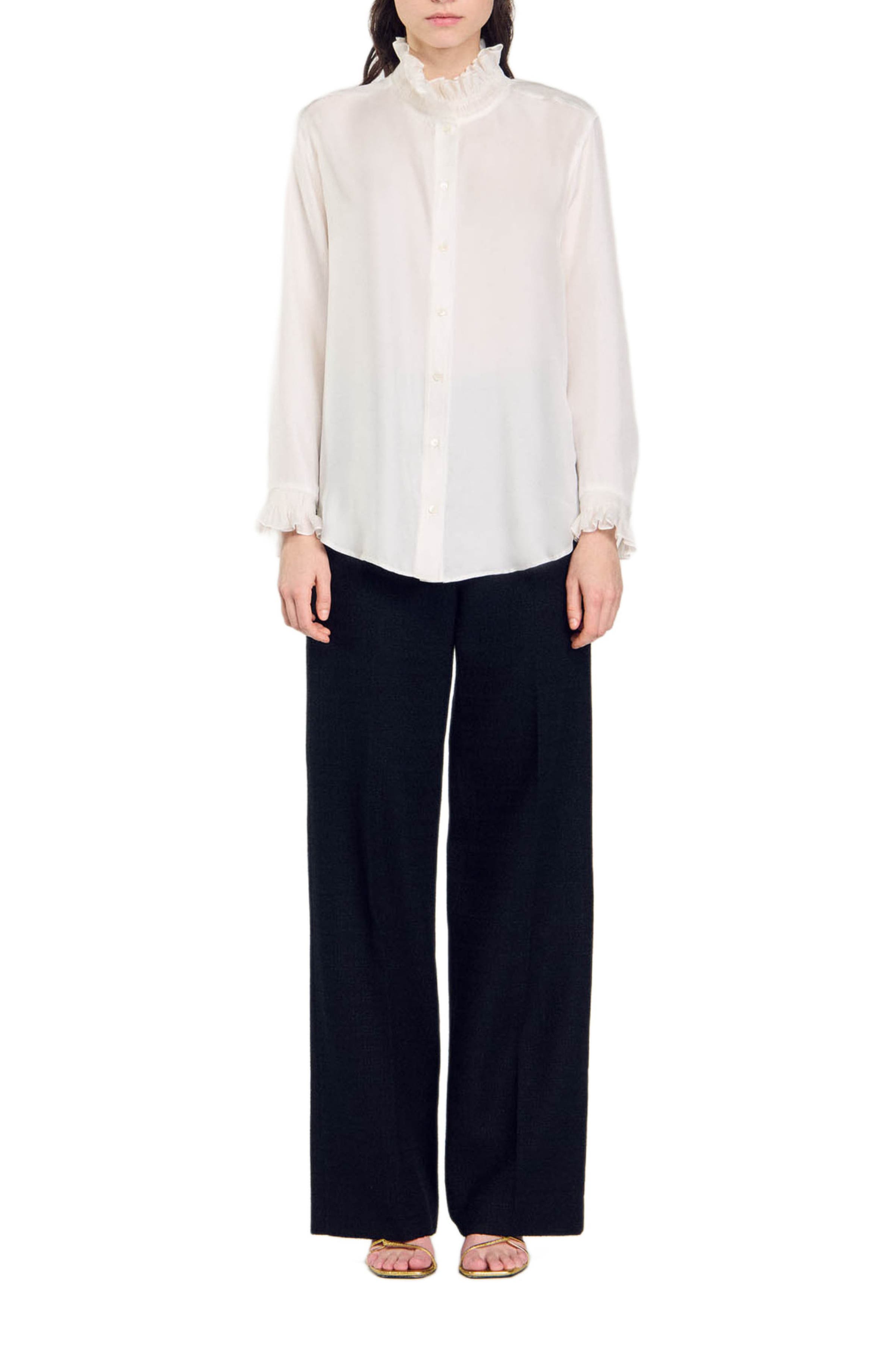 SANDRO Silk shirt with gathered collar_Ecru