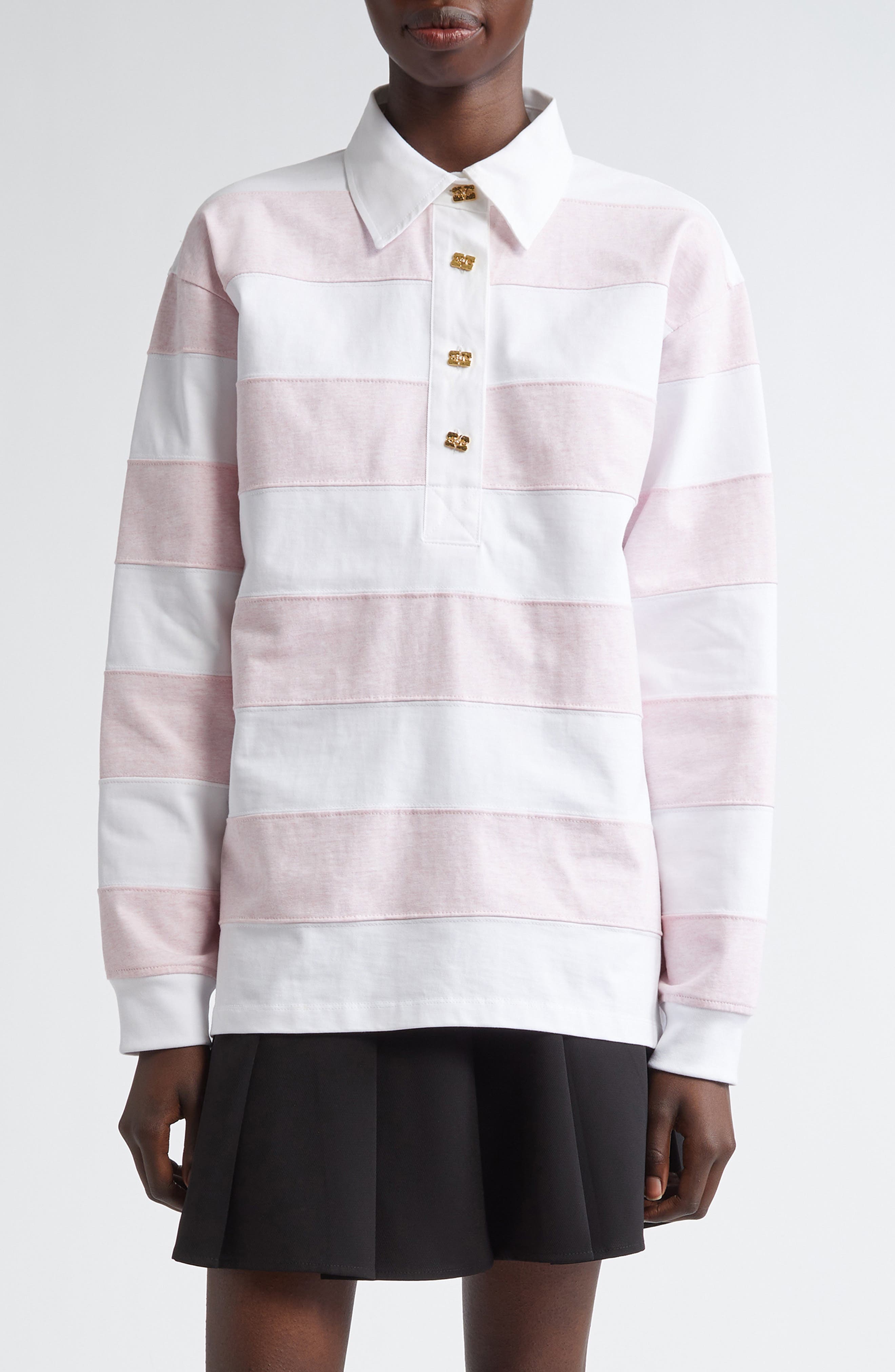 Ganni Stripe Organic Cotton Rugby Shirt_Mauve Chalk