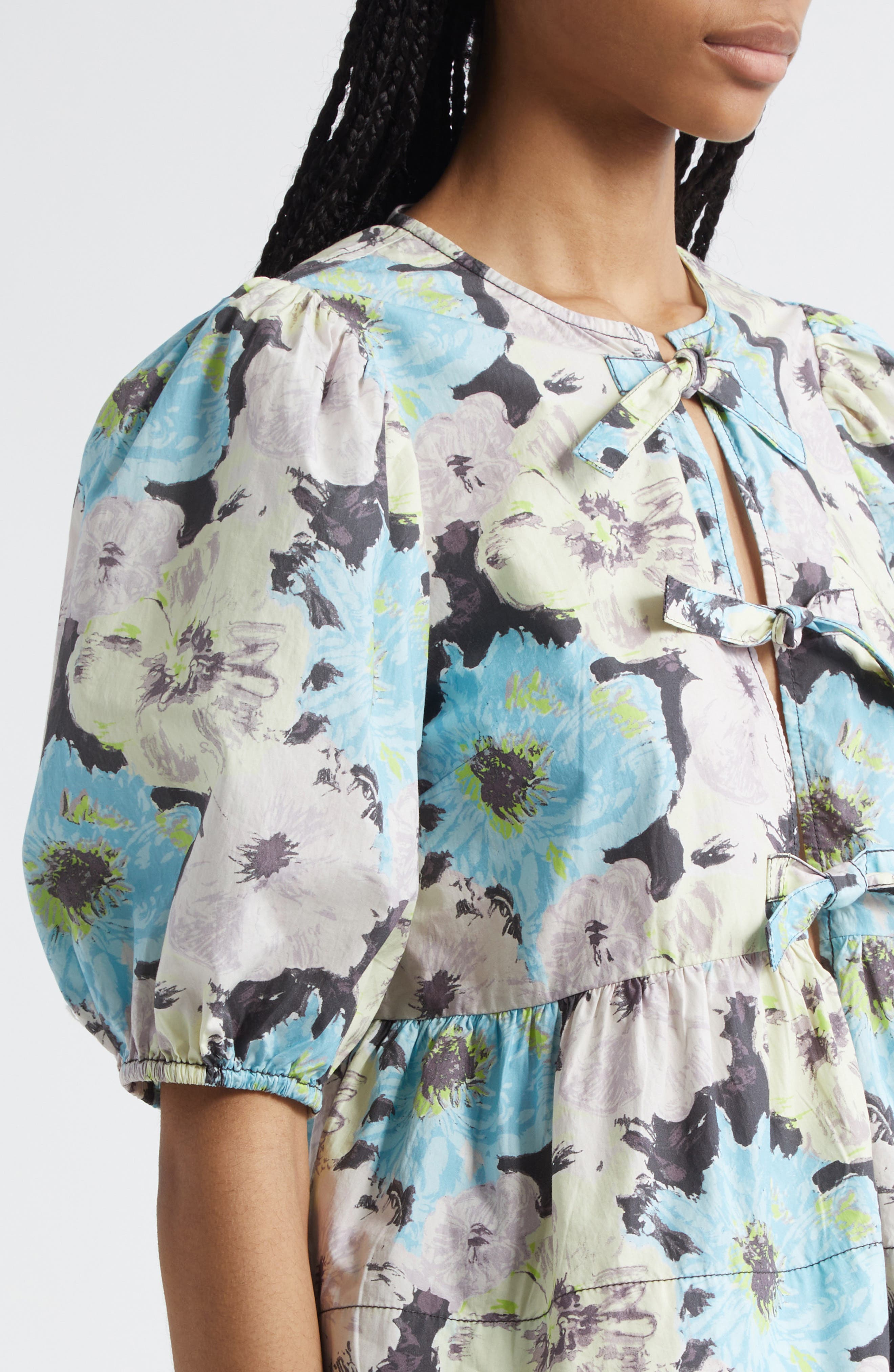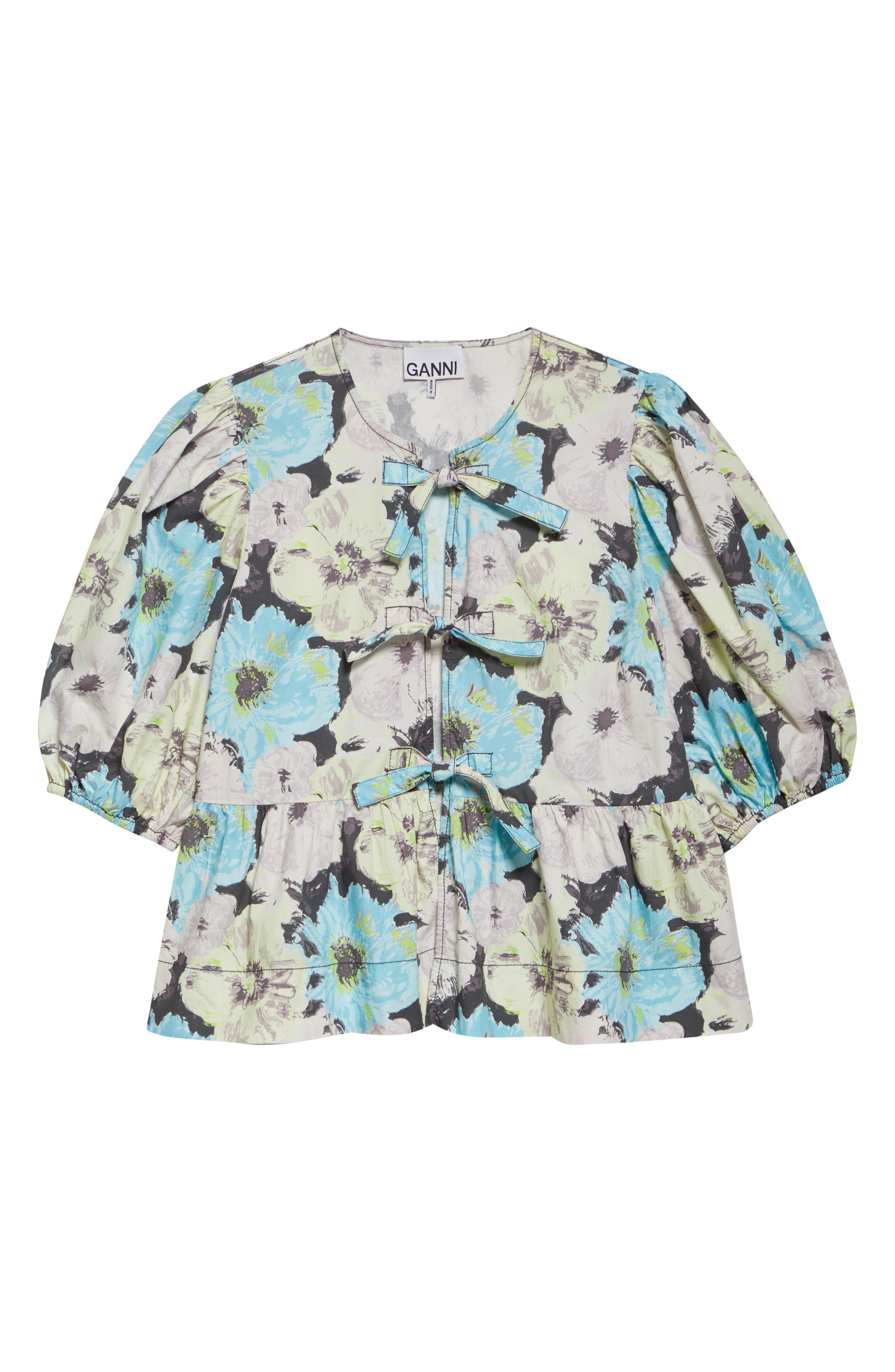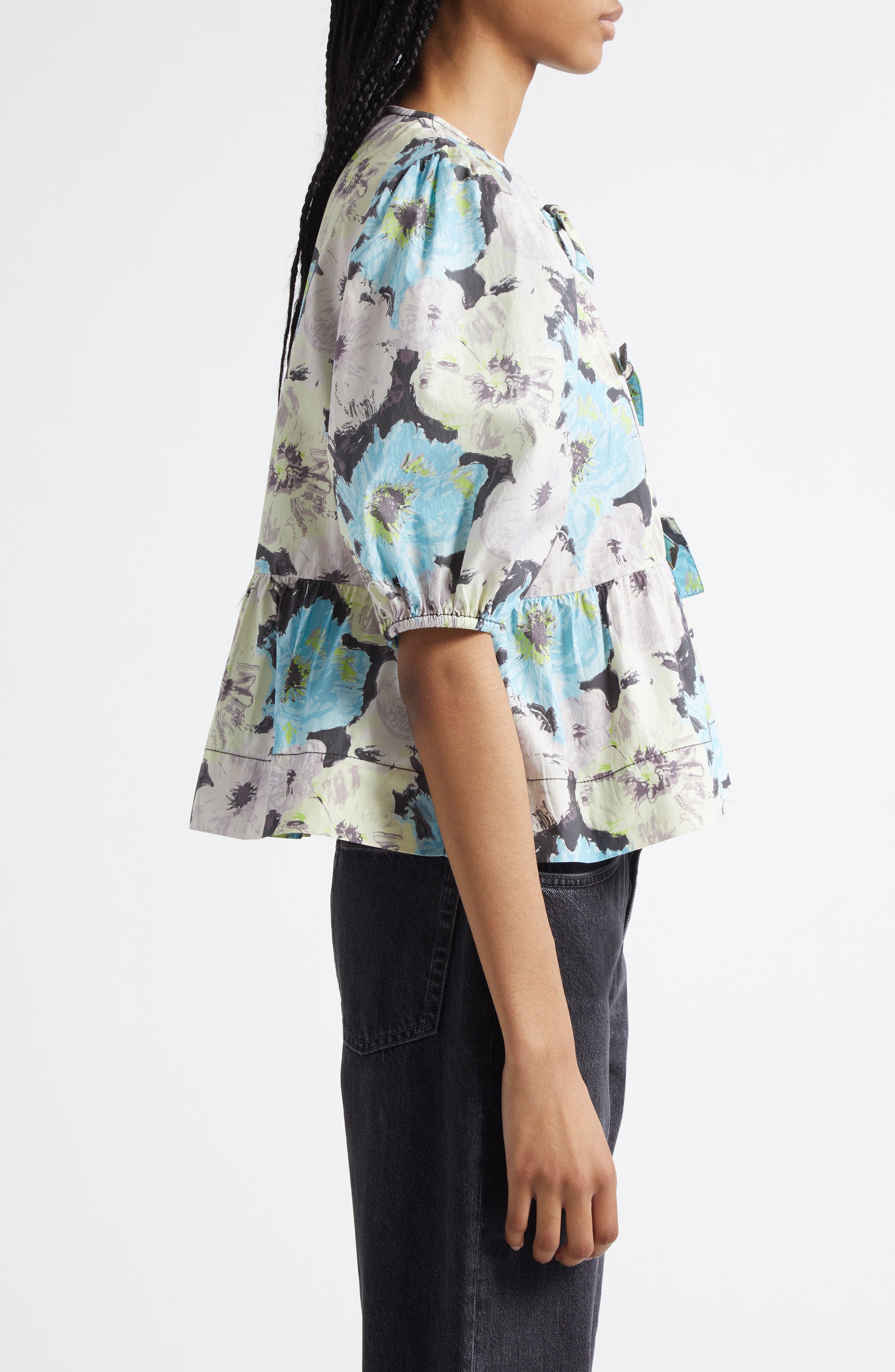 Ganni Print Puff Sleeve Peplum Organic Cotton Top_White Multicolor