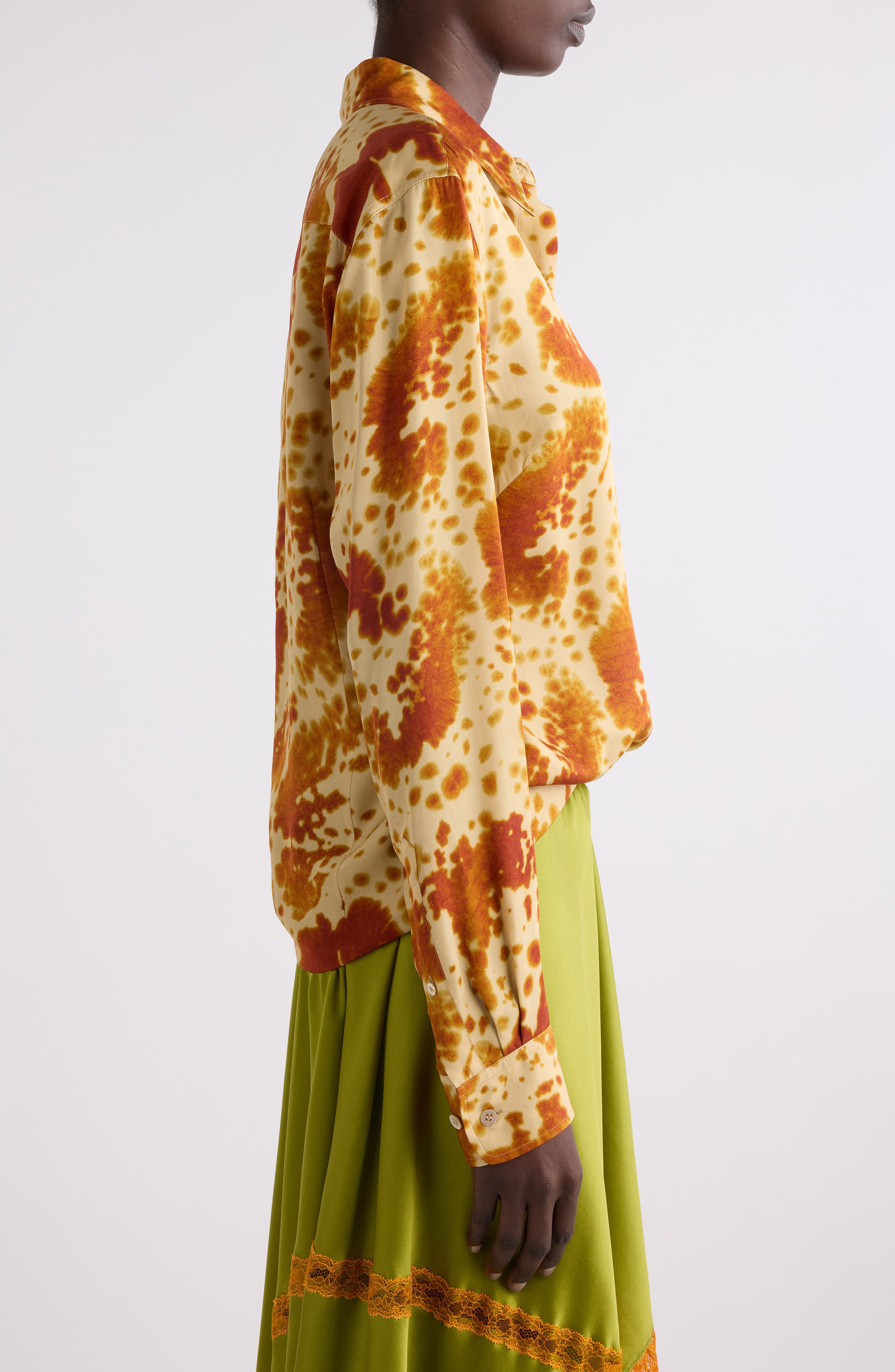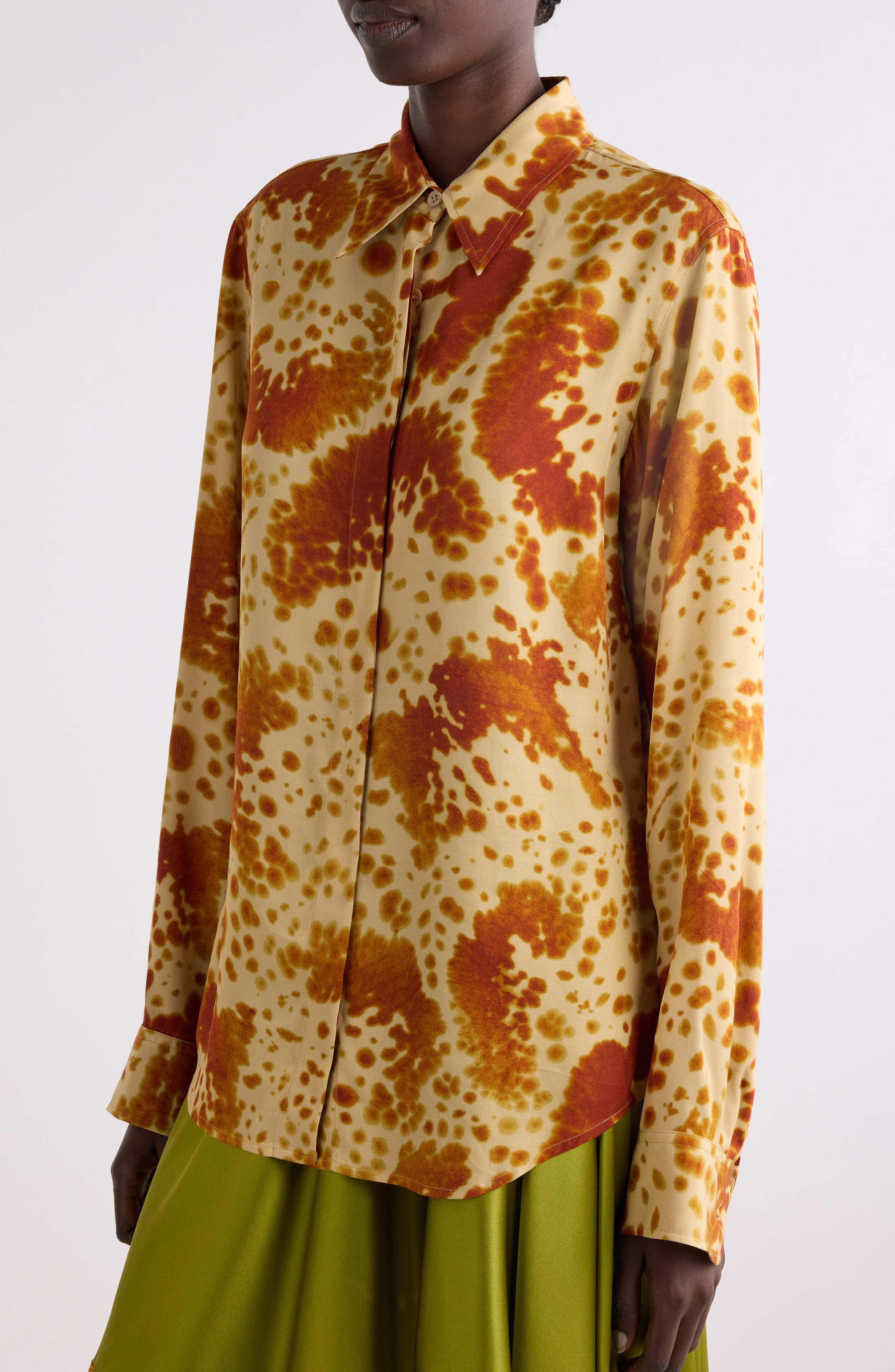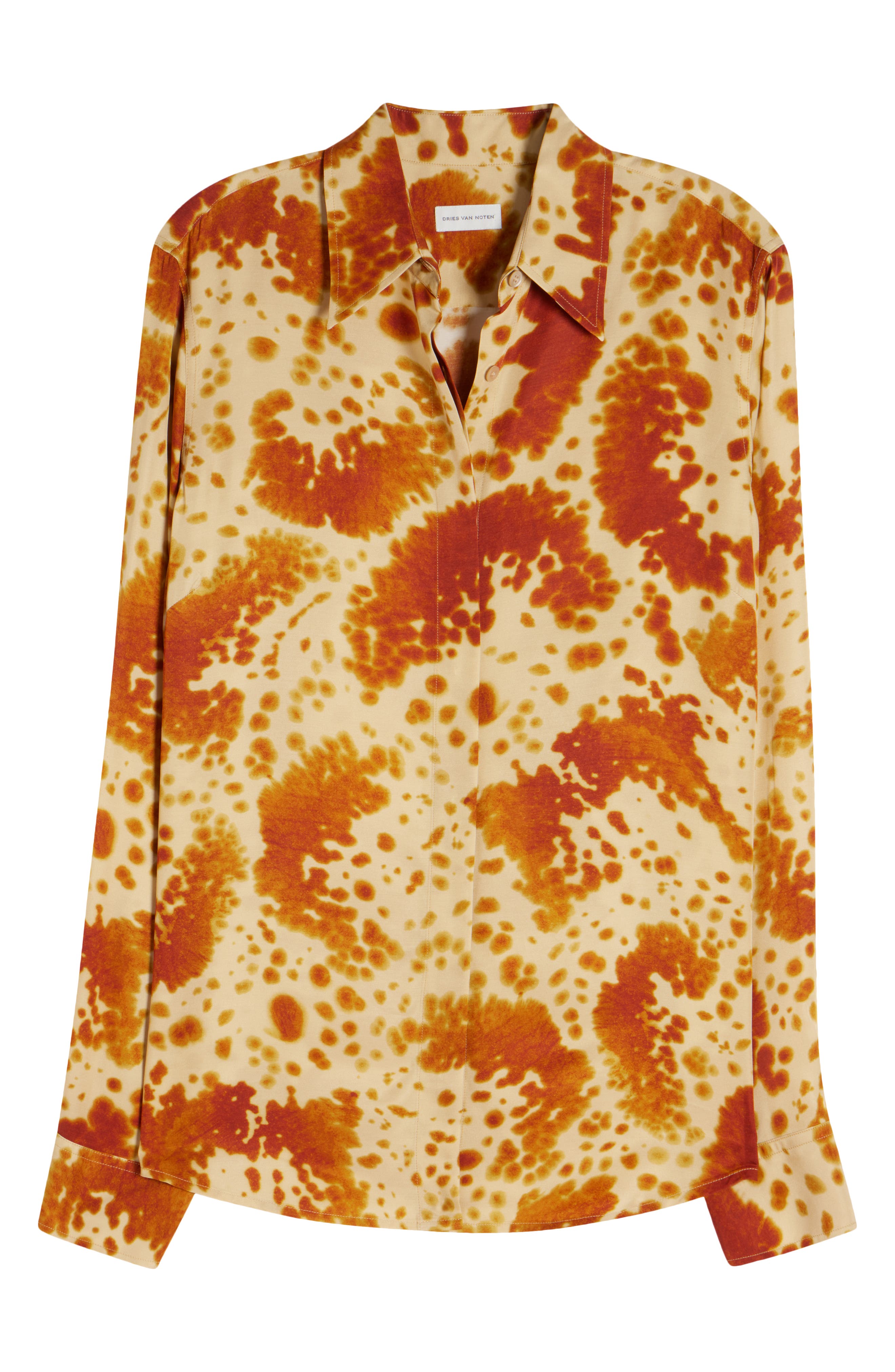 Dries Van Noten Chowy Abstract Print Button-Up Shirt_Rust
