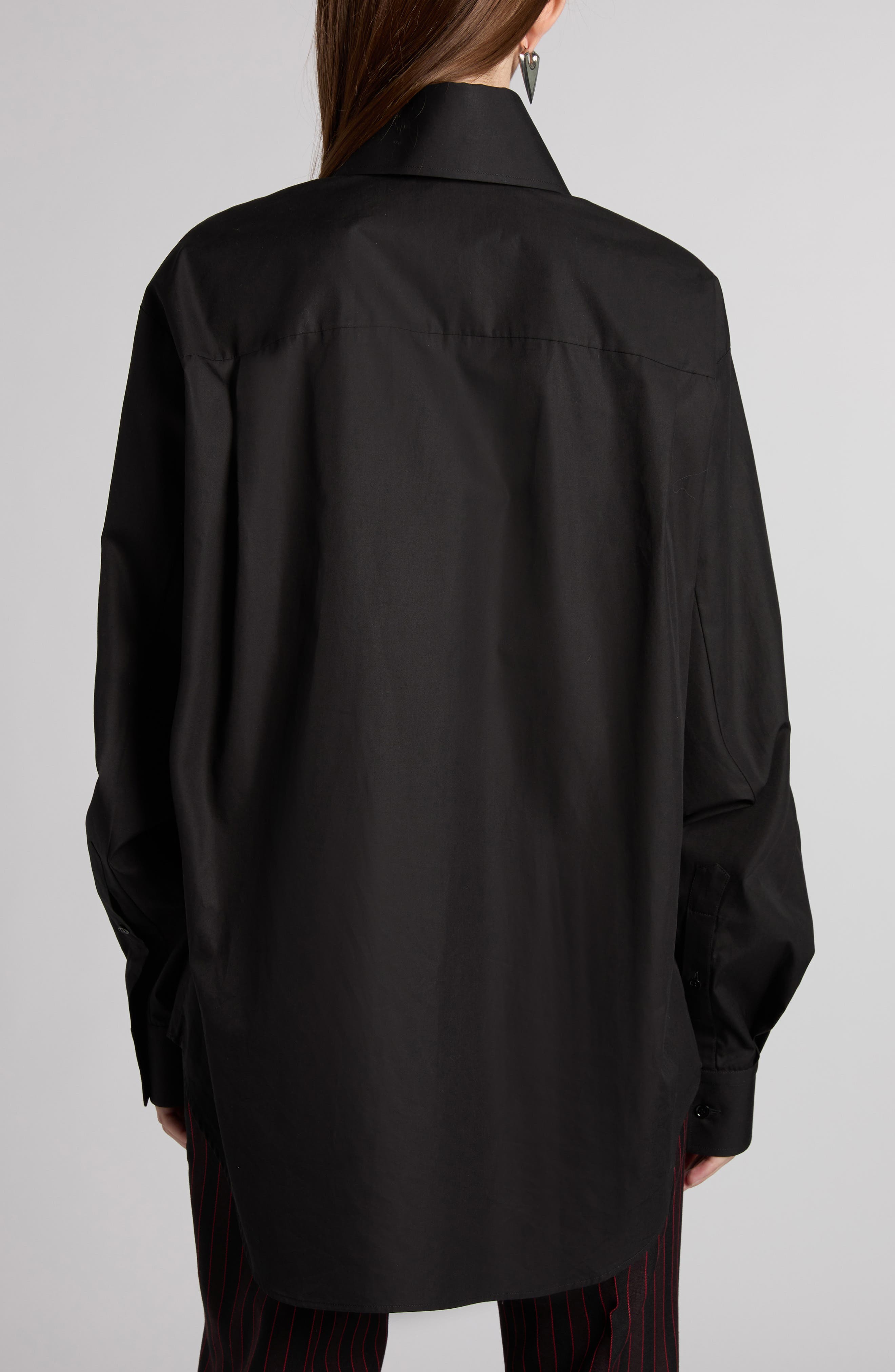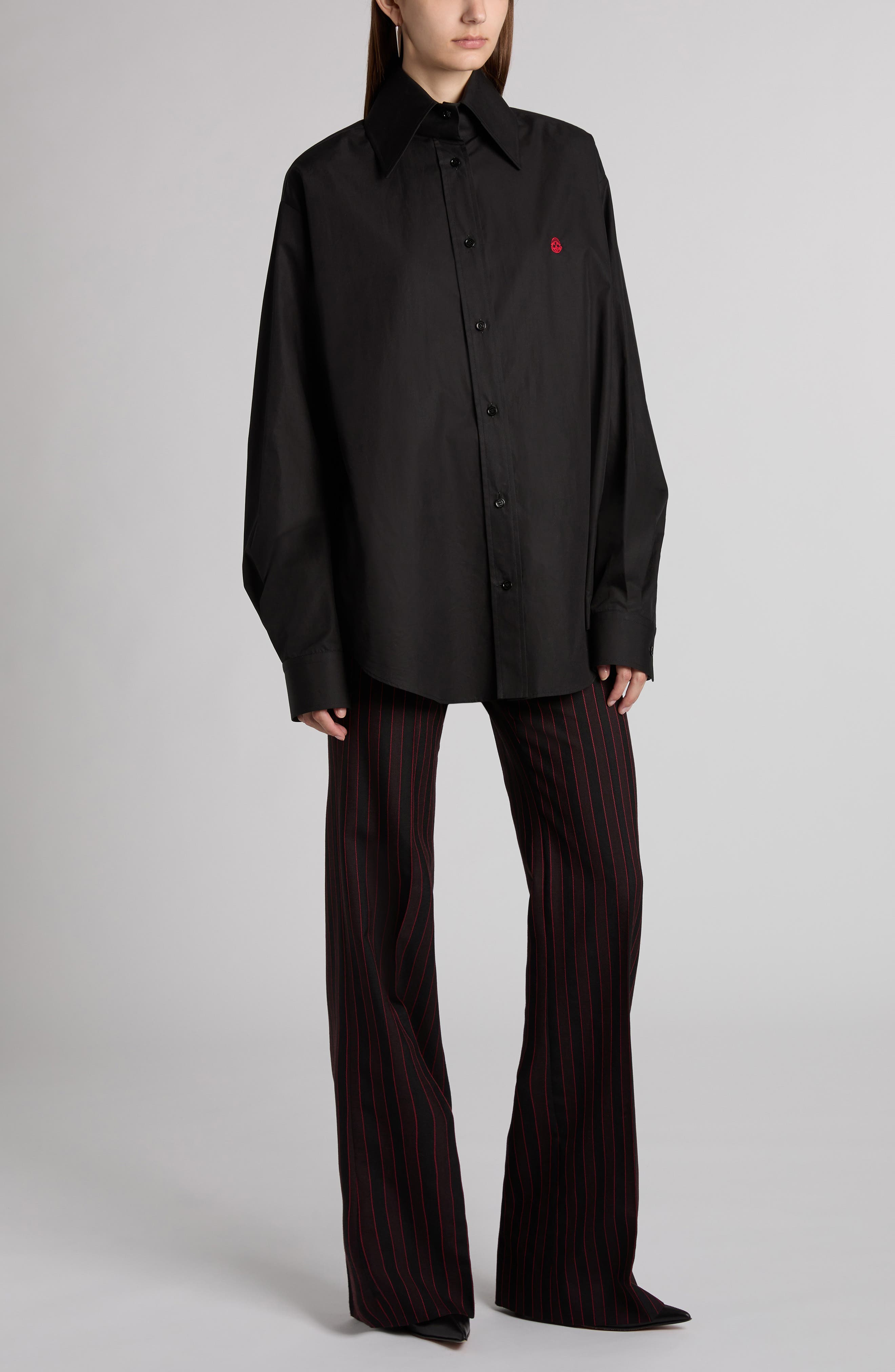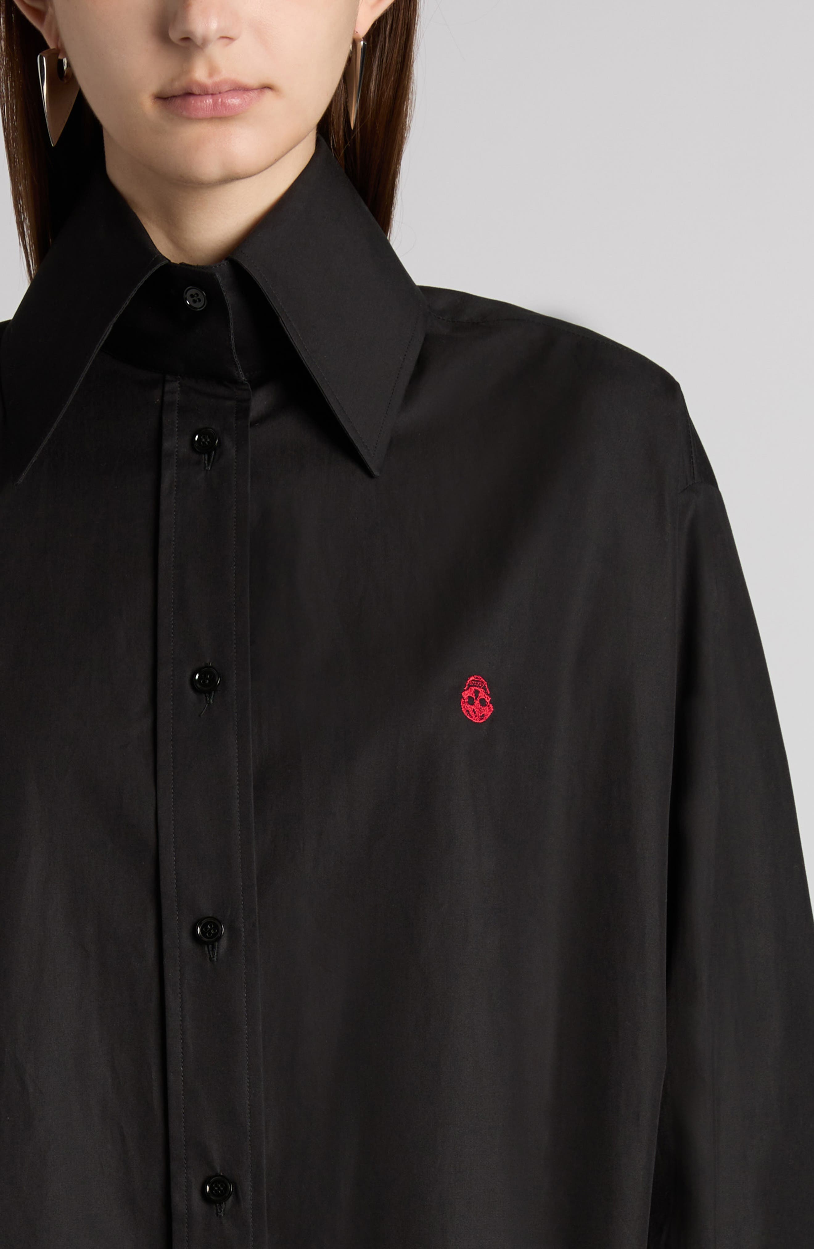McQueen Skull Embroidered Cotton Poplin Button-Up Shirt_Black