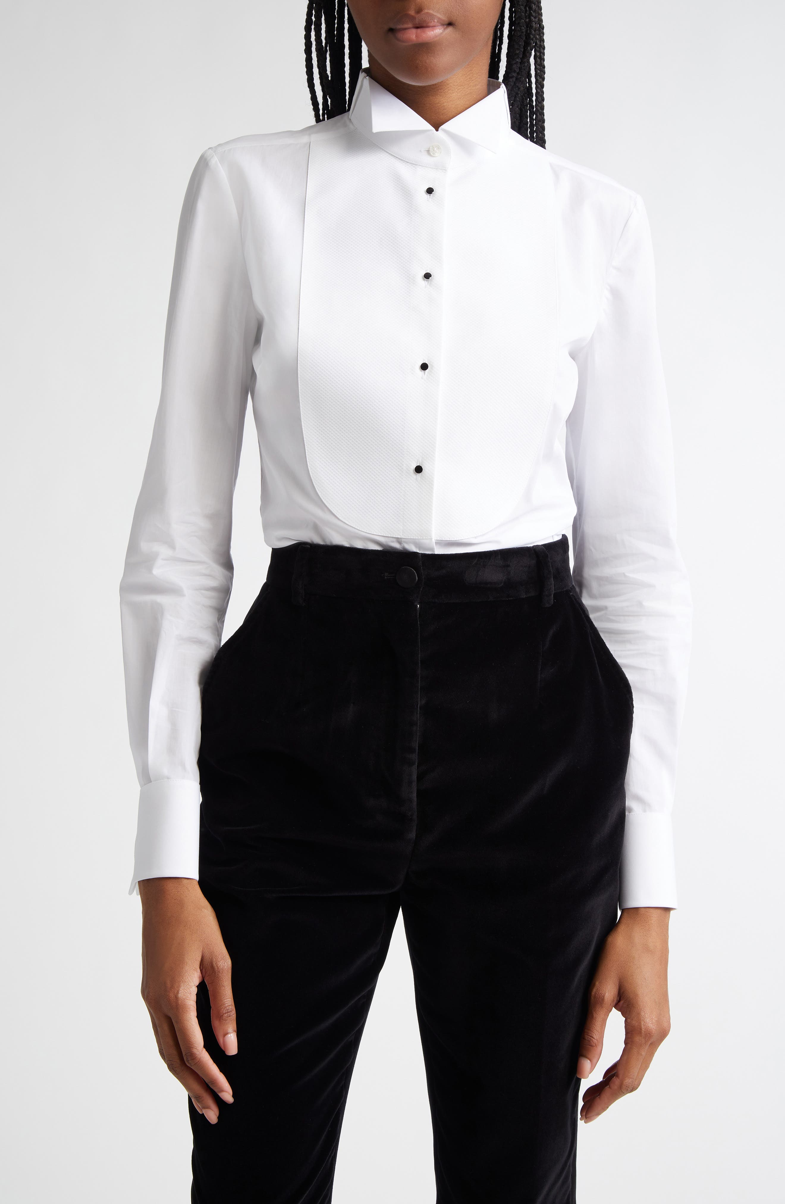 Dolce&Gabbana Bib Detail Cotton Button-Up Shirt_Bianco Ottico