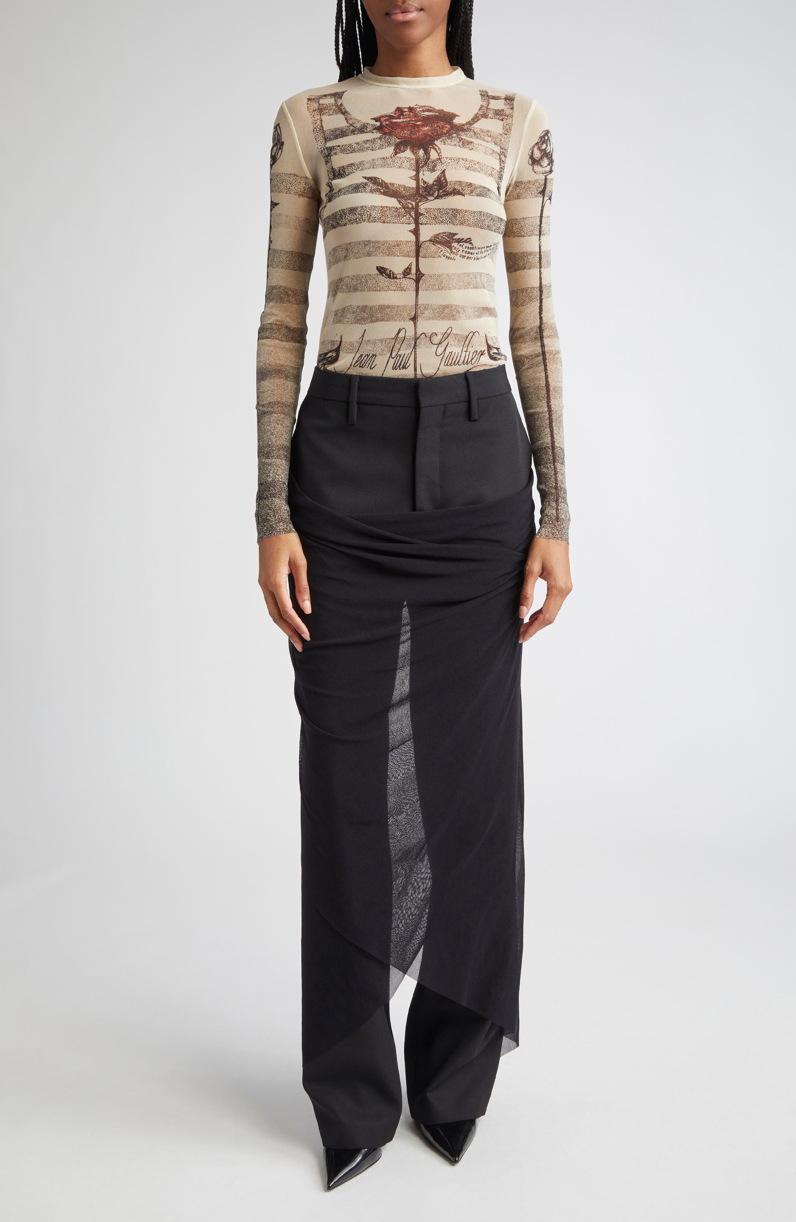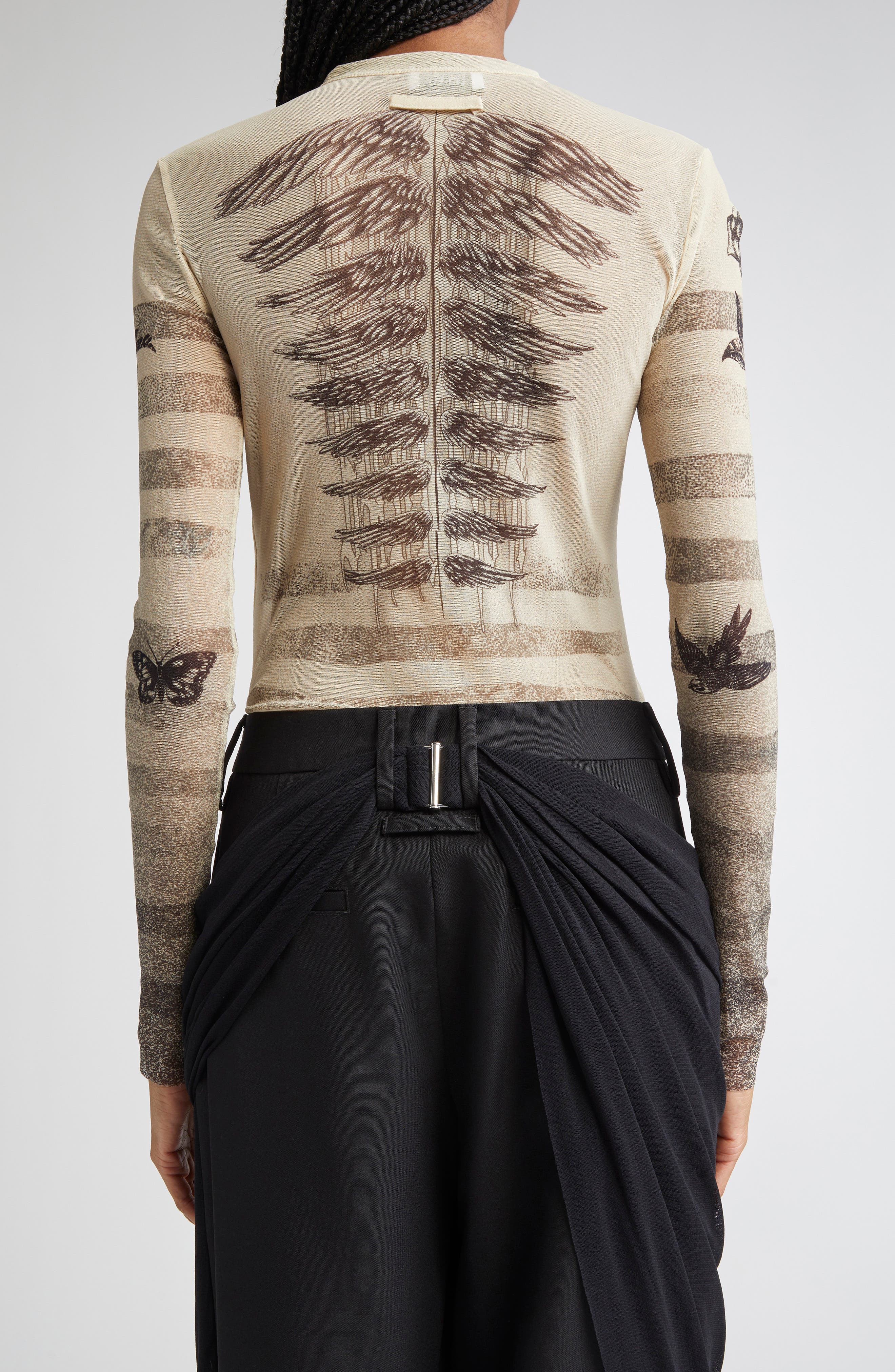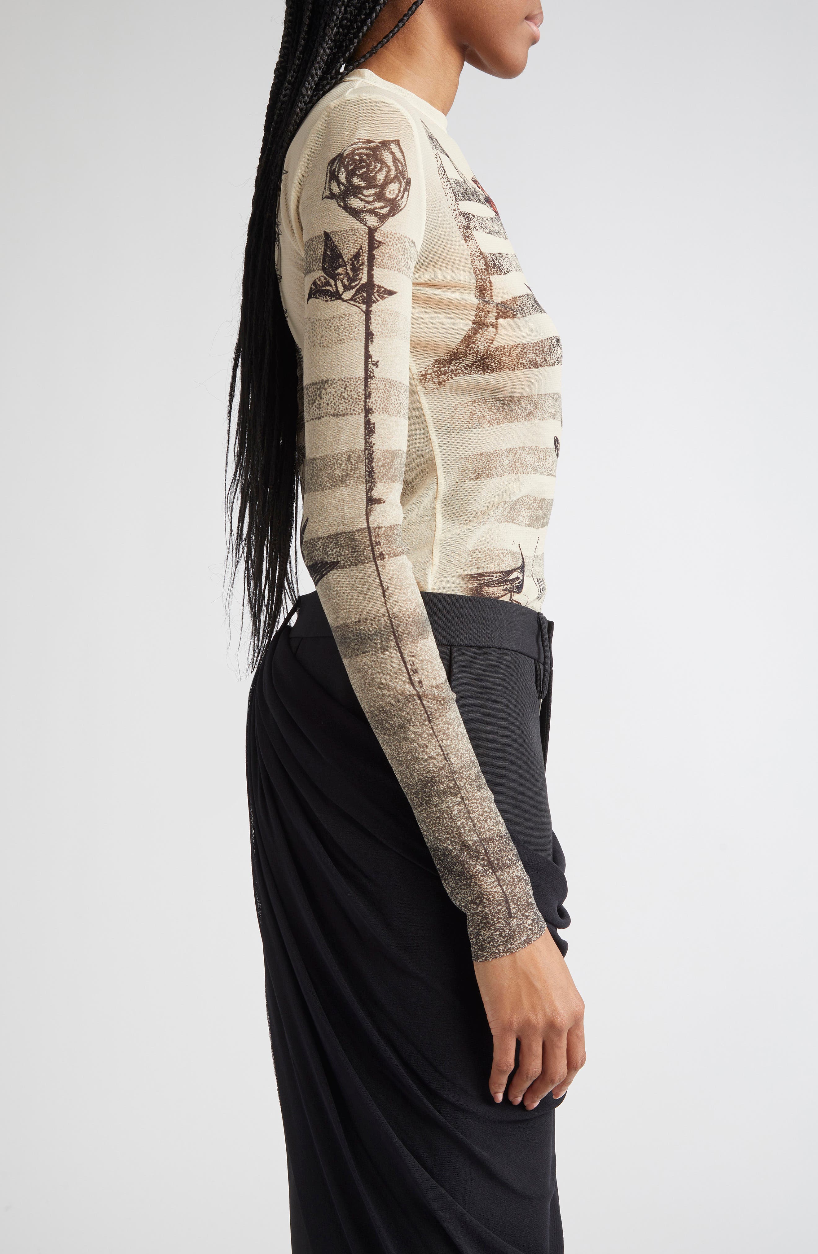 Jean Paul Gaultier Tattoo Mariniere Mesh Top_Ecru/ Black/ Red