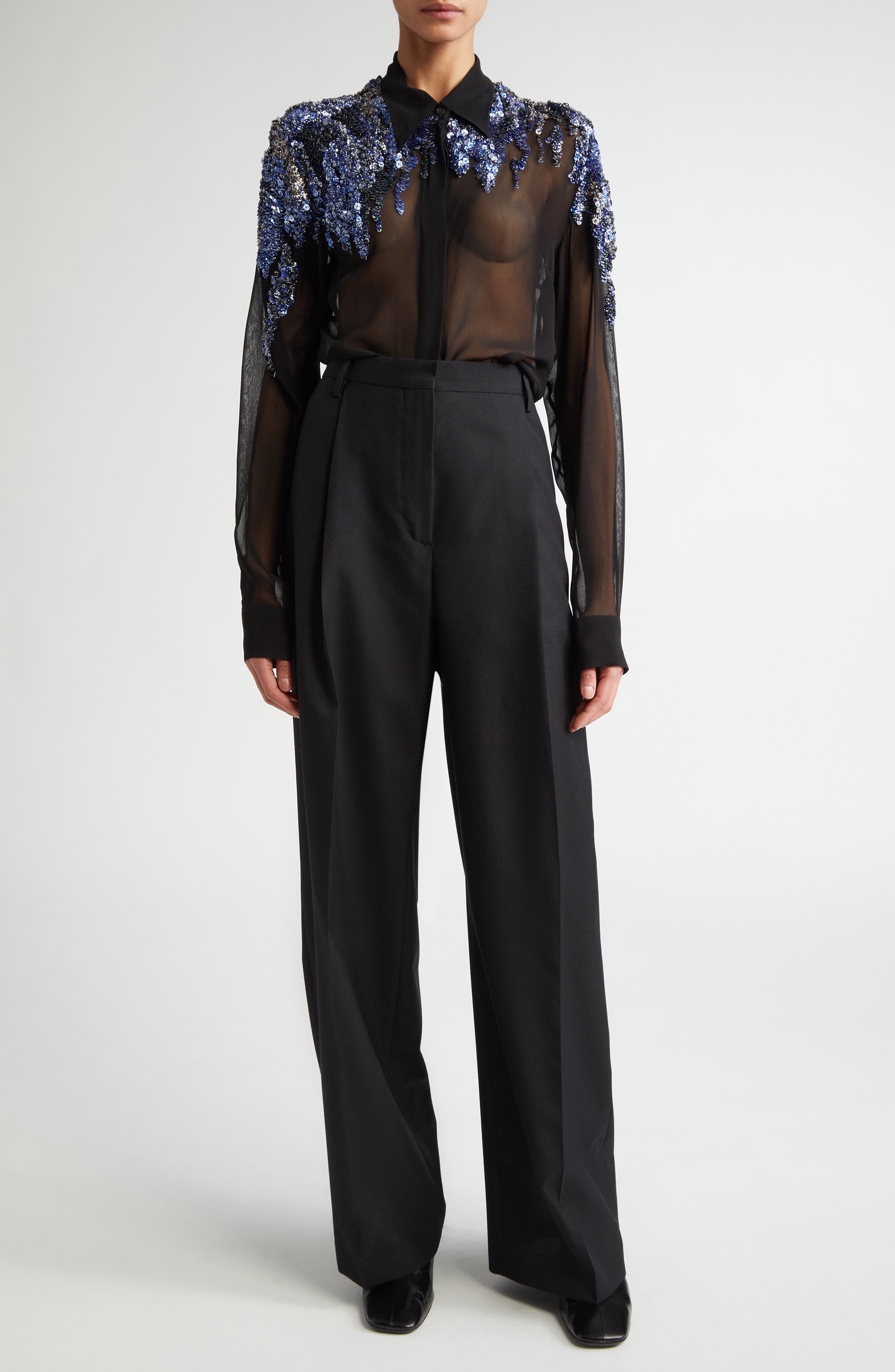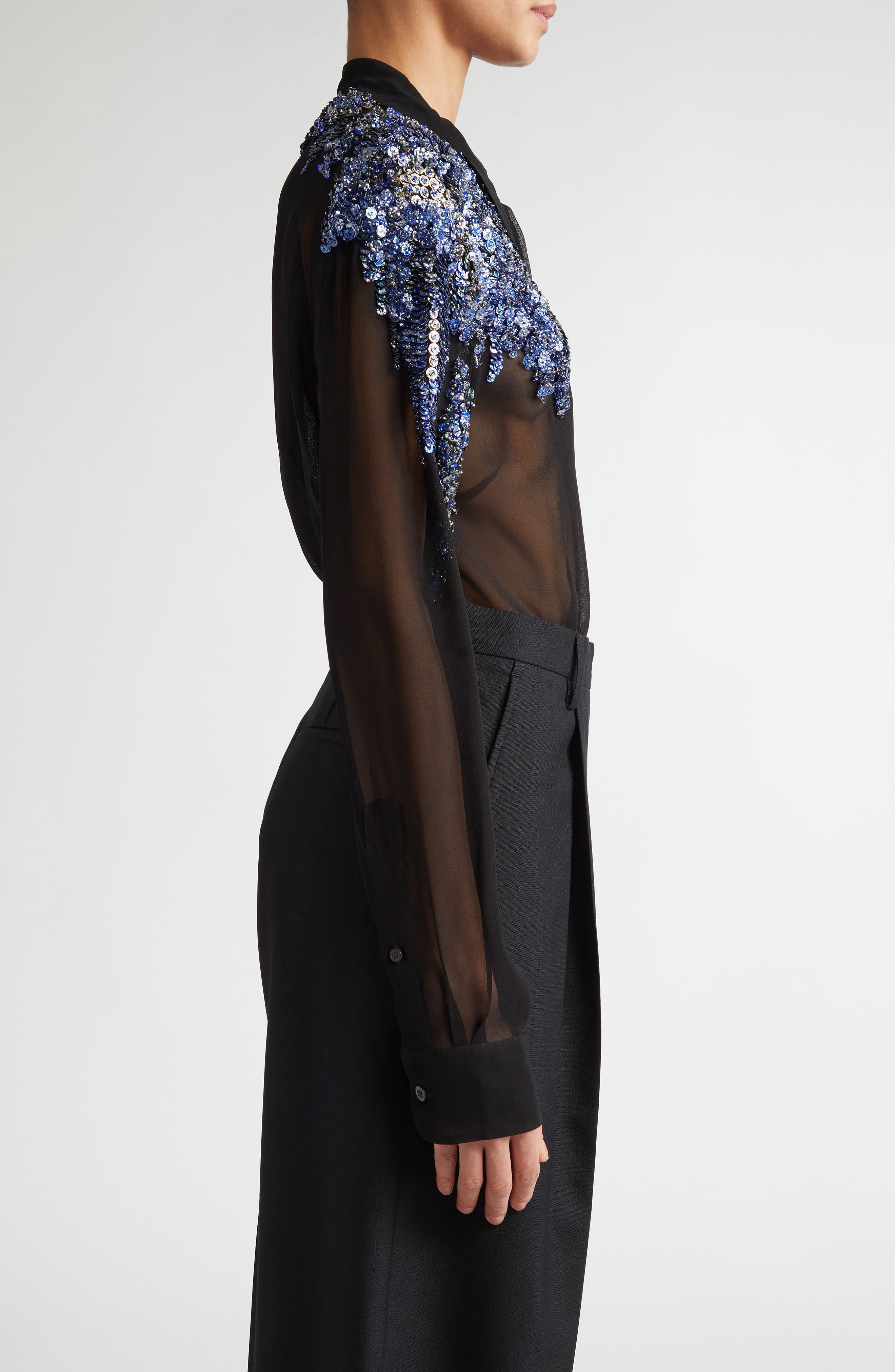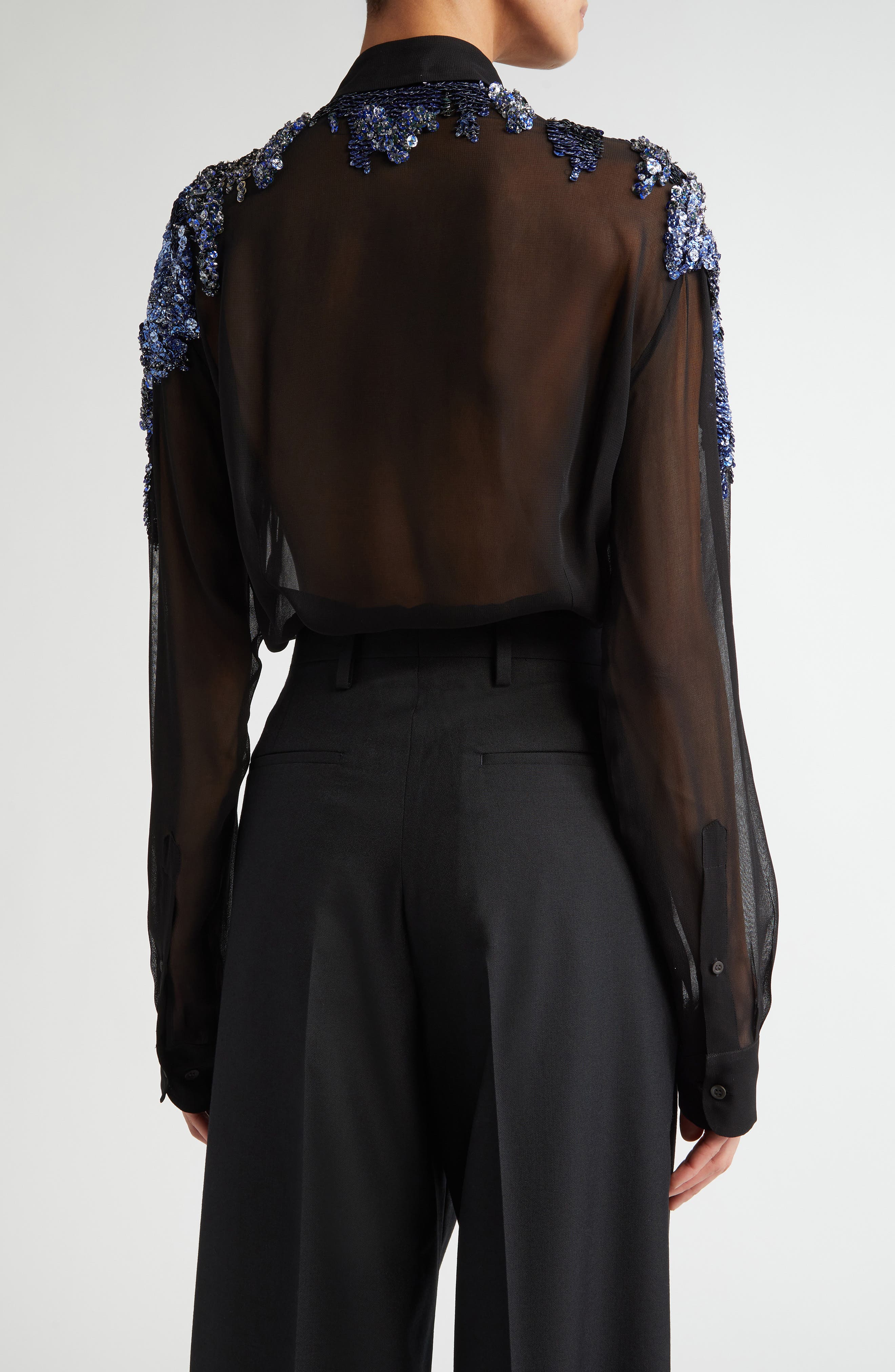 Dries Van Noten Chowy Sequin Embellished Sheer Chiffon Button-Up Shirt_Black