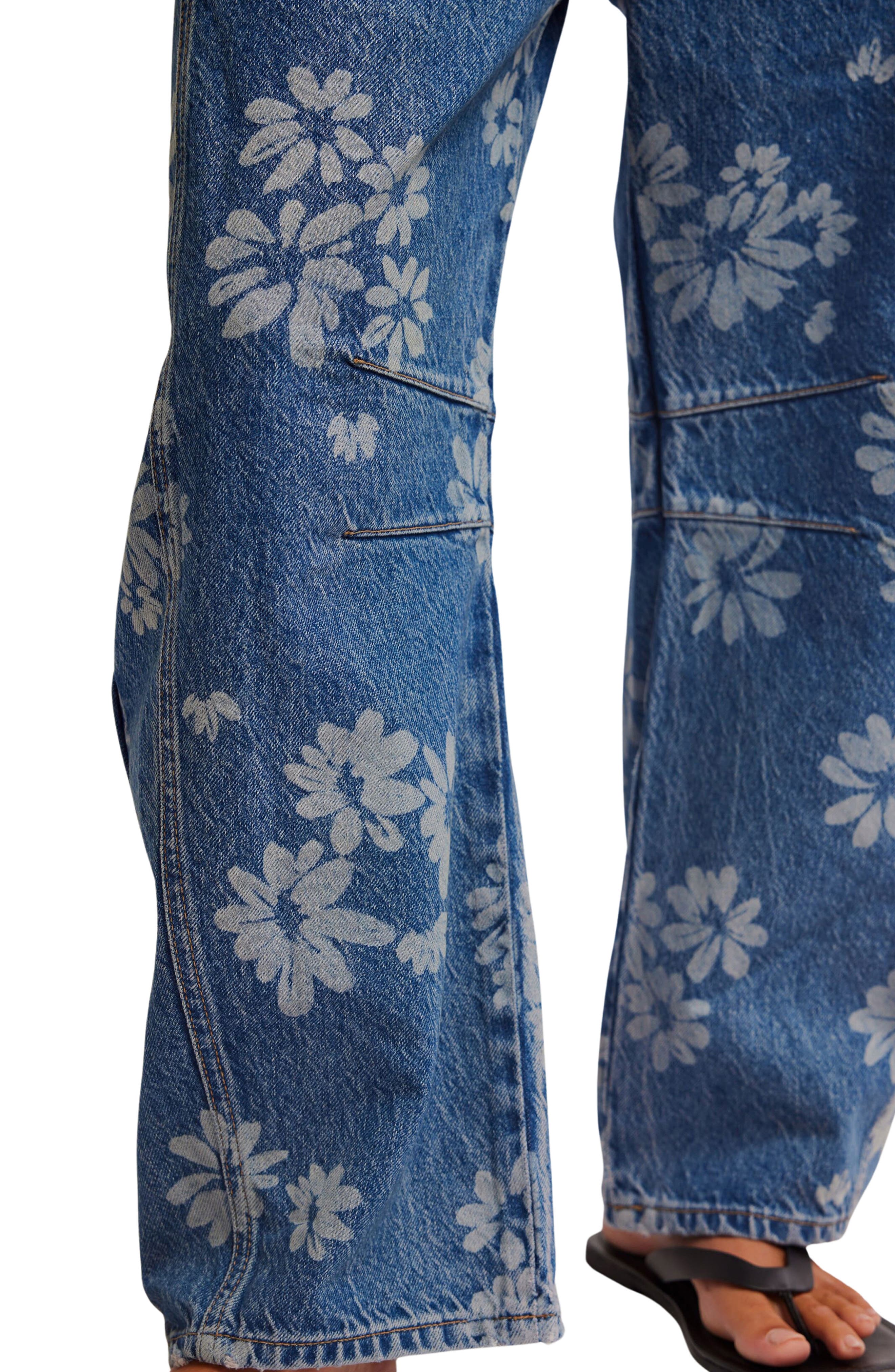 Free People Good Luck Floral Print Barrel Jeans_Laser Daisy