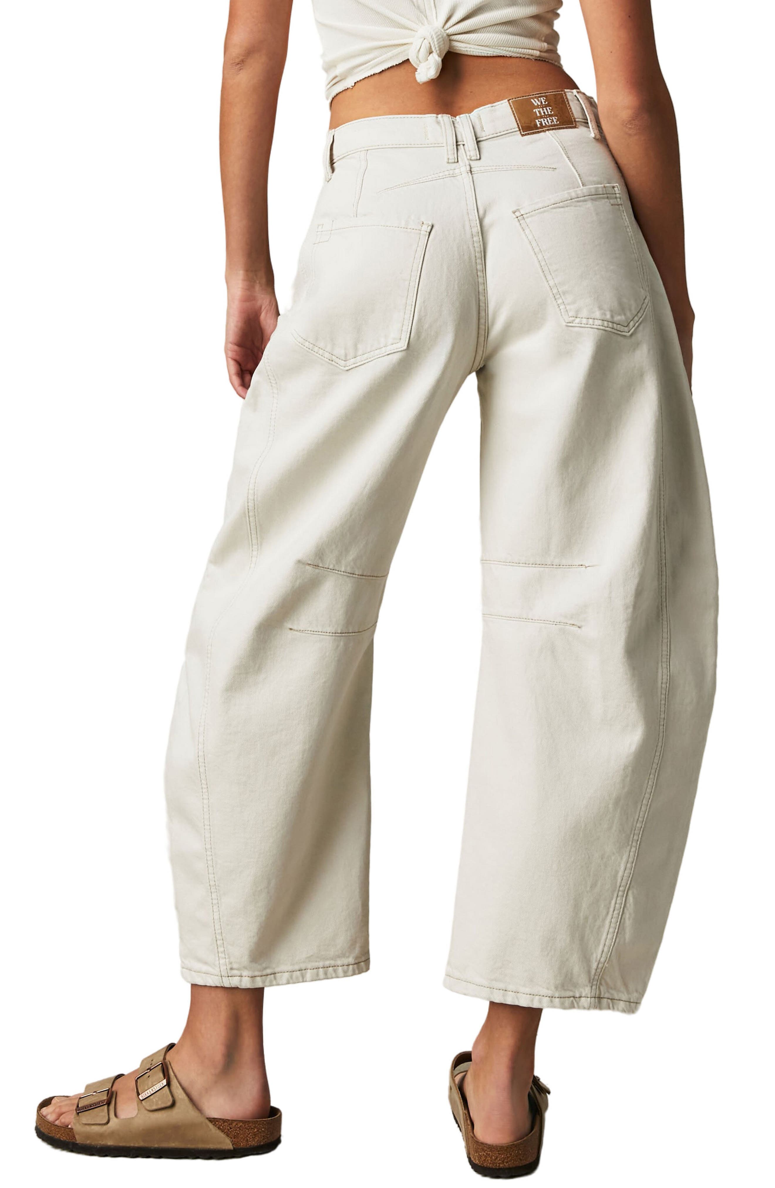 Free People Good Luck Mid Rise Barrel Leg Jeans_Milk