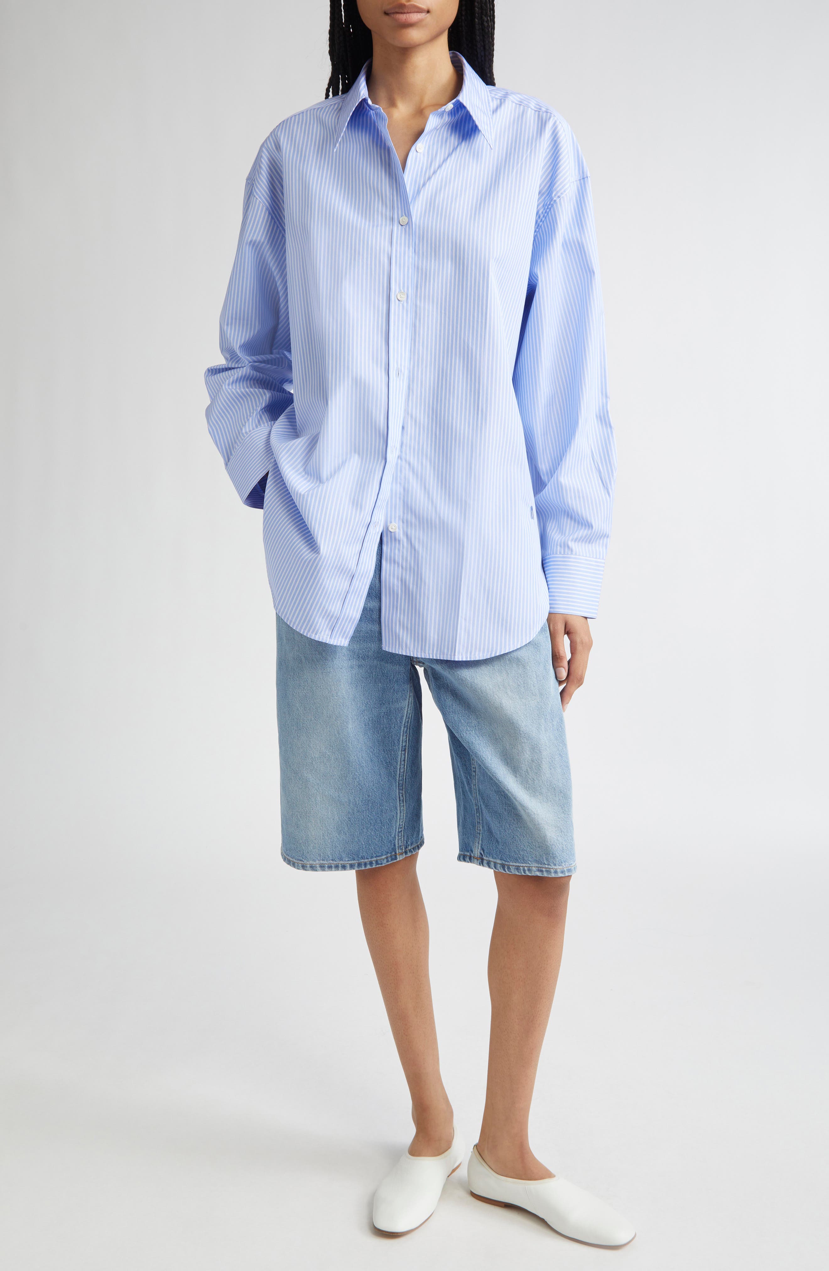 TEURN STUDIOS Boyfriend Fit Denim Shorts_Blue Wash